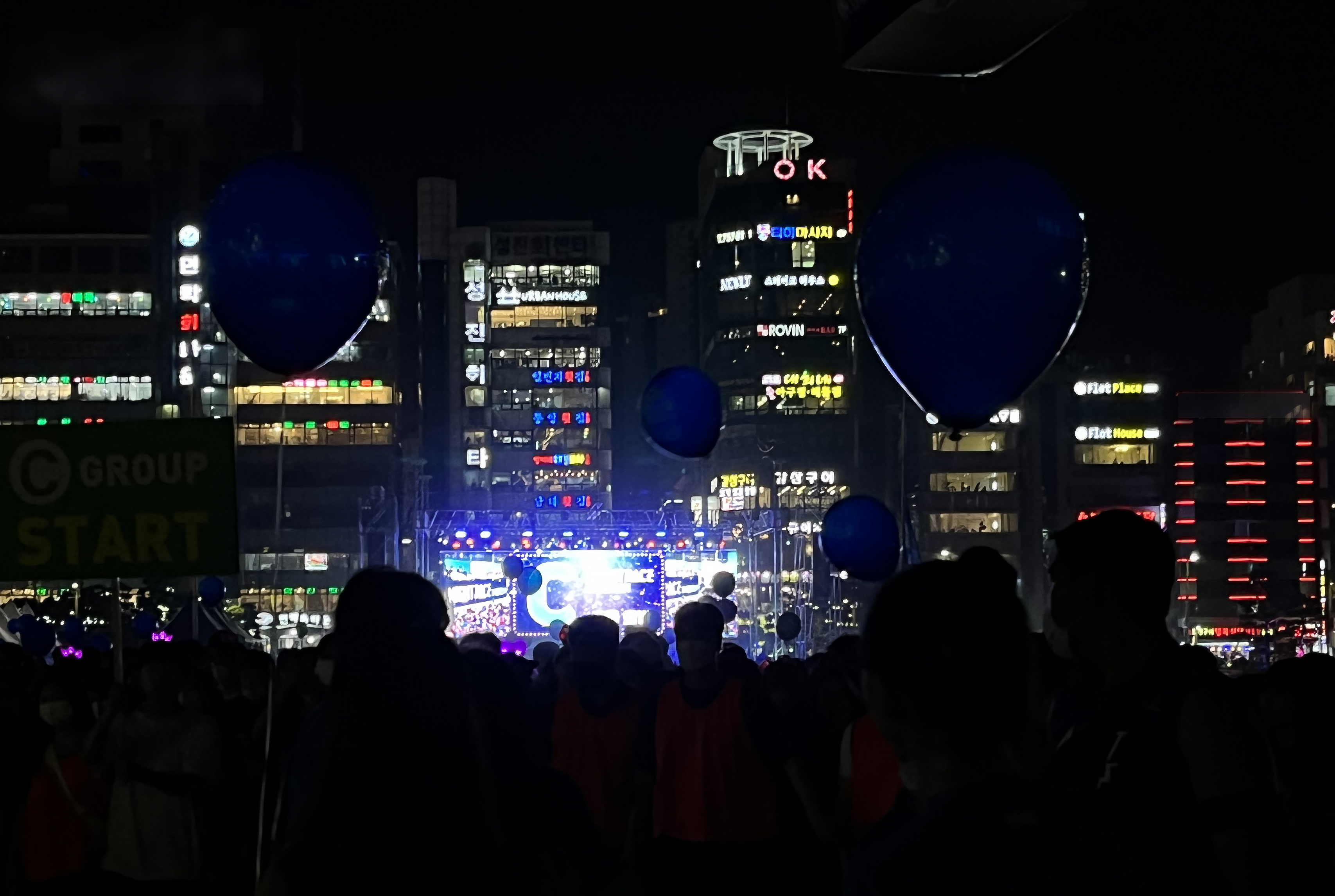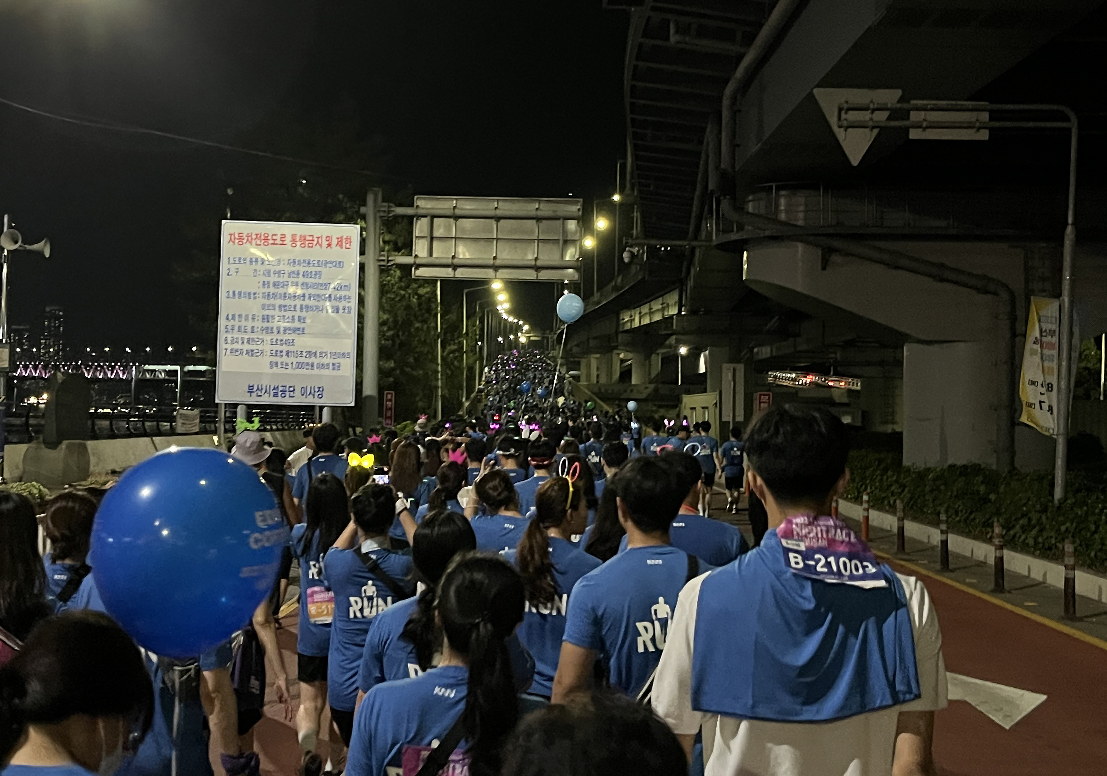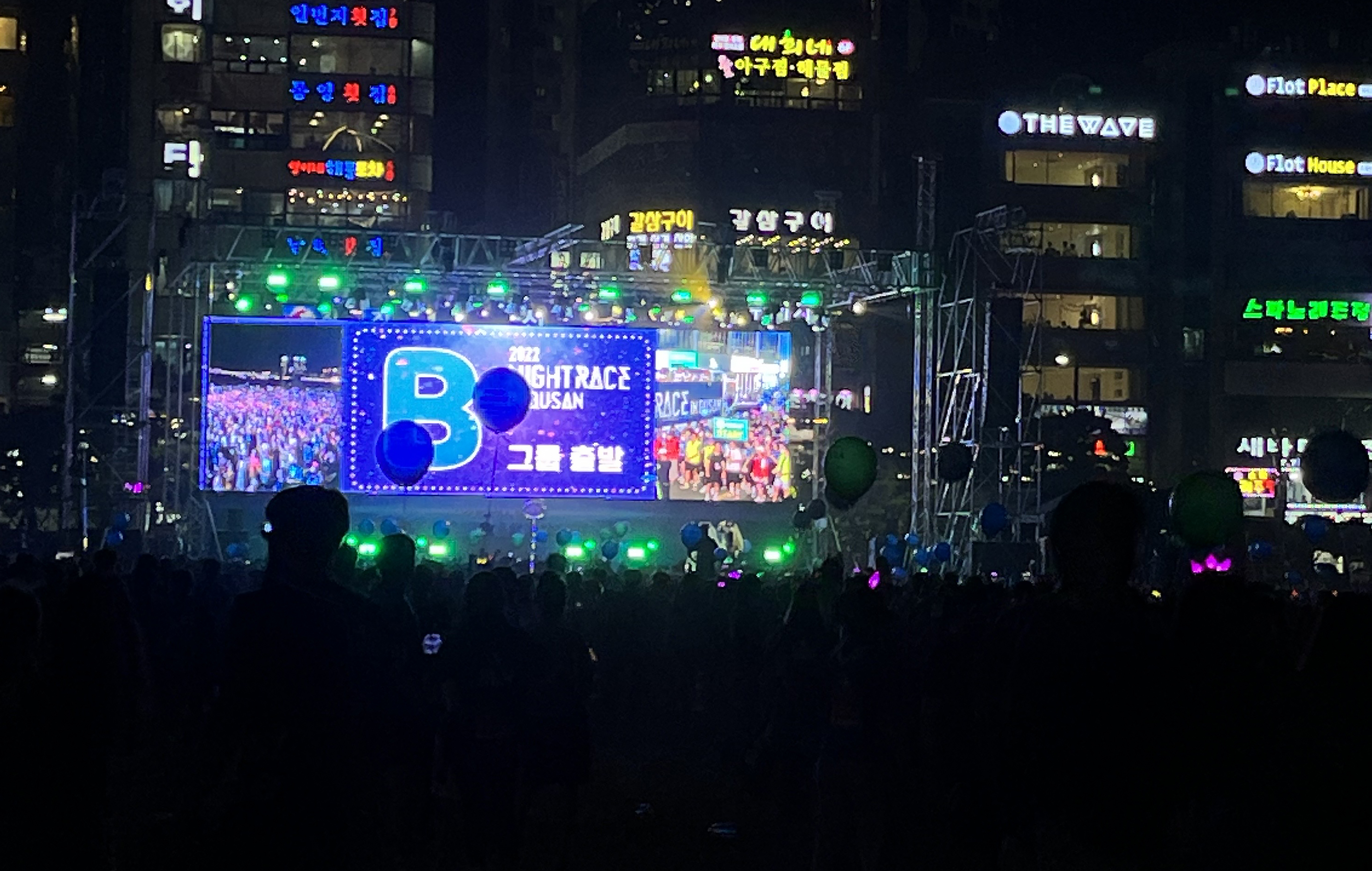 한강나이트워크42K가 끝난 후 바로 일주일 뒤, 부산에서는 나이트 레이스가 있었습니다. 광안리 해수욕장에서 시작해 부산의 랜드마크인 광안대교를 건너 해운대 벡스코에서 레이스가 종료되는 러닝 행사에요. 성수기 중의 극 성수기인 부산의 열기에 러닝 시작 전 야외 무대의 환호성은 엄청났습니다.