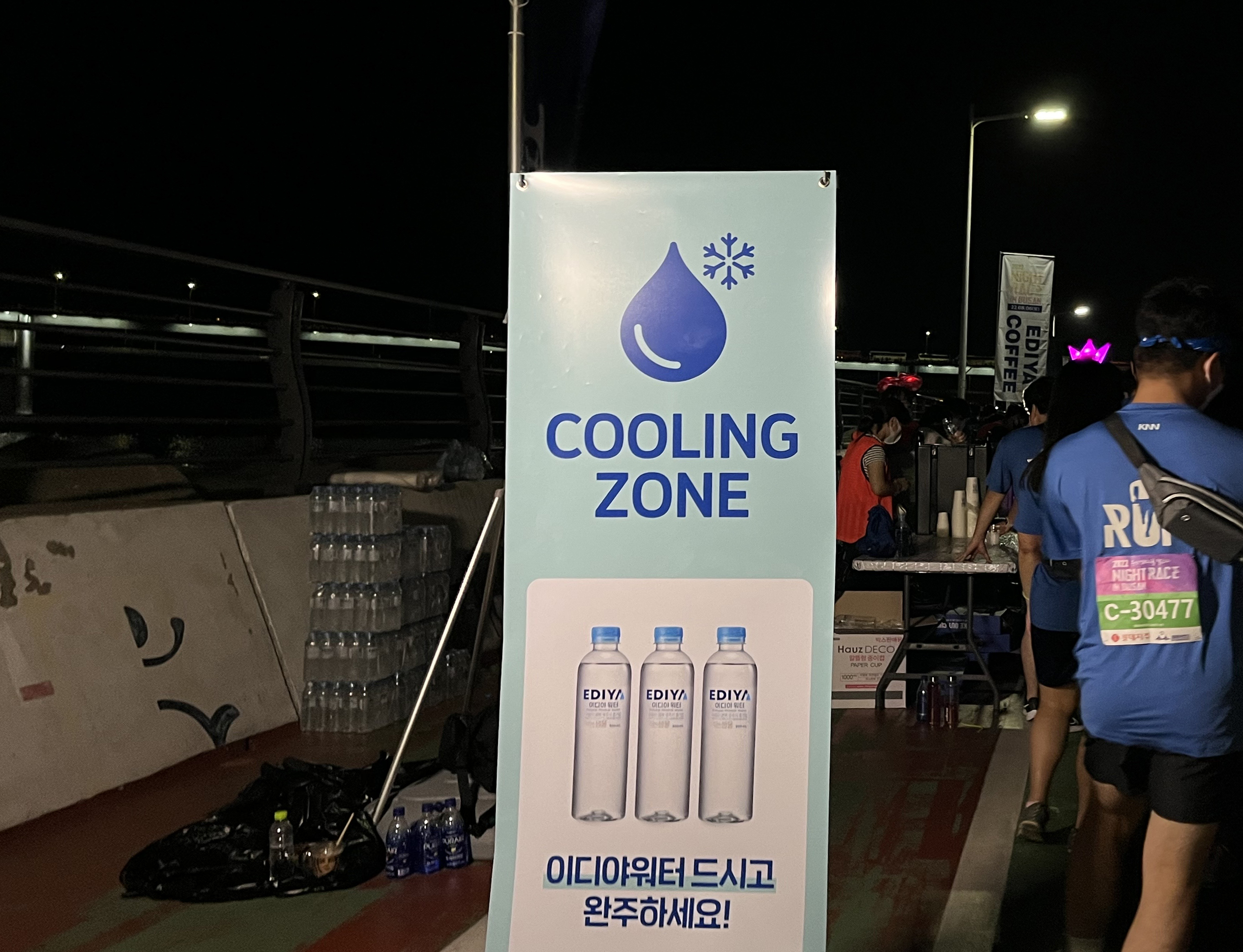 한강나이트워크 42K에 참가한다면 각 코스 별로, 꼭 받아와야 하는 뱃지의 수가 있습니다. 동선을 중간에 이탈하지 않도록 코스의 중간에 CP를 두어 뱃지와 시원한 물을 나눠주고 있었어요. 15K와 22K는 이촌CP에서 1개, 42K는 잠원CP, 광나루CP, 뚝섬CP, 이촌CP 총 4개의 뱃지를 받게 됩니다. 특히 42K는 뱃지 4개와 배번호를 모두 모아 사진 인증을 해야 완보증을 신청할 수 있기 때문에 꼭 CP에서 뱃지를 잃어버리지 않게 조심하세요!