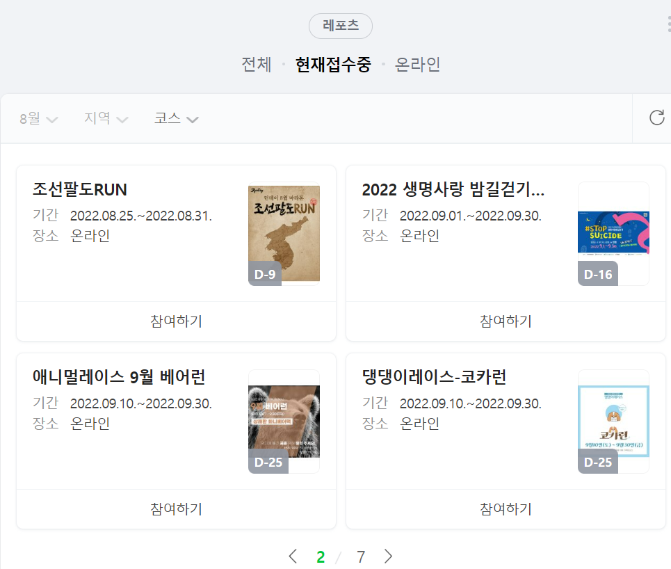 마라톤 행사에 대해 궁금함이 생기셨나요? 네이버에 8월 마라톤, 9월 마라톤과 같이 검색어를 입력해 보세요. 현재 접수가 가능한 대회 요강과 이후 잡혀 있는 대회 일정들을 미리 보고 참여를 고려할 수 있습니다. 지금까지 이번 여름 제가 직접 참여한 러닝 & 레이스 행사에 대해 소개해 드렸습니다. 무더운 여름이지만, 이렇게 활동적인 야외 행사에 참여해 보는 것도 단조로운 일상에 활기를 줄 수 있어 좋은 것 같아요.