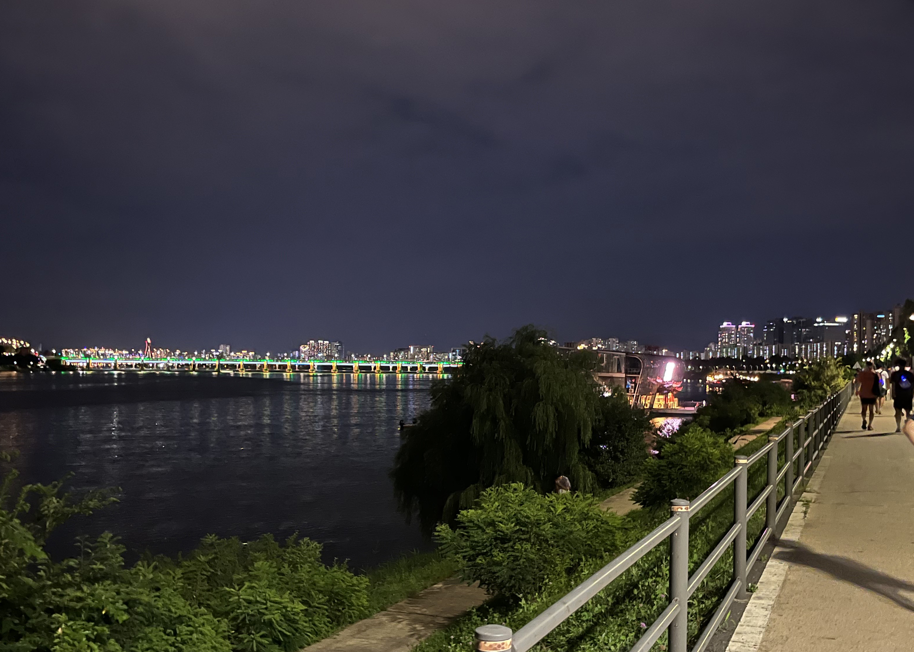 사실 42K를 다 완주할 거라고 생각지도 못했는데, 함께 힘들게 걷는 사람들이 주위에 있고, 나중에 합류한 저녁 11시~12시쯤 느즈막히 출발한 분들이 대단하다며 응원해 주시는 말들 덕분에 완보에 성공할 수 있었습니다. 마지막 2K는 원효대교 위를 건너며 마무리하는 코스입니다. 원효대교 밑에서 내려다 본 한강도, 원효대교 위에서 본 야경도 정말 잊지 못할 추억이었어요. 일행과 함께 오신 분들이라면 인생사진을 많이 남기실 수 있을 것 같습니다.