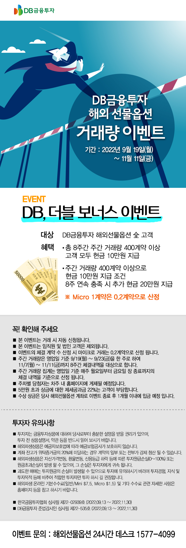 · 주간 거래량 400계약 이상으로 현금 10만원 지급 조건