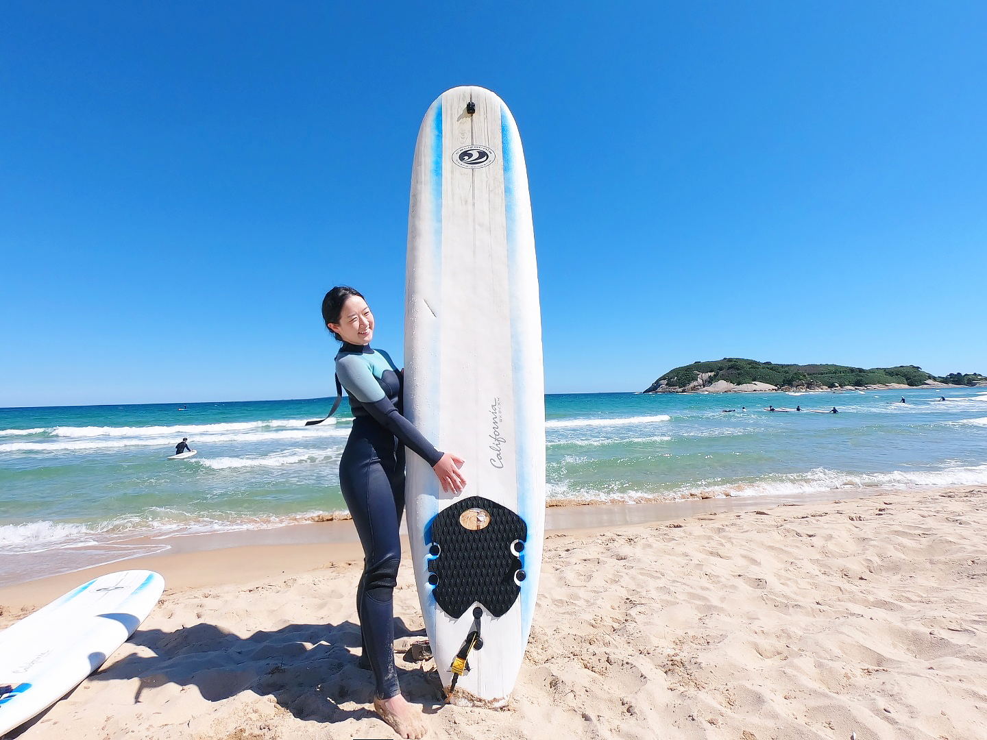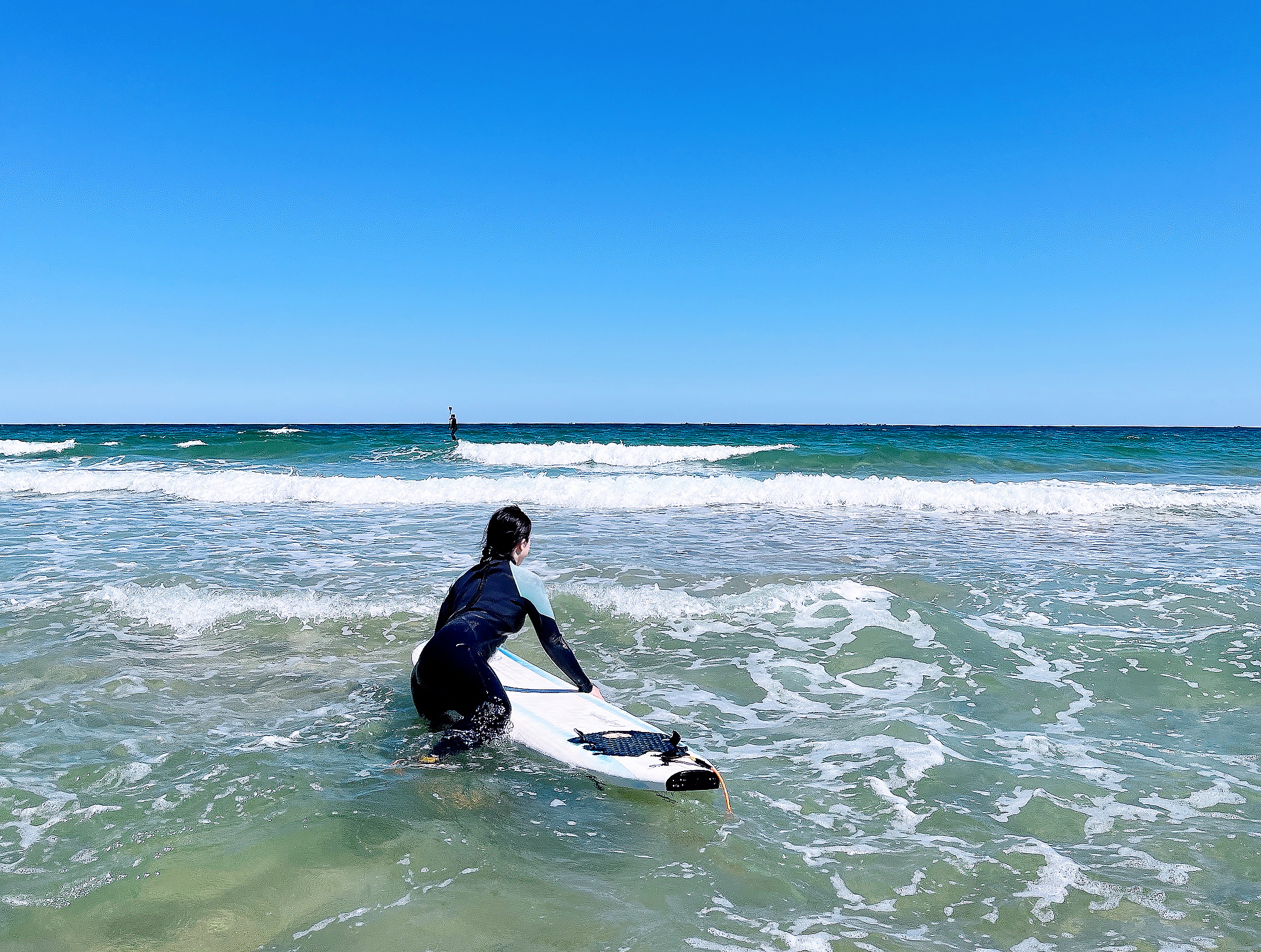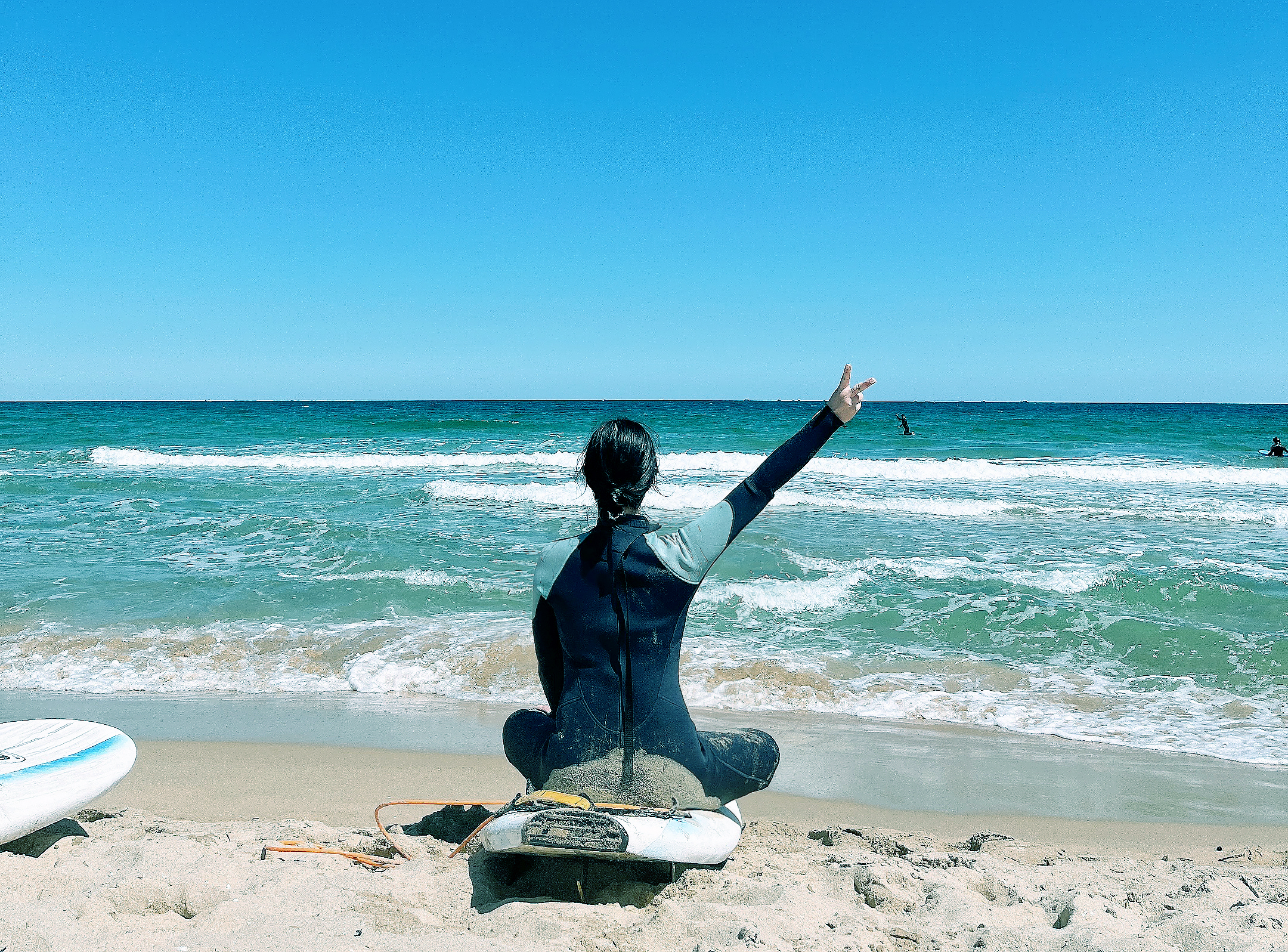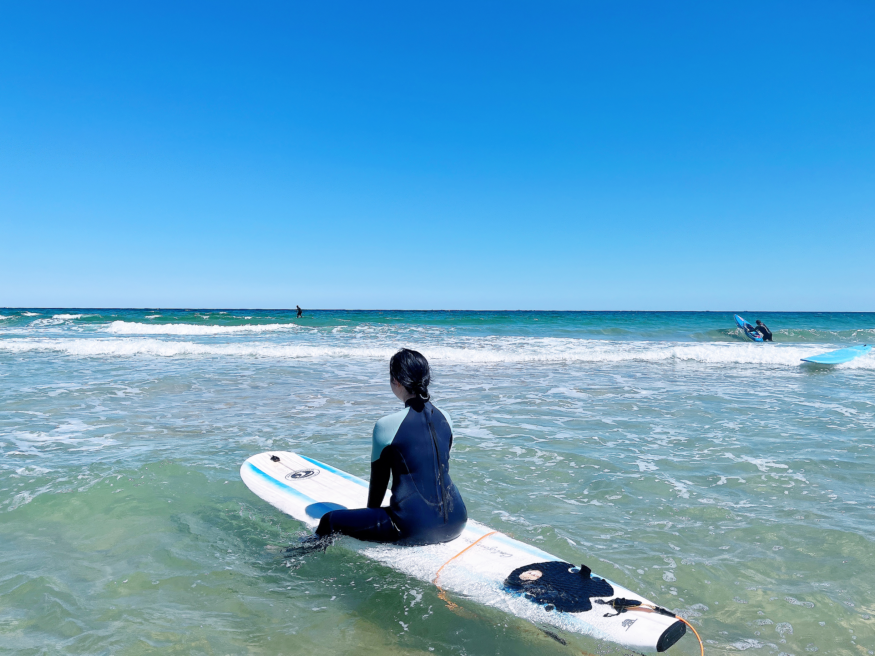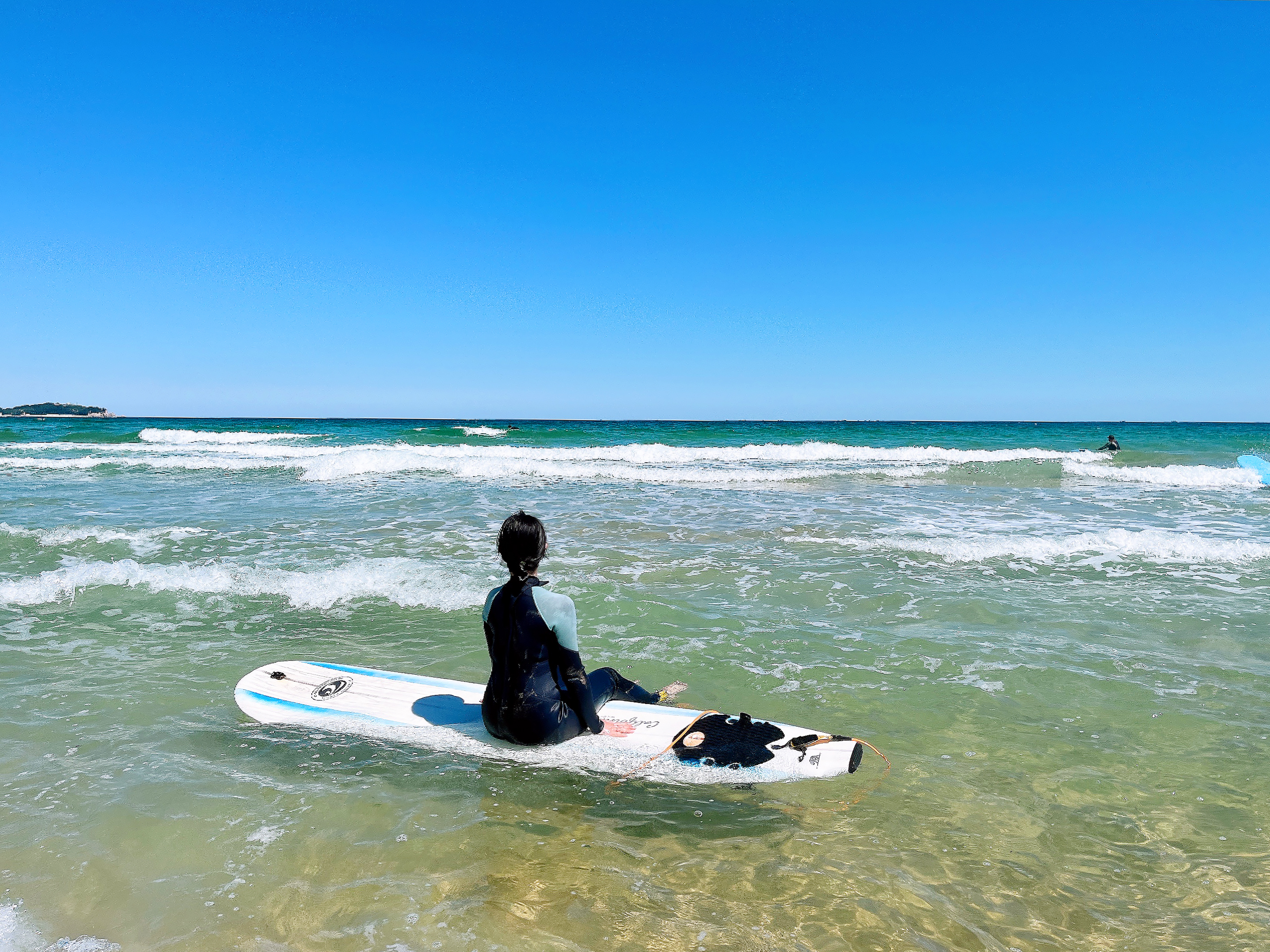 밀려오는 파도에 직접 강사님이 보드를 태워 타이밍을 알려주실 때 팔을 저어 추진력을 얻고 바로 보드 위에서 일어서는 것까지 경험하셨다면, 스스로 보드 타는 연습을 혼자 해보실 수 있어요. 보통 강습을 이용하면 보드 대여가 포함되어 있기 때문에 종일 대여 또는 4시간 동안 마음껏 타볼 수 있어요. 나중에는 이런 강습이 없이도 보드 한 장만 대여해 서핑을 즐기실 수 있을 겁니다. 커리큘럼에 포함된 강습이 끝나면 보드 위에 앉아 있는 인증샷 같은 것들도 여유롭게 남길 수 있답니다.