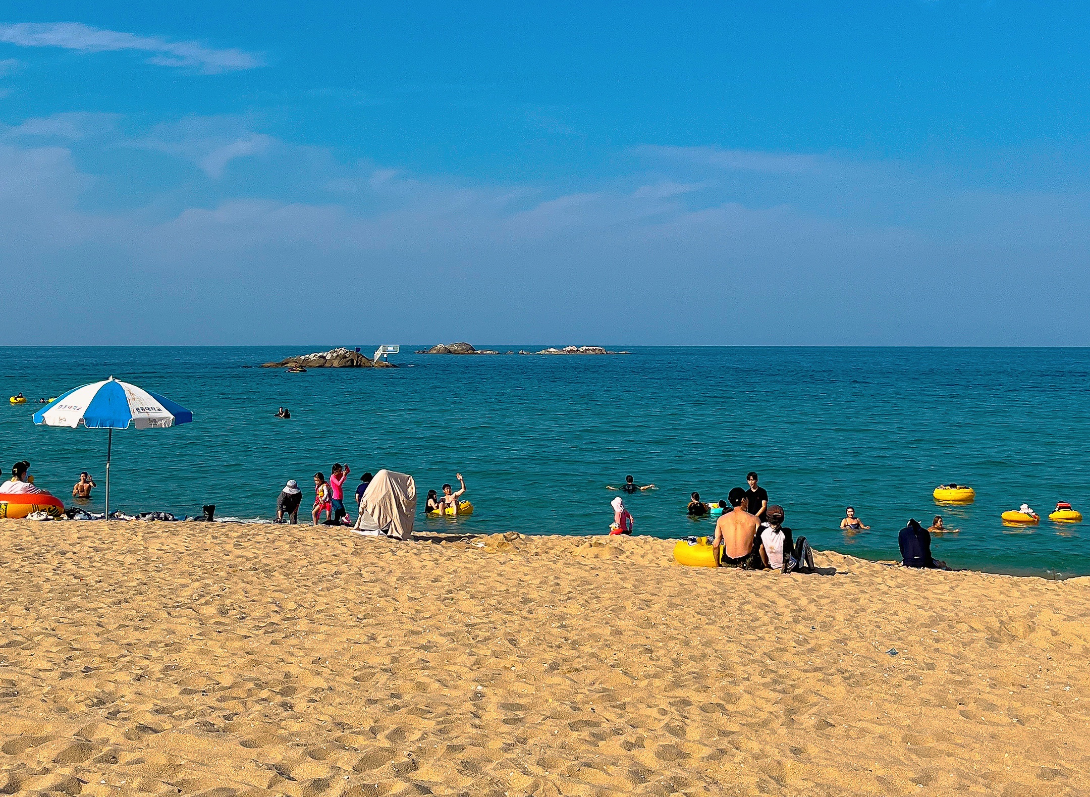 경포 호수를 동해바다와 분리해 주는 해안 사주는 경포해수욕장으로도 유명한데요. 경포 호수 한 바퀴를 쓱 돌고 난 후에 걸어서 경포 해수욕장으로 넘어갈 수 있었습니다. 해안 사주 하나로 나뉘어 앞으로는 바다 뒤로는 호수가 있는 이곳, 두 곳의 분위기도 정말 달랐는데요. 호수 한 바퀴를 돌고 나서 경포 해수욕장에 들러 시원한 바다를 눈에 담아도 좋겠죠?