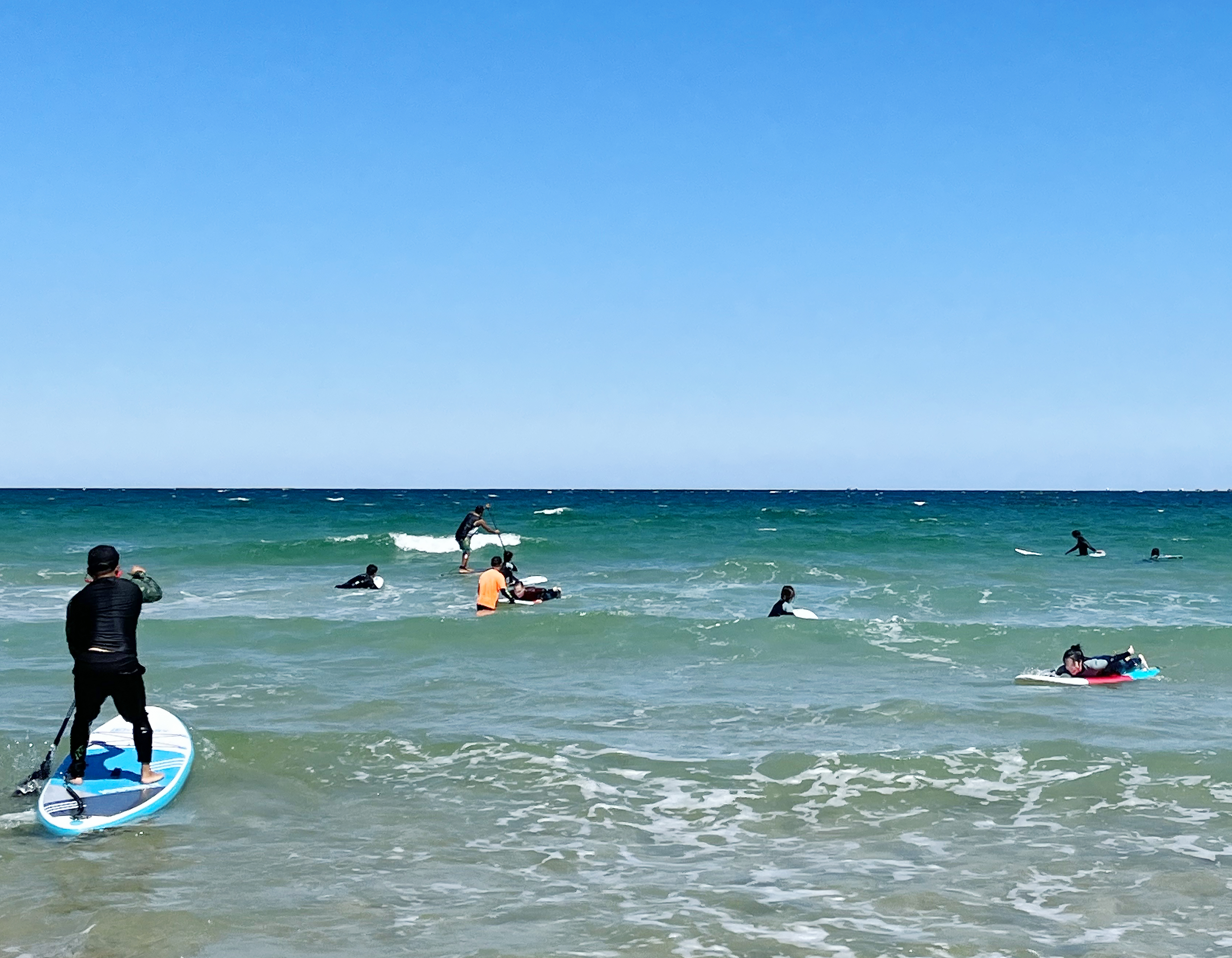 처음부터 혼자 탈 수는 없기 때문에 강사님께서 초반에 거의 30분 이상을 옆에서 직접 파도에 태워주십니다. 그럼 바다에 들어오기 전 모래사장 위에서 했던 동작을 순서대로 반복해 보세요. 어느 순간 바다 위에 서 있는 내 모습을 발견하게 된답니다.