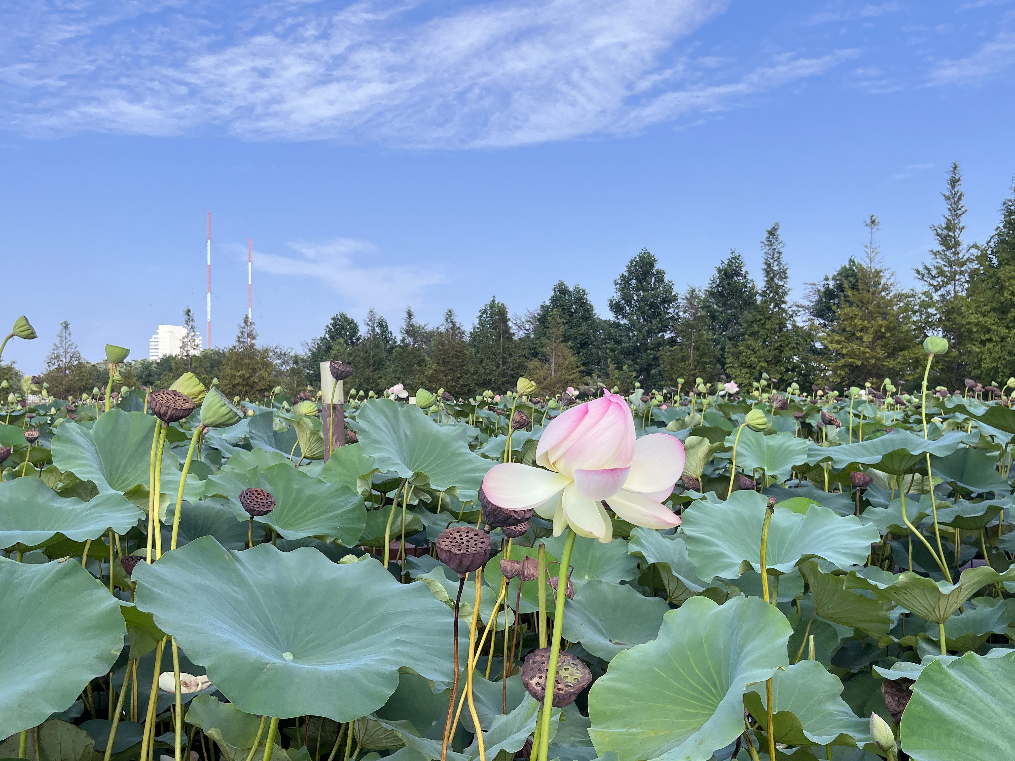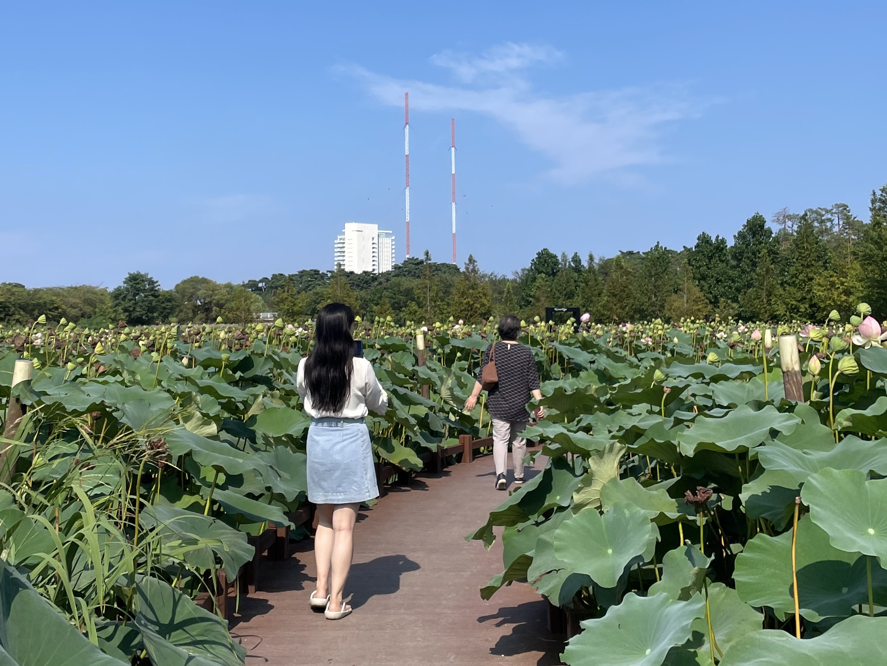 경포호를 한 바퀴 크게 돌다 보면 엄청 큰 규모의 연꽃 군락지가 보이는데요. 이 가시연습지에서는 나무 데크를 따라 연꽃이 가득 핀 가운데를 거닐면서 바로 코앞에서 거다란 연꽃들을 볼 수 있습니다. 막 피어나기 시작하는 꽃봉오리와 이미 꽃을 피운 연꽃, 꽃이 지고 남은 연밥, 그리고 사람이 앉을 수 있을 만한 사이즈의 연잎까지 마치 소인국에 온 것 같은 기분이 들더라고요. 특히 연꽃들 사이를 거닐며 사진을 남길 수 있어 마치 사진 속에서는 연꽃밭 한가운데에 들어가 있는 것처럼 예쁘게 찍힐 수 있어서 너무 좋았습니다.