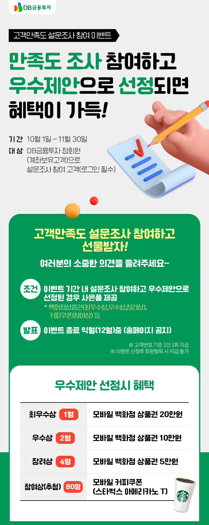 DB금융투자 정회원(계좌보유고객)으로 설문조사 참여 고객(로그인 필수)