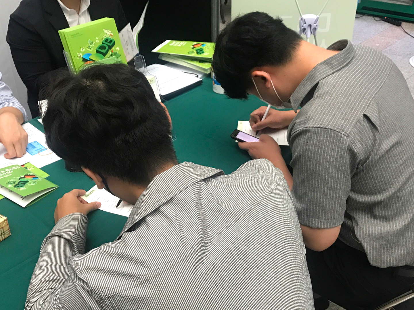 함께 상담 부스에 있던 2012년 입사한 영업교육파트 김준영 수석은 “영업파트는 적극적이고 목표달성을 위해 스스로 일을 찾아서 하는 사람을 회사가 원해요. 자격과 수상경력 등 전문성을 잘 내세우세요. 영업관리 분야는 조직관리 역량이 중요하고 현장영업 분야는 사람을 많이 만나기 때문에 적극적이고 의사소통 능력이 좋아야 해요.”라고 설명했다.