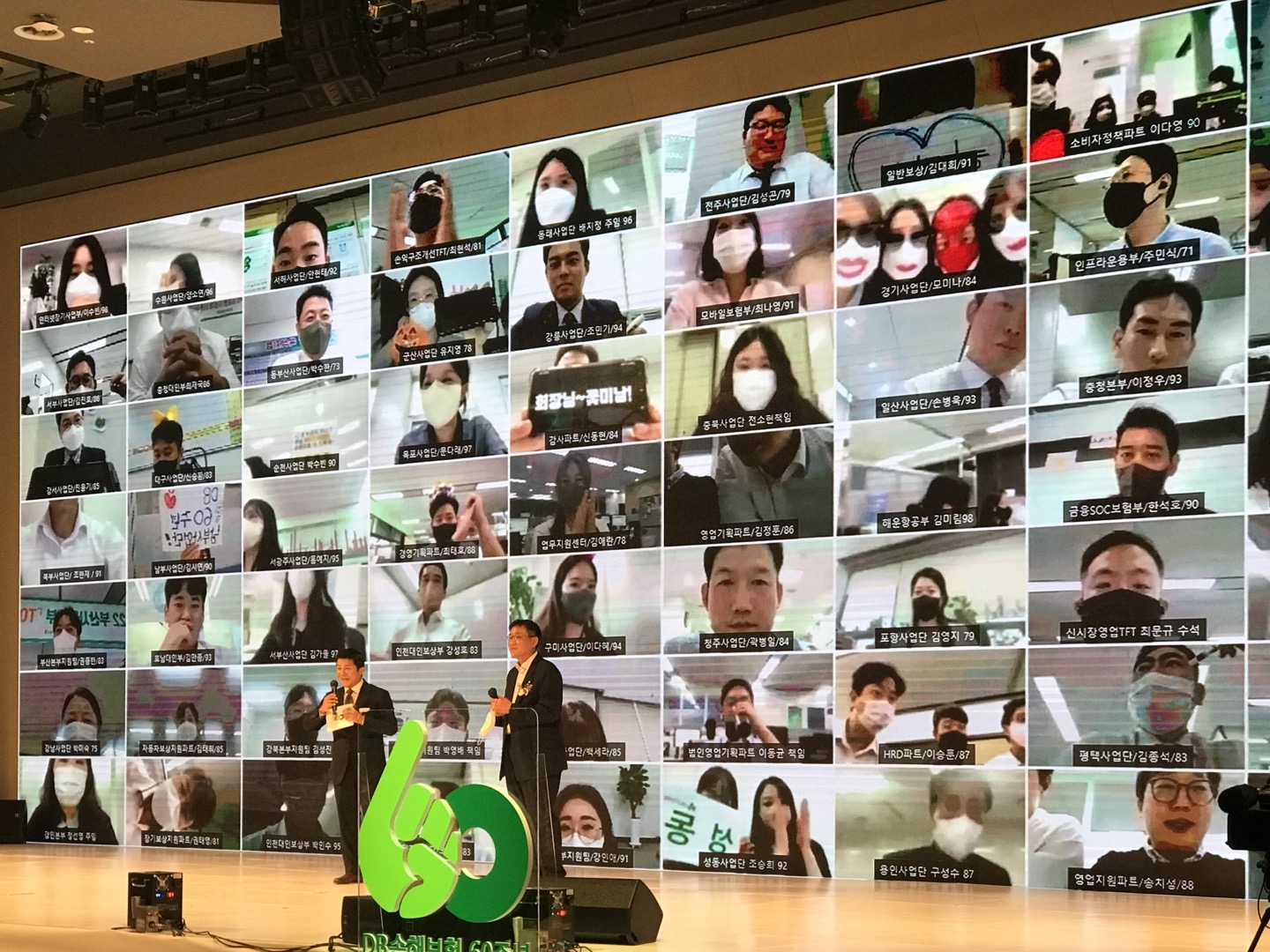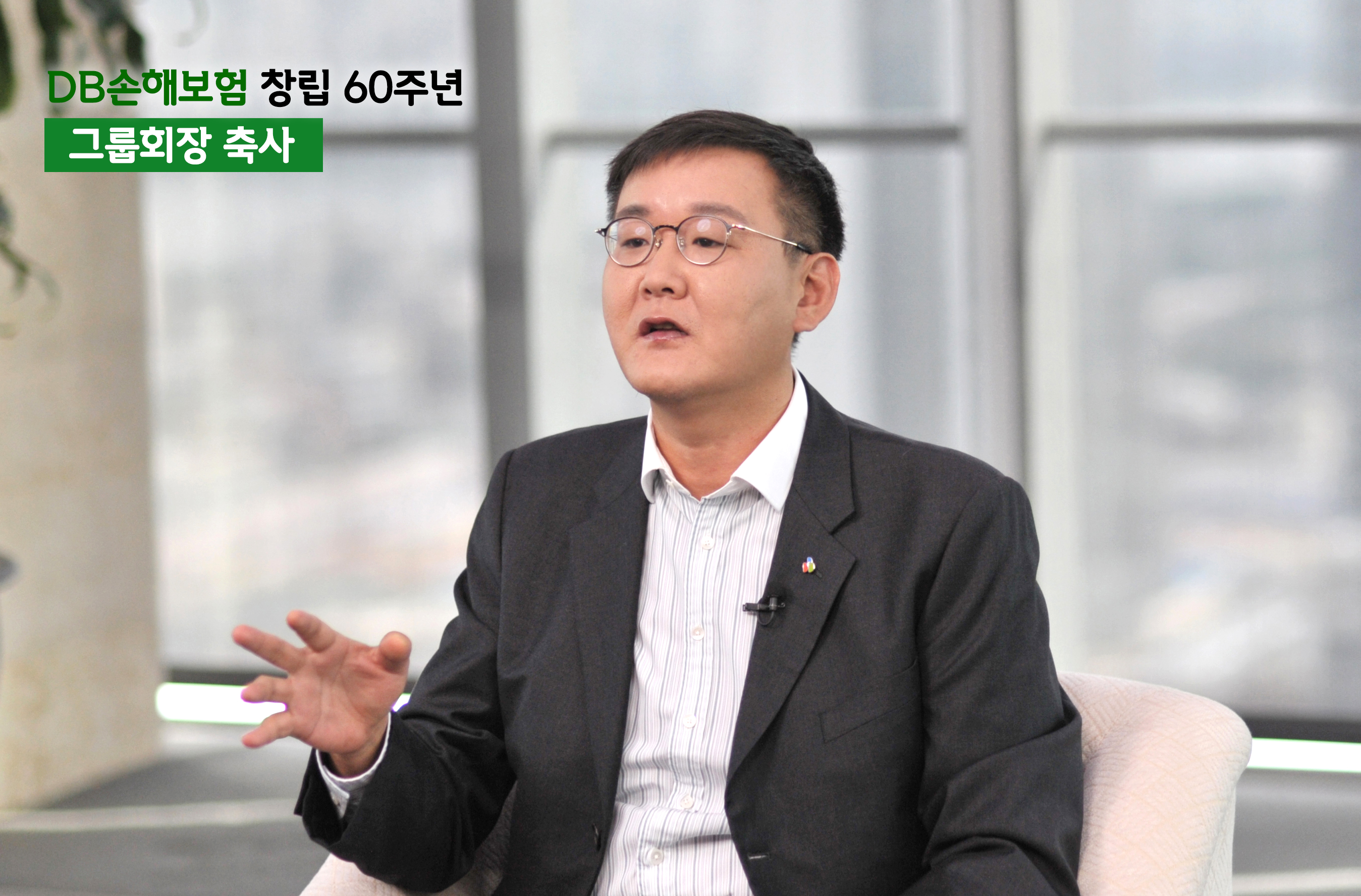 "60주년 기념식은 우리 회사 기업문화의 한 획을 긋는 행사였다고 생각합니다. 최초의 실시간 방송 중계, 사전 행사 프로그램 진행과 본행사장 On Line 임직원 참여 프로그램 등 풍성한 내용을 담고자 노력했고, 이러한 최초의 시도들은 임직원의 적극적인 참여를 통해 완성되었습니다. 회사와 임직원의 저력을 느낄 수 있는 기회였다고 자부합니다. 루프탑 파티 등 각 권역별로 직원들이 소통할 수 있는 공간을 제공했고 리마인드 DB 60과 같이 많은 영상물과 기록물을 회사의 자산으로 남기고 후배들에게 새로운 역사를 전해줄 수 있어 무엇보다 자랑스럽습니다. DB손해보험 임직원 여러분 고맙습니다. 그리고 사랑합니다. 감사합니다. "