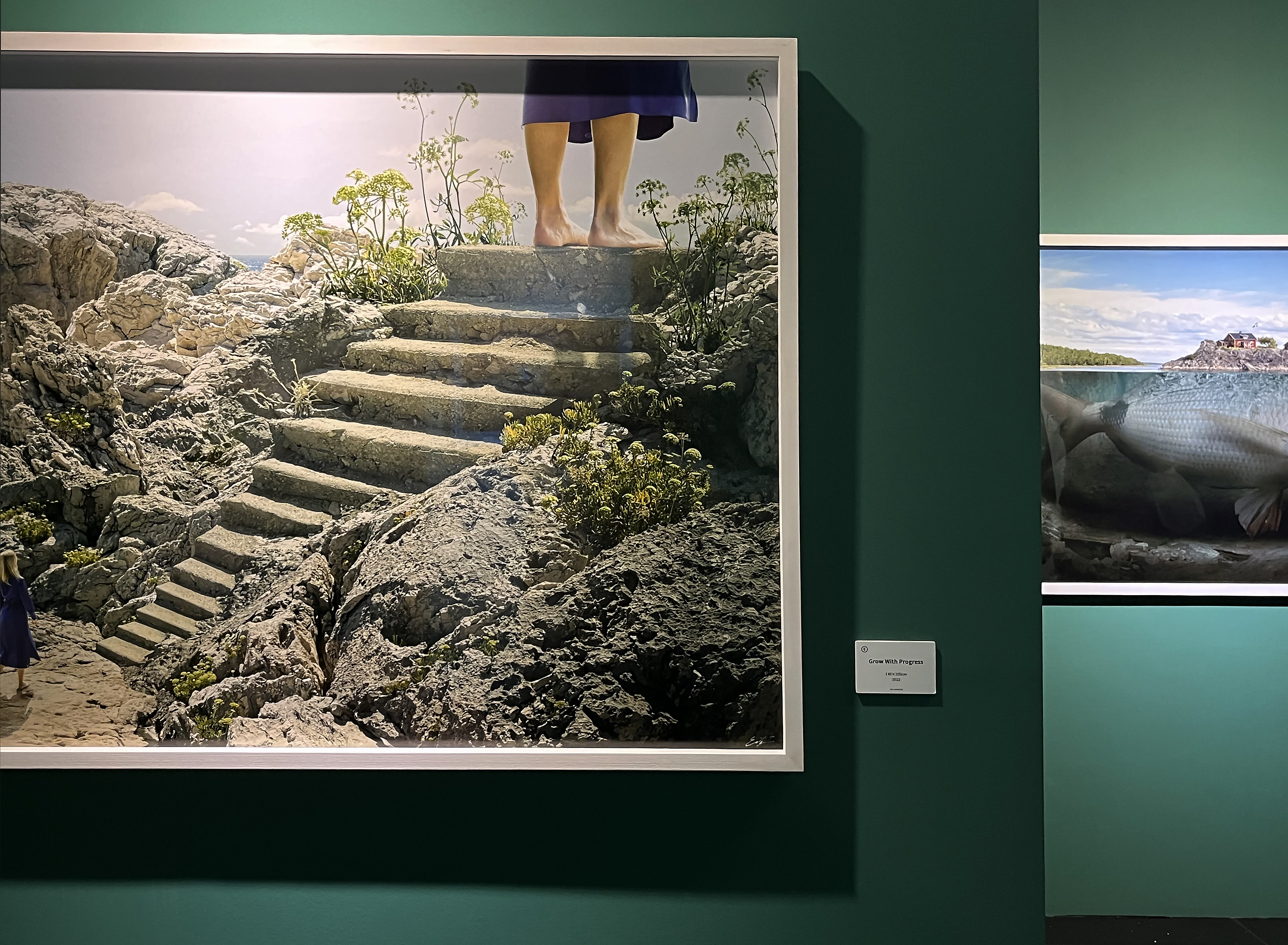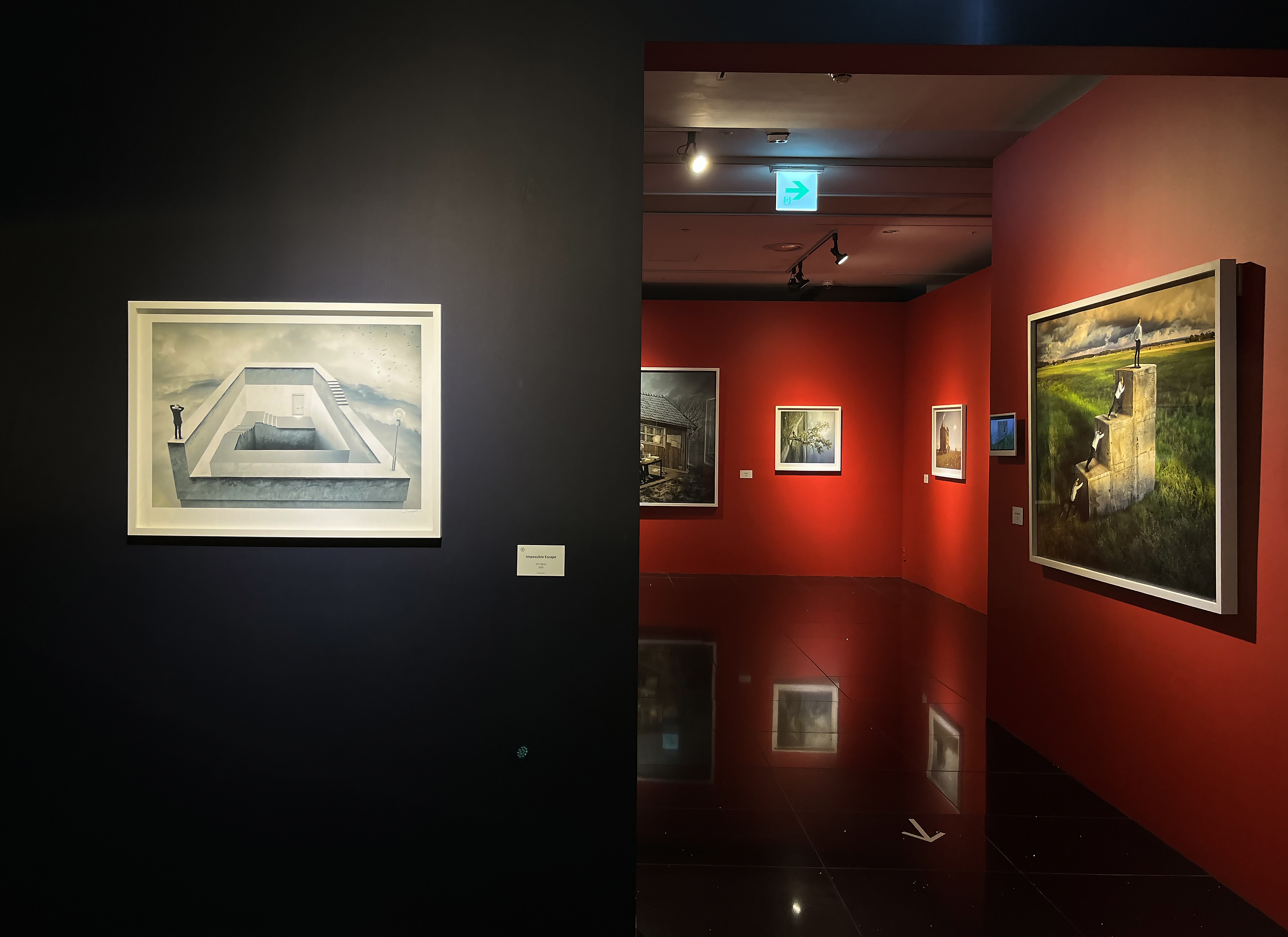 현실에서는 불가능한 세계를 사진 속에선 너무나도 자연스럽게 가능한 세계로 담아내는 에릭 요한슨의 작품들은 풍부한 상상력과 세심한 표현으로 더욱 높은 평가를 받고 있다고 하는데요. 특히 인상 깊었던 점은 전시되어 있는 사진들의 옆에 작은 모니터가 하나씩 붙어 있는데, 사진을 어느 과정을 통해서 찍고, 보정하고 스케치하는 일련의 과정들이 타임랩스로 담겨 완성작 옆에서 재생되고 있다는 것입니다. 모든 작품에 스케치 영상이 있는 것은 아니지만, 스케치 영상이 재생되고 있는 작품을 찾으면 멍하니 서서 한참을 바라보고 서 있게 되더라고요.