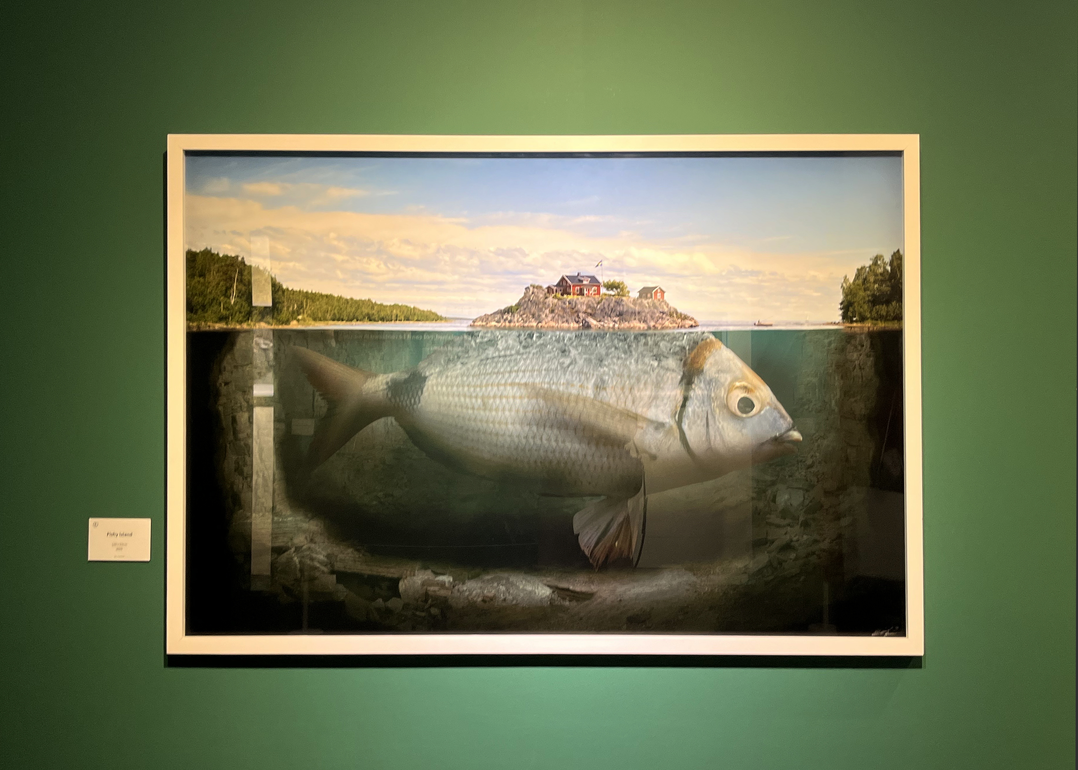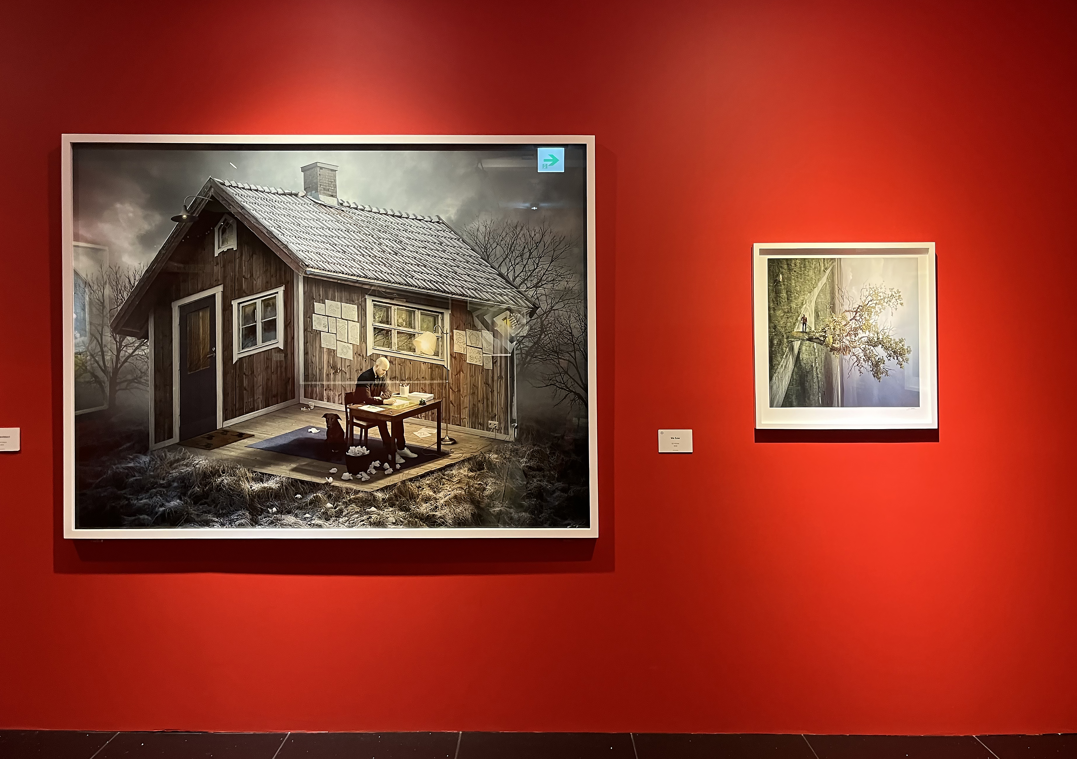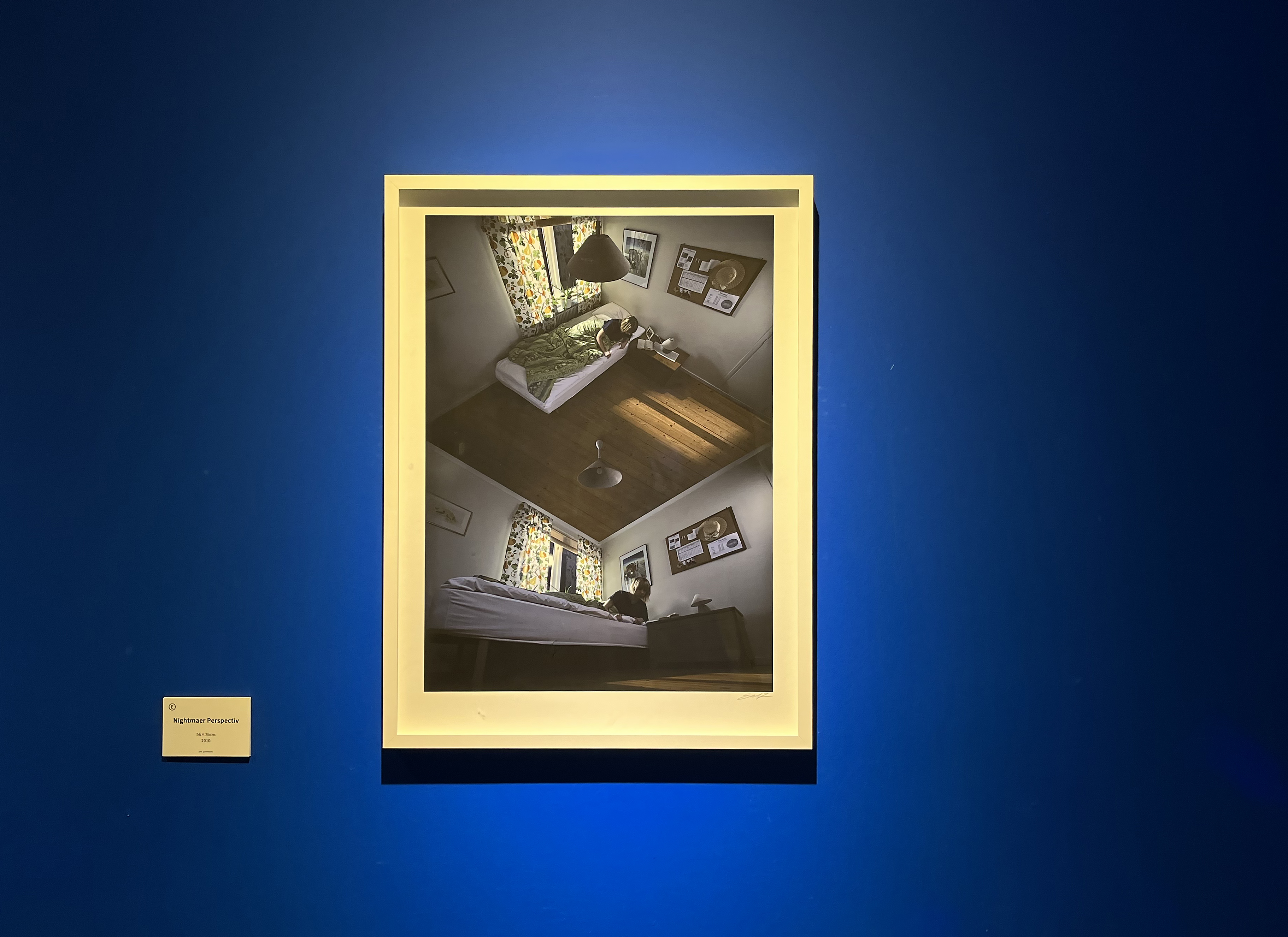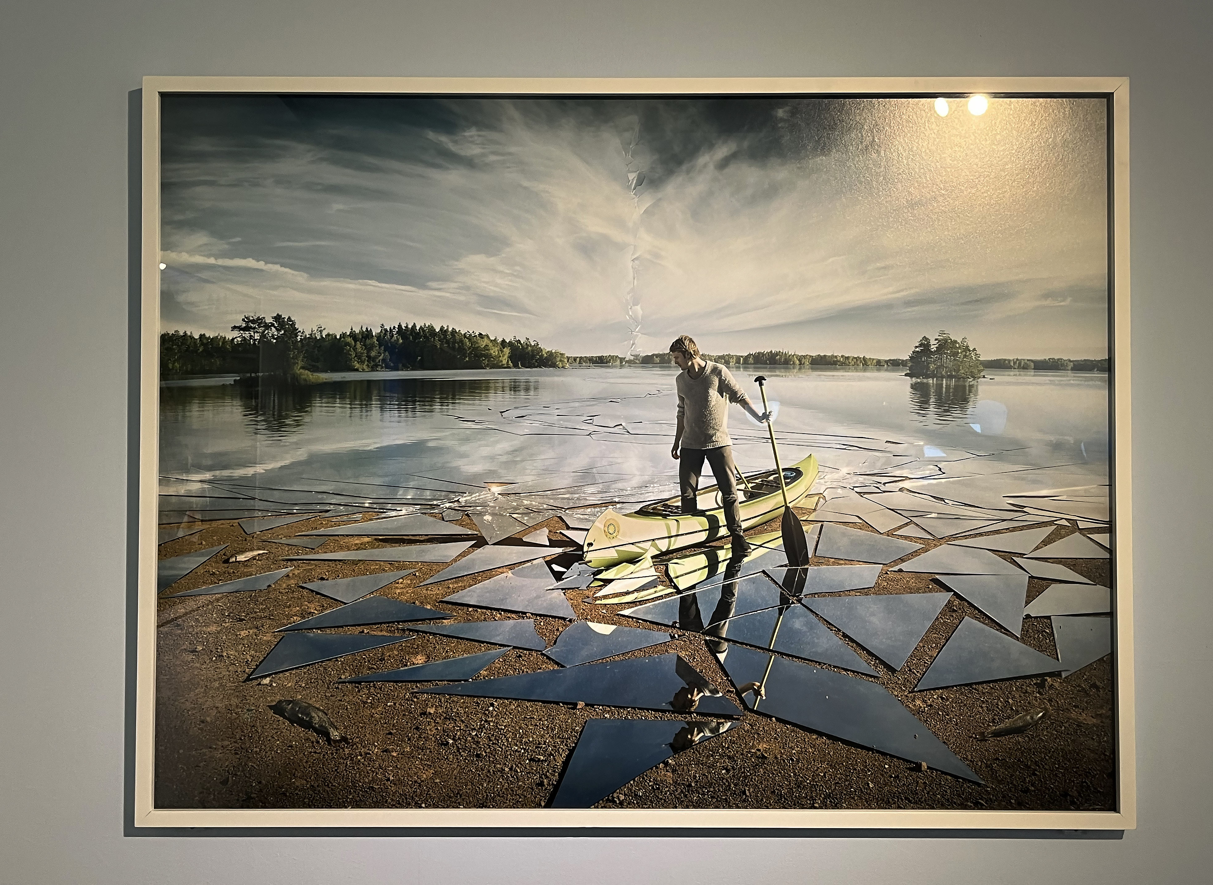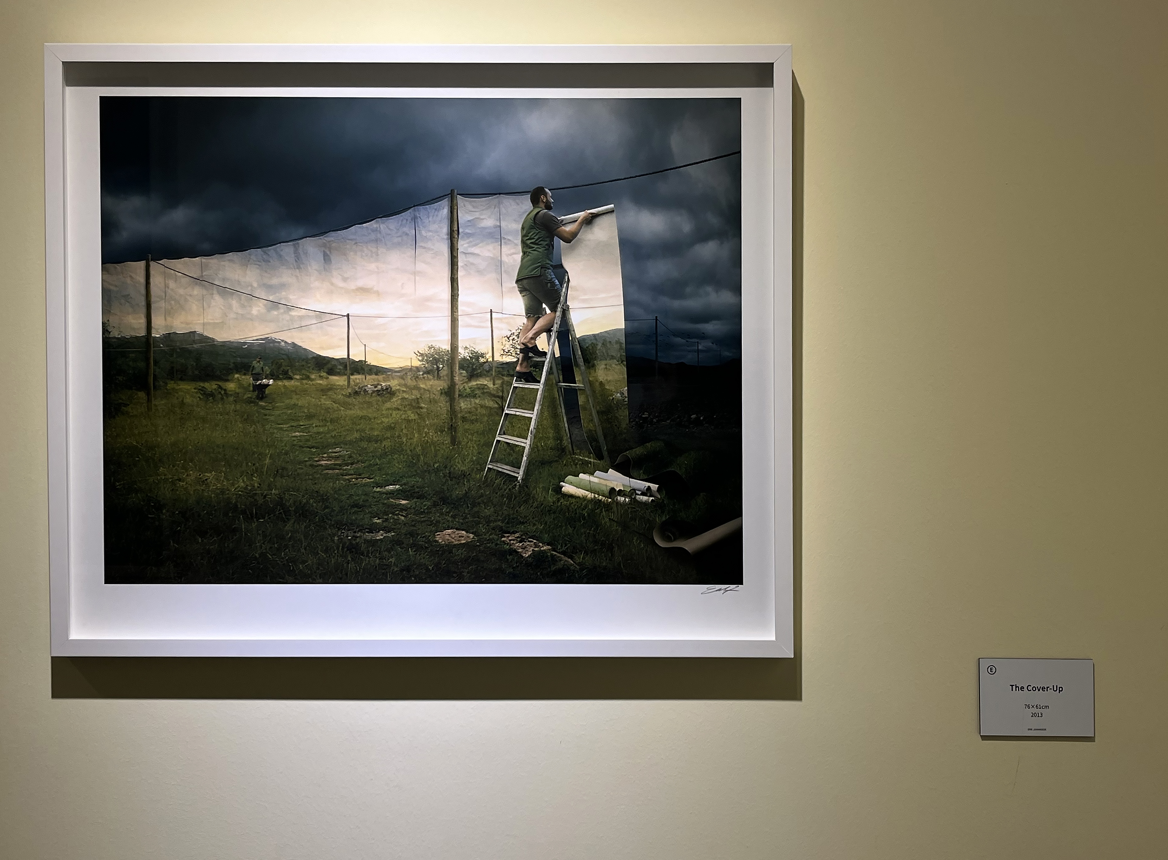 다림질을 하고 있는 남자가 분명 있었는데 다림판 위에 다려지는 옷으로 변했다가 결국 남자의 발이 보이는 연출, 어두운 구름이 가득한 날 밝은 날을 천막 걸듯이 걸고 있는 남자, 이불 속에서 아직 잠을 자는 중인 것 같은데 사실은 물속에 둥둥 떠 있는 상태의 사진 등 무슨 의도로 이런 작품을 연출했을까 작가의 의도가 궁금해지는 사진들이 가득했습니다. 덕분에 전시 내내 흥미롭게 관람할 수 있었어요. 이처럼 에릭 요한슨의 사진들은 이런 풍성한 상상력을 이용해 해학과 풍자를 내포한 상충적 개념의 이미지 충돌을 담아내어 신선한 충격을 주는 것으로 유명합니다.