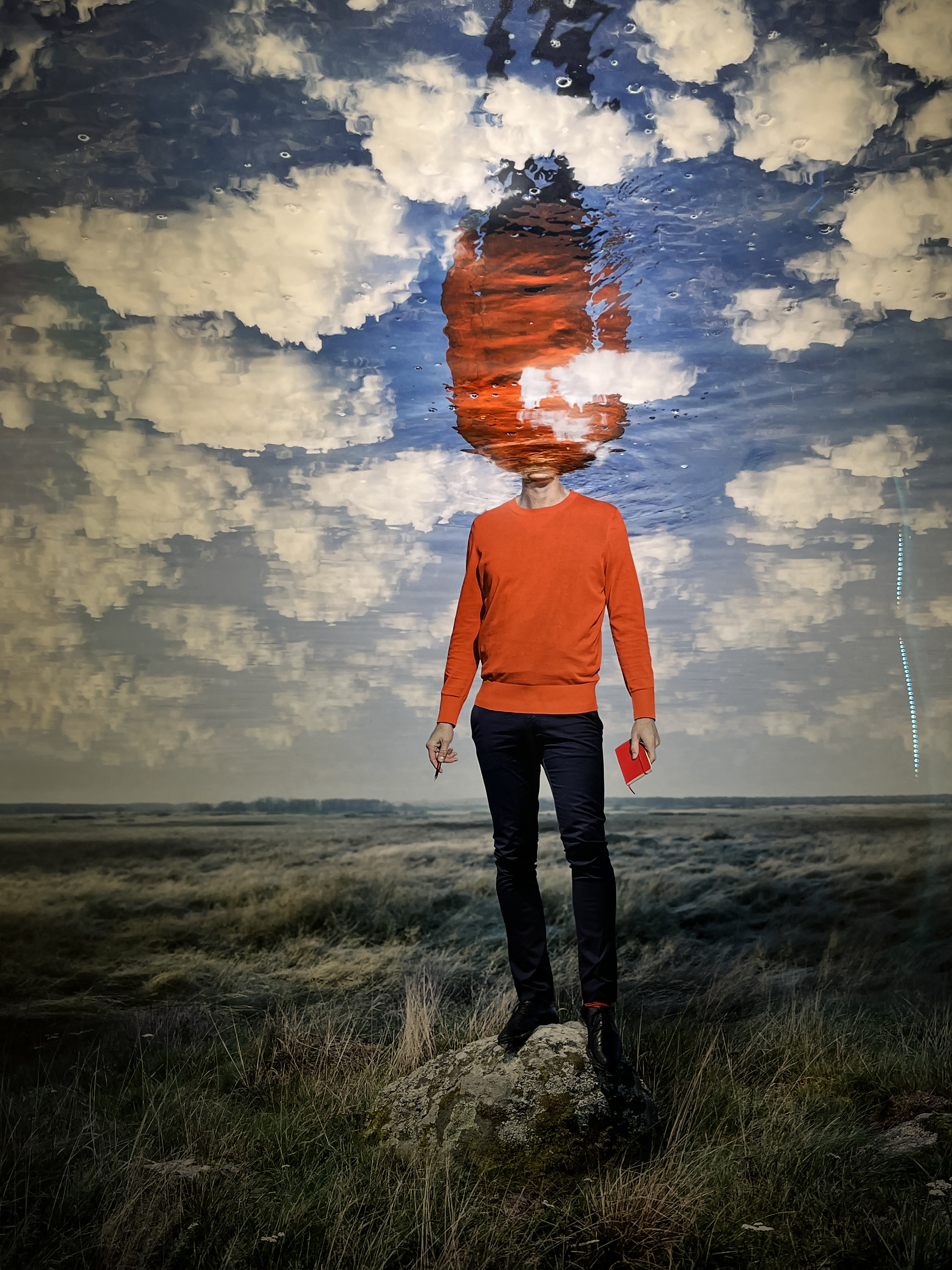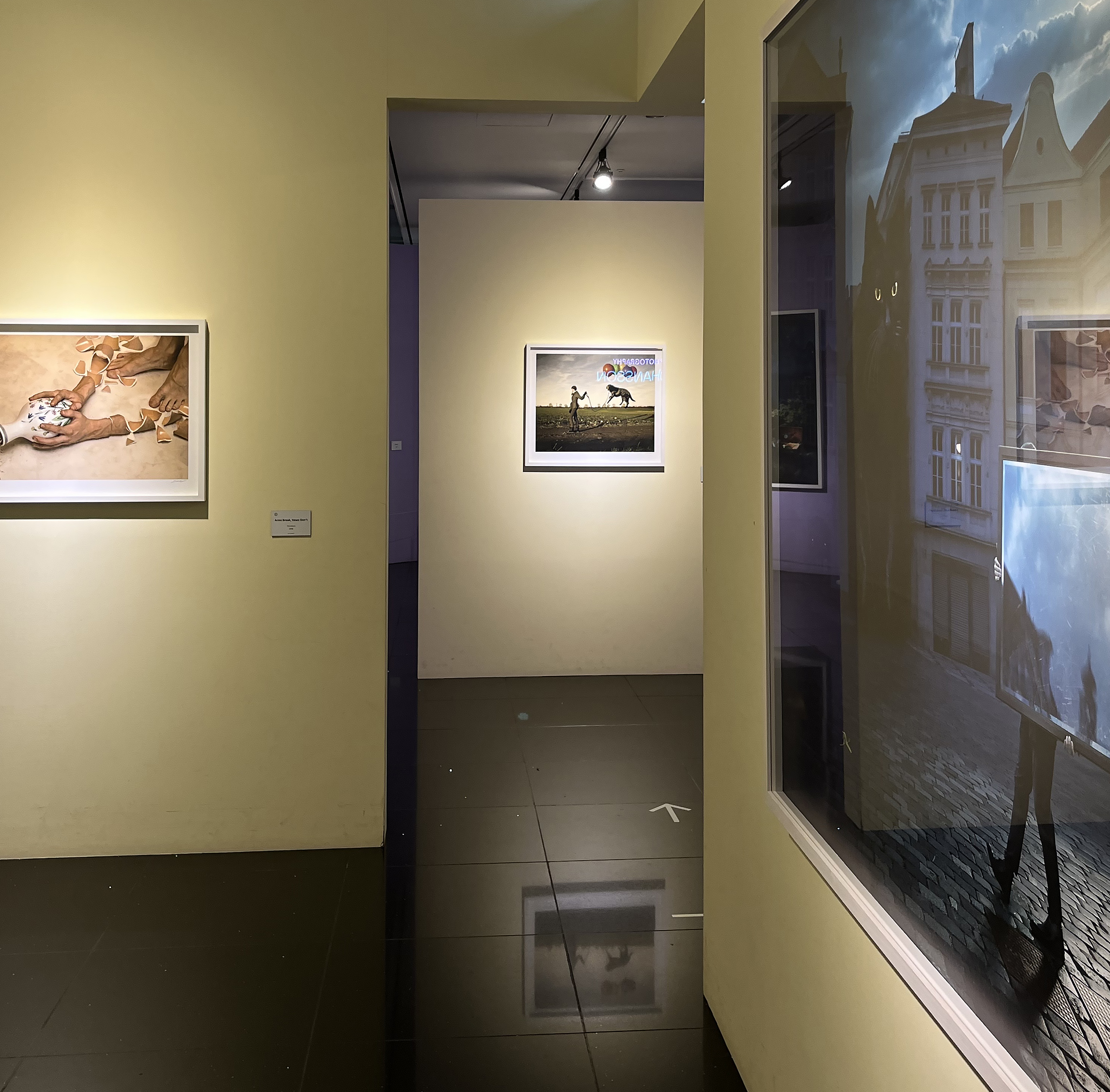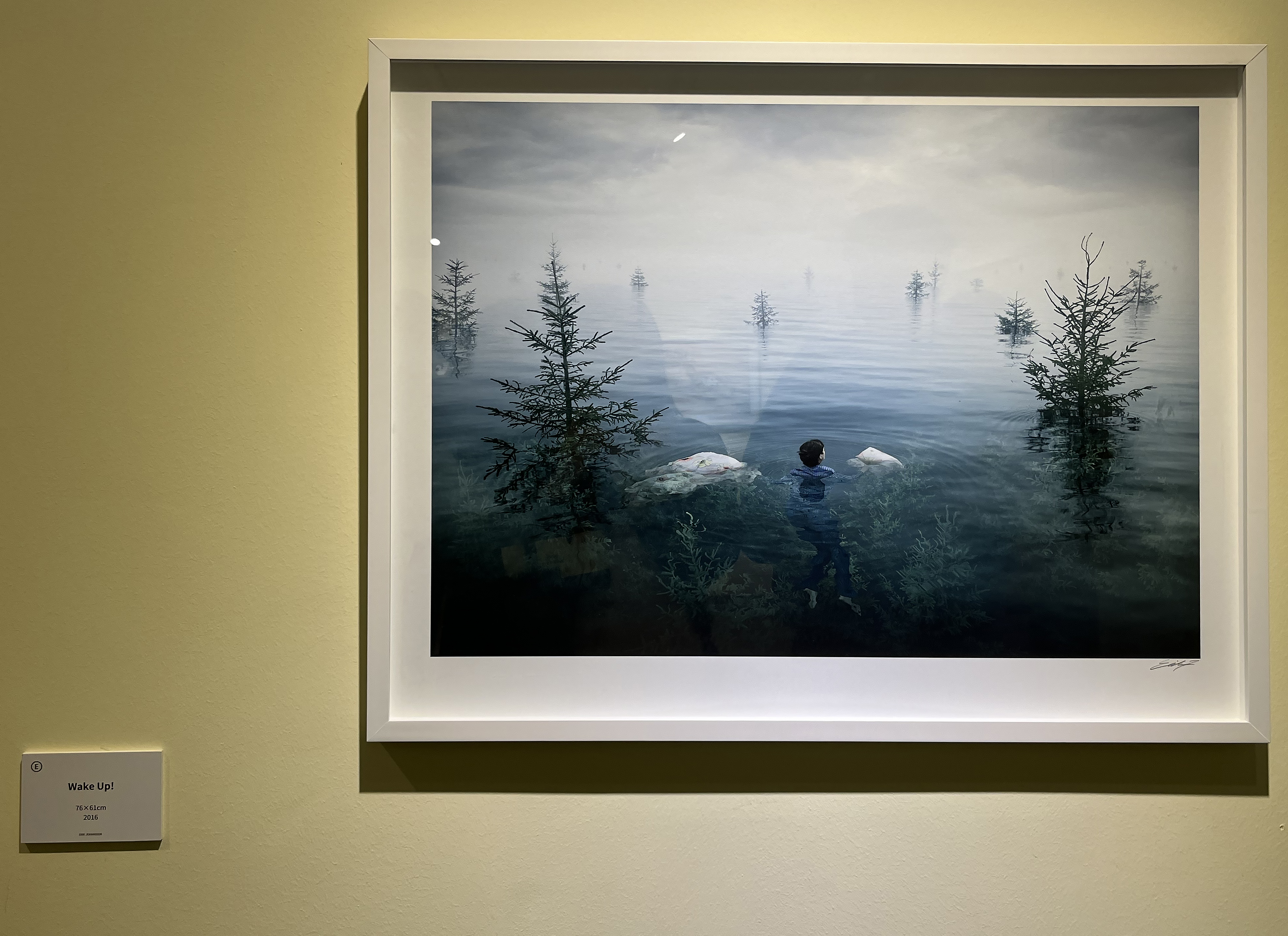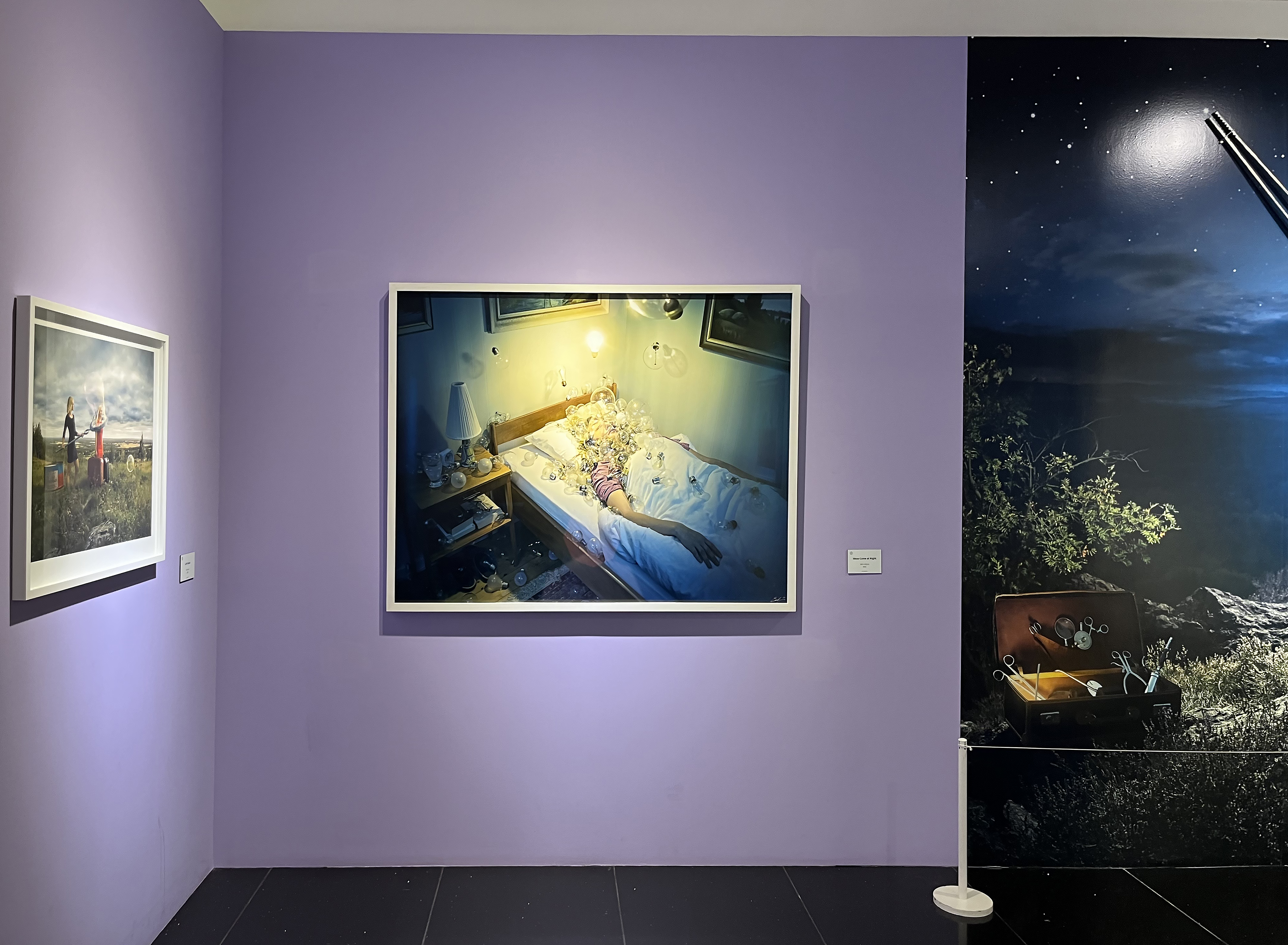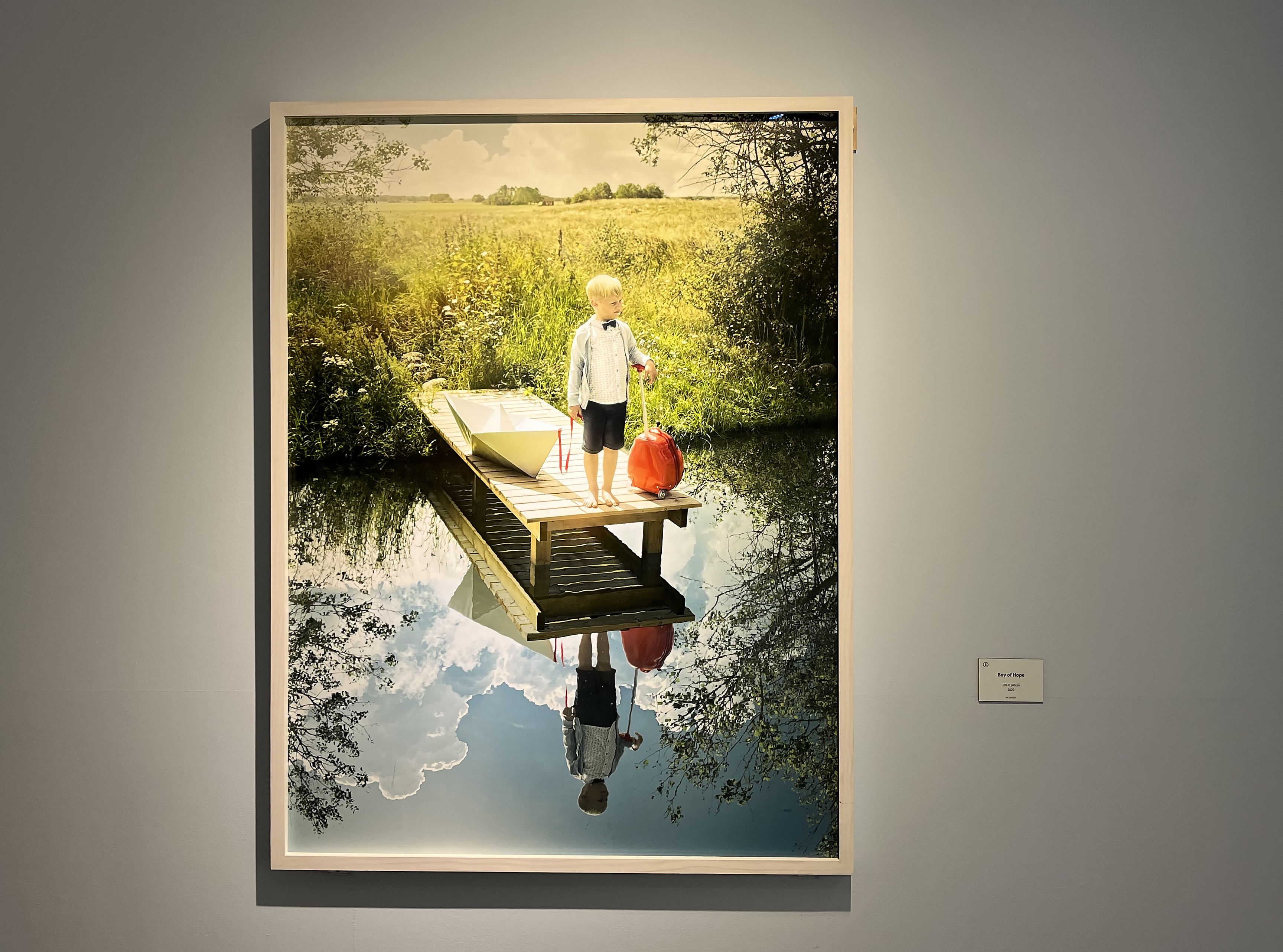 다림질을 하고 있는 남자가 분명 있었는데 다림판 위에 다려지는 옷으로 변했다가 결국 남자의 발이 보이는 연출, 어두운 구름이 가득한 날 밝은 날을 천막 걸듯이 걸고 있는 남자, 이불 속에서 아직 잠을 자는 중인 것 같은데 사실은 물속에 둥둥 떠 있는 상태의 사진 등 무슨 의도로 이런 작품을 연출했을까 작가의 의도가 궁금해지는 사진들이 가득했습니다. 덕분에 전시 내내 흥미롭게 관람할 수 있었어요. 이처럼 에릭 요한슨의 사진들은 이런 풍성한 상상력을 이용해 해학과 풍자를 내포한 상충적 개념의 이미지 충돌을 담아내어 신선한 충격을 주는 것으로 유명합니다.