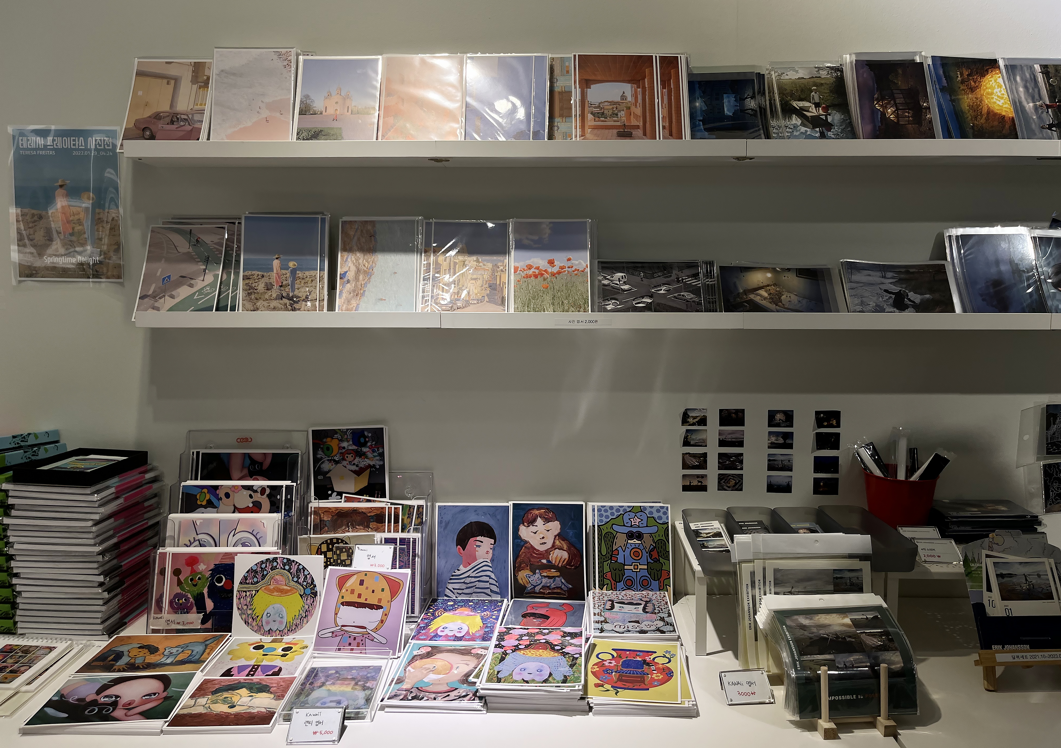 관람을 마치고 나오면 에릭 요한슨의 전시와 관련된 굿즈들과, 이번 전시를 준비한 CCOC가 기획한 다른 전시의 굿즈들을 구매할 수 있는 작은 아트샵이 있고, 63빌딩의 전망을 즐기며 커피 한잔할 수 있도록 탁 트인 뷰가 기다리고 있습니다.