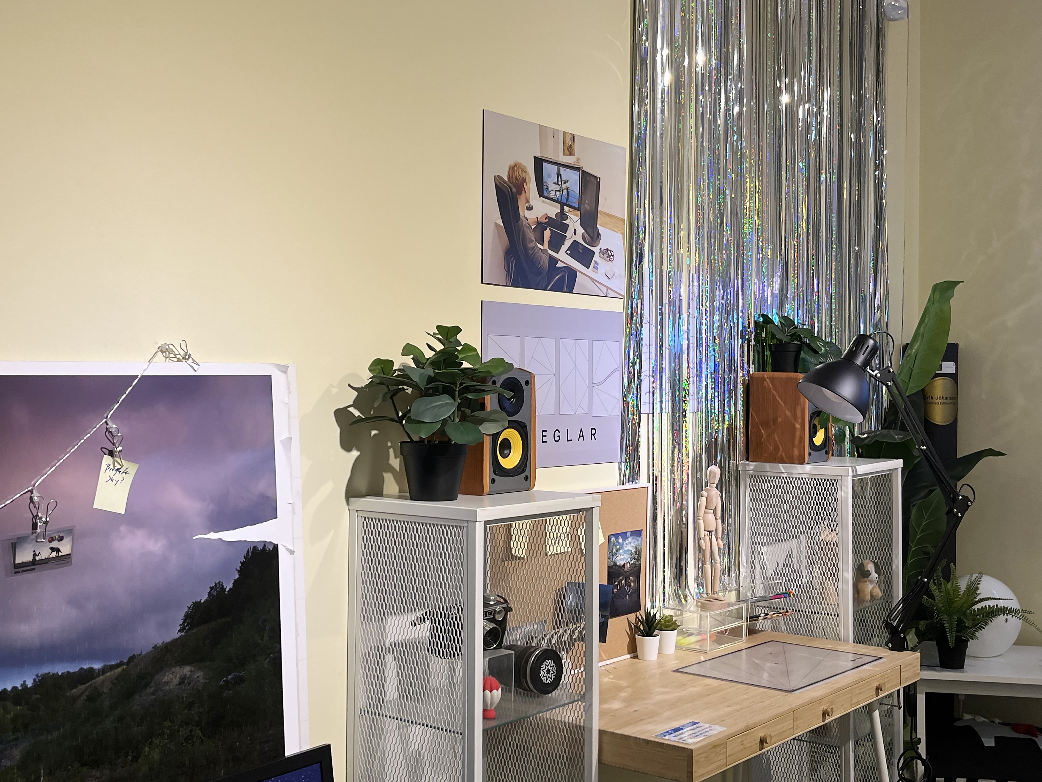 전시의 중간쯤에는 에릭 요한슨의 스튜디오를 그대로 재현해 놓은 공간도 볼 수 있습니다. 체코 프라하에 위치한 에릭 요한슨의 스튜디오의 책상 앞에는 항상 항상 본인이 생각한 아이디어 스케치가 여러 장 붙어 있습니다. 이 스케치들이 모여 시간이 흐르면서 하나씩 작품으로 완성되는 것을 볼 수 있다고 해요.