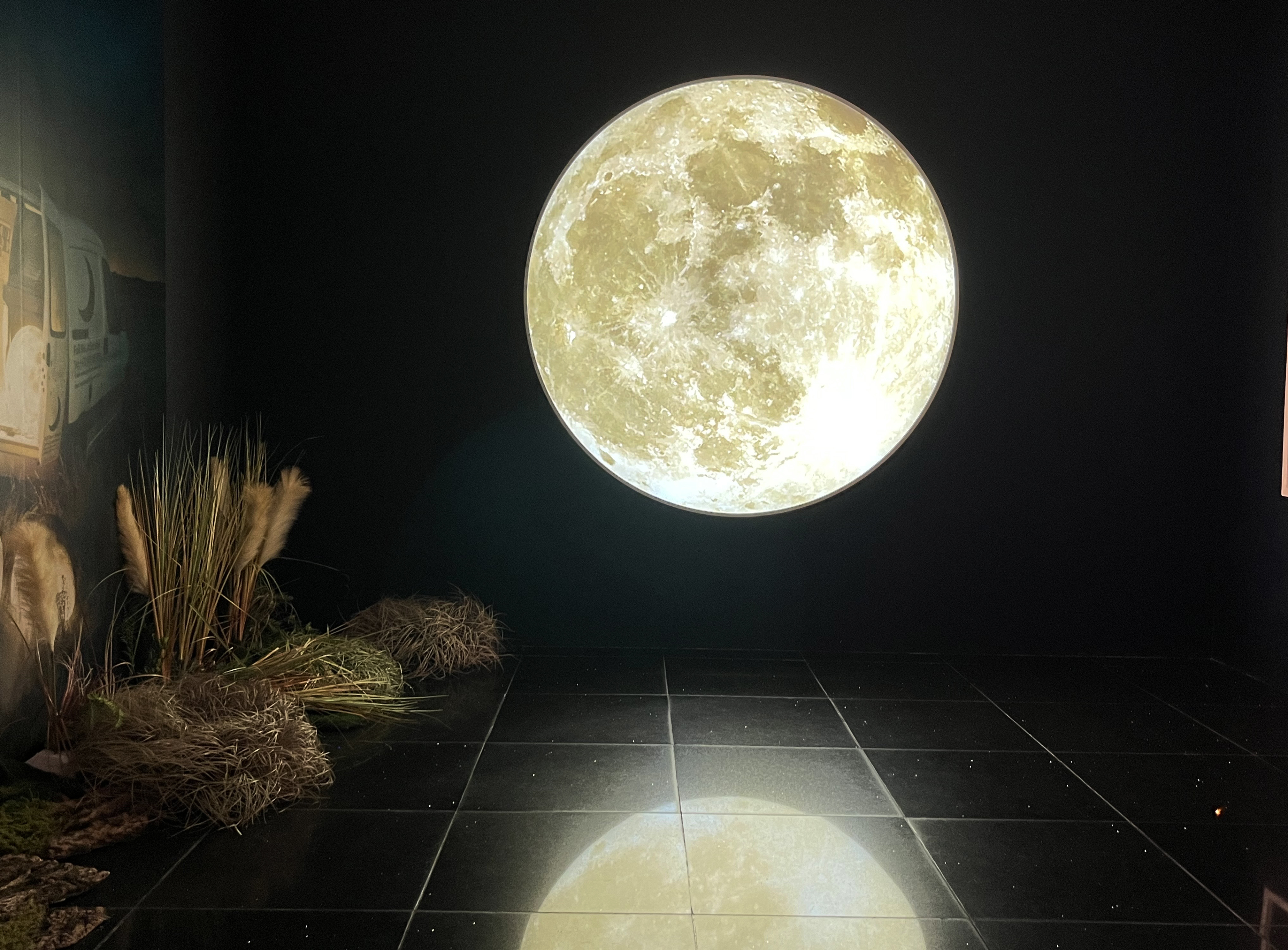 전시회 곳곳에는 포토존으로 꼭 사진을 남겼으면 하는 공간들이 몇몇 있었는데요. 63빌딩의 높은 뷰에서 내려다보는 전망은 물론이고, 전시 공간 중에서도 이렇게 깨알 같은 포토존들이 많이 있었습니다. 커다란 달의 모형이 한가운데에 떠 있어 이 앞에 서서 사진을 한 장 남기면, 마치 역광처럼 내 그림자가 달에 겹쳐 사진에 담기더라고요. 이 공간에서도 꼭 예쁜 사진 한 장 남기실 수 있기를 바랍니다.