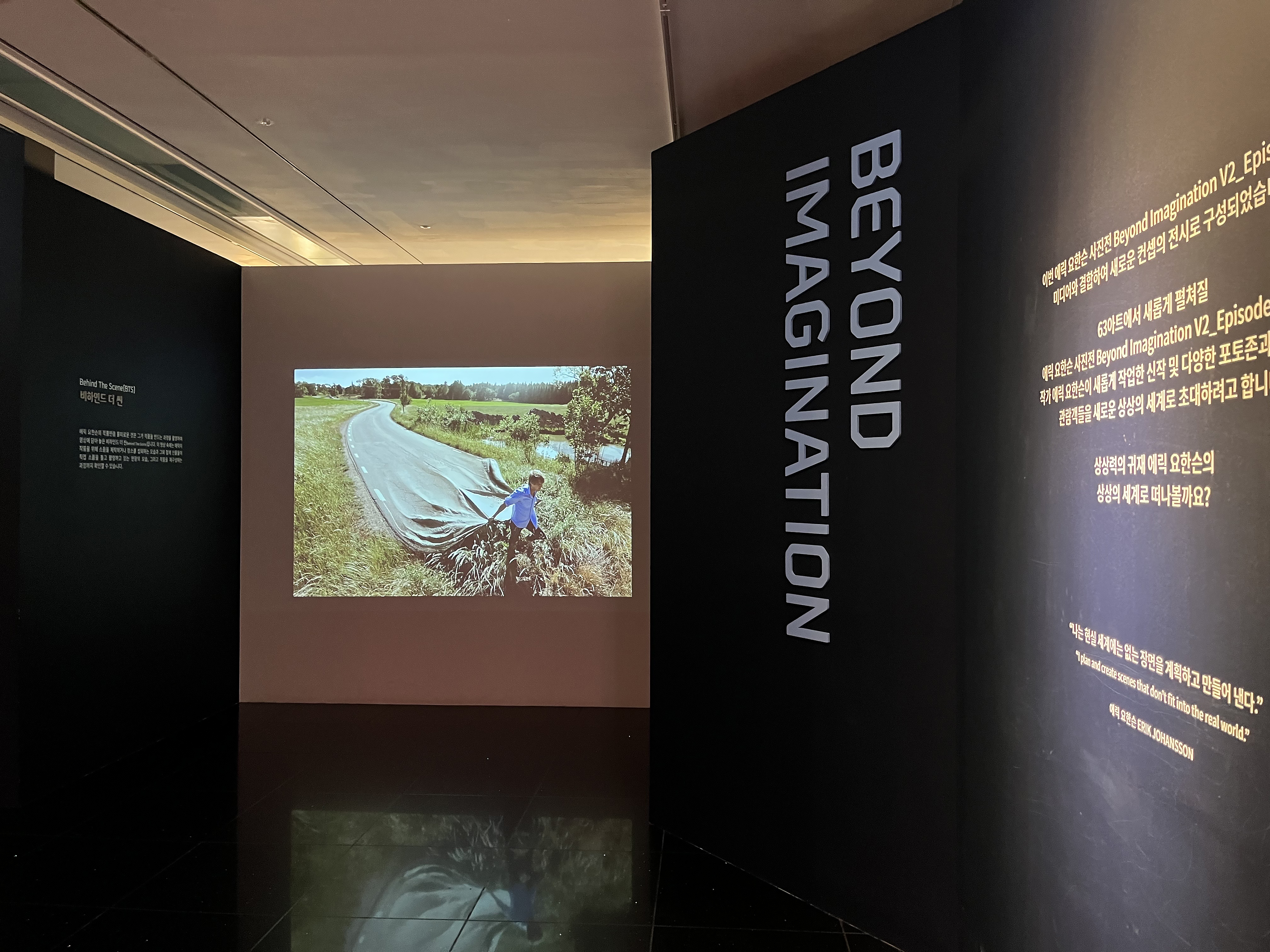 이번에 소개해 드릴 10월의 전시는 63빌딩의 63아트미디어 미술관에서 열리는 에릭 요한슨 사진전입니다. 60층에서 펼쳐지는 전시라니, 대한민국에서 가장 하늘에 가까운 곳에서 보는 전시 아닐까요? 특히 아트미술관은 곳곳에 창문 밖을 내려다볼 수 있는 통창이 있어 전시회 관람하는 도중에 63빌딩의 아름다운 시티뷰를 한눈에 볼 수 있는 매력적인 곳이었습니다. 이번 에릭 요한슨의 사진전에는 상상을 초월하는 신작들이 가득하다고 해서 많이 기다려졌어요. 상상력이 가득한 에릭 요한슨의 작품들은 촬영 후 포토샵으로 합성을 하며 만들어낸 독창적인 사진들이 가득했답니다. 그렇다면 지금부터 에릭 요한슨의 사진전 vol.2를 함께 볼까요?