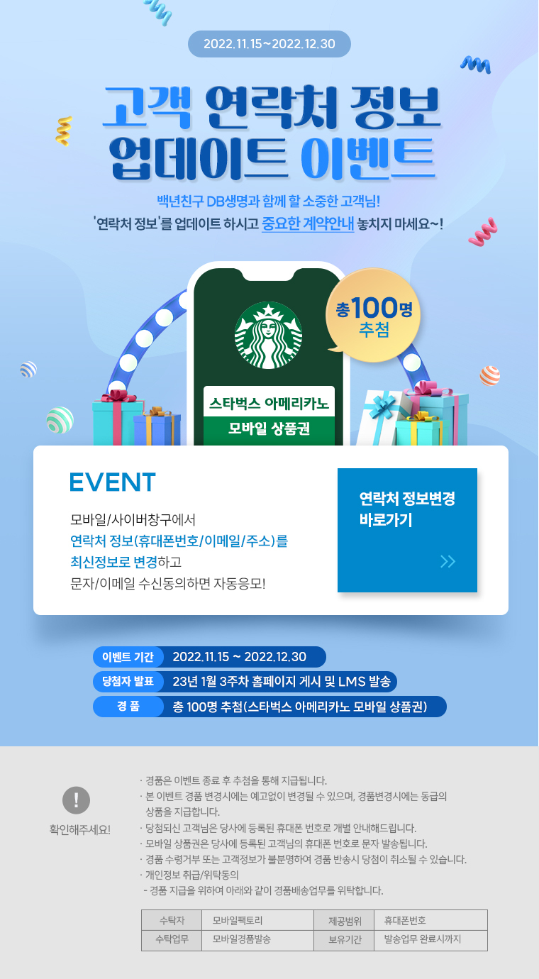 총 100명 추첨(스타벅스 아메리카노 모바일 상품권)
