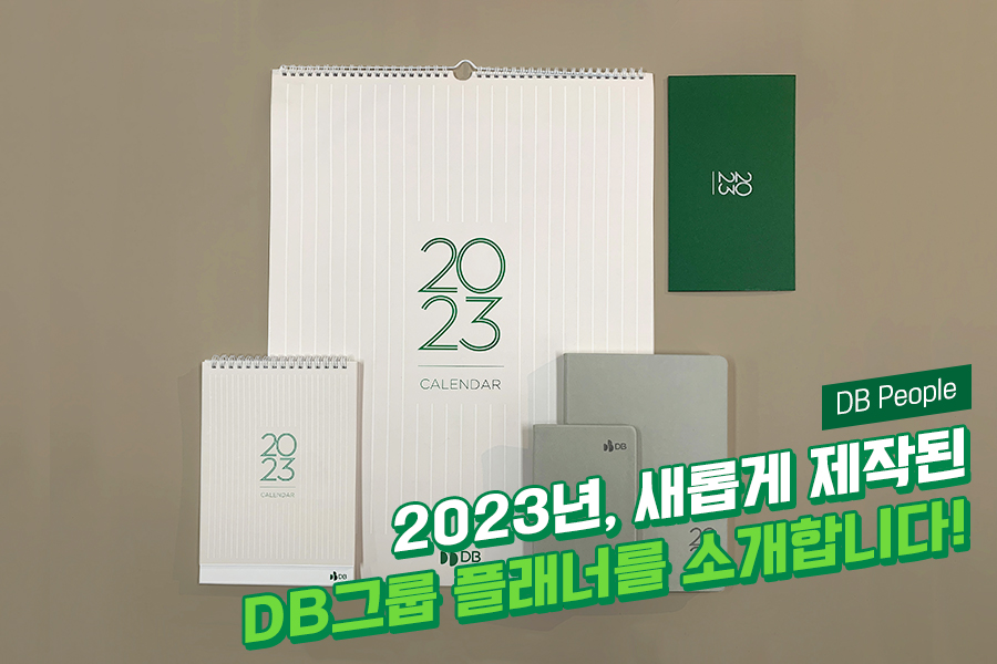 여러분은 연말이면 어떤 것이 떠오르시나요? 직장인은 한 해 동안 이루어진 업무를 돌아보며 뿌듯함과 반성을 되새기기도 하고, 내년의 업무를 준비하기도 합니다. DB인의 2023년 업무를 함께할 그룹 플래너와 달력을 소개합니다. DB그룹은 예년과 동일한 탁상용캘린더, 벽걸이캘린더, 다이어리, 소수첩을 플래너 set로 준비했습니다. 업무 및 일정관리에 꼭 필요한 구성품들이지요.