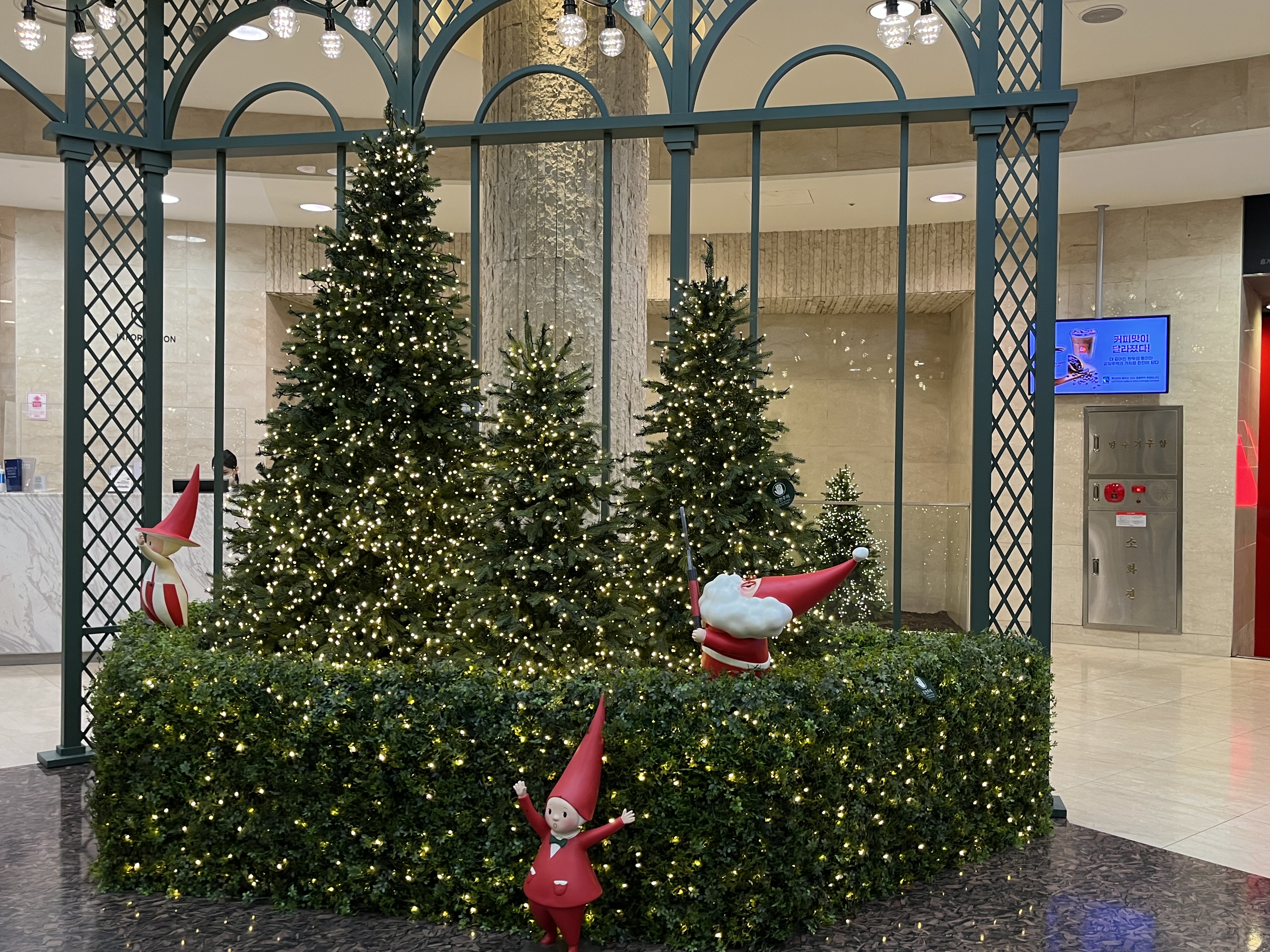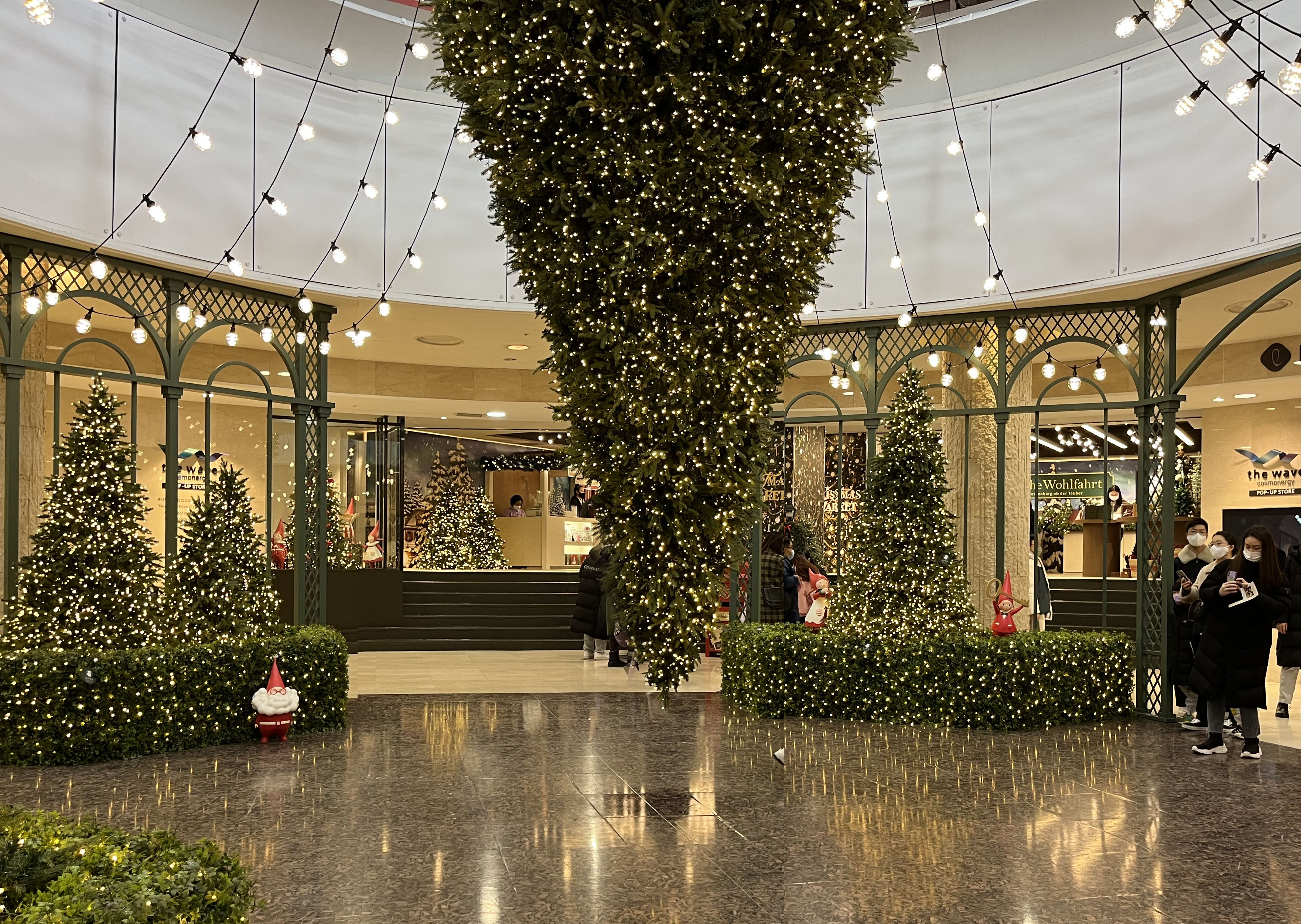 트리 주변에 생각보다 사람이 많아서 걸리지 않게 사진을 촬영하기는 조금 힘들 수 있으니 백화점 오픈시간 또는 마감시간 근처를 노리면 조금 더 수월하고 깨끗한 배경으로 찍을 수 있을 것 같습니다.
