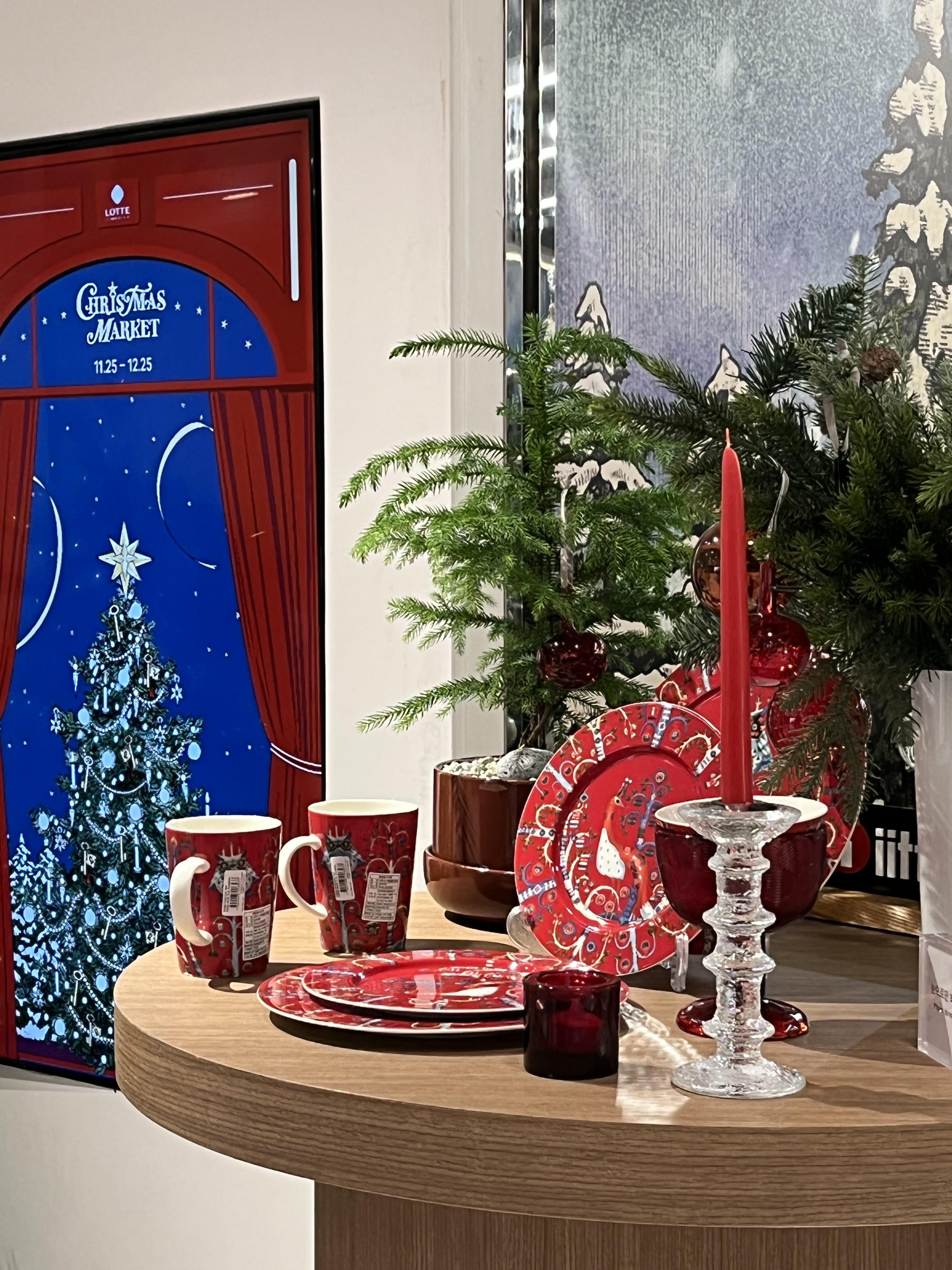 크리스마스가 되면 다들 외식이나 데이트 계획이 많지만 그만큼 홈파티를 준비하는 분들도 정말 많은데요. 어디를 가도 크리스마스 당일과 연말은 사람이 붐비다 보니 아늑하게 집에서 크리스마스를 즐기는 것도 좋을 것 같습니다. 그렇다면 크리스마스 느낌을 물씬 풍기는 귀여운 소품들과 식기들이 필요할 텐데요. 롯데백화점 지하에는 크리스마스 마켓 팝업이 진행 중이라 와인잔과 크리스마스 컨셉의 그릇들, 귀여운 소품들까지 한번에 구매할 수 있게 꾸며져 있었습니다.