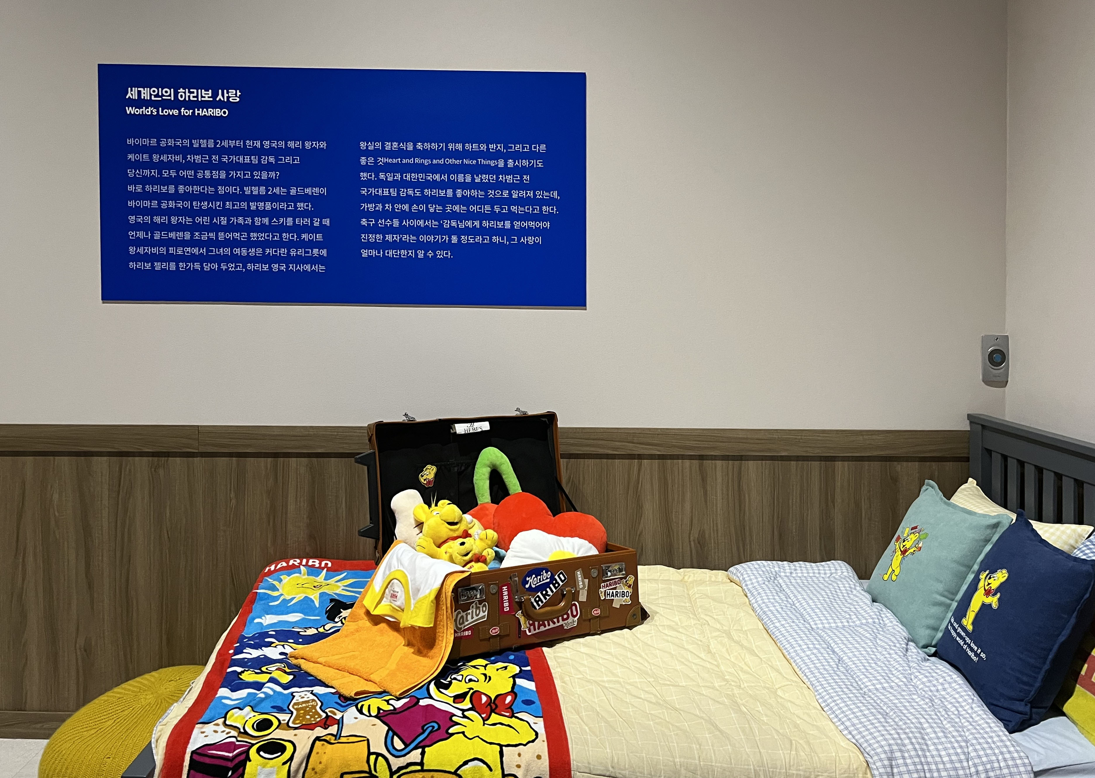 골드베렌의 초대장을 받고 도착한 첫 번째 장소는 바로 하리보 덕후 ‘하리보리안’의 방입니다. 하리보 굿즈가 벽면과 침대를 가득 채우고 있는데요. 판매하지 않는 하리보 레트로 굿즈들이 전시되어 있어서 유심히 보다 보면 집으로 가져가고 싶어지는 귀여운 피규어들이 눈에 띄더라고요. 틴케이스, 포스터, 피규어까지 유니크한 굿즈들을 찾아볼 수 있답니다.