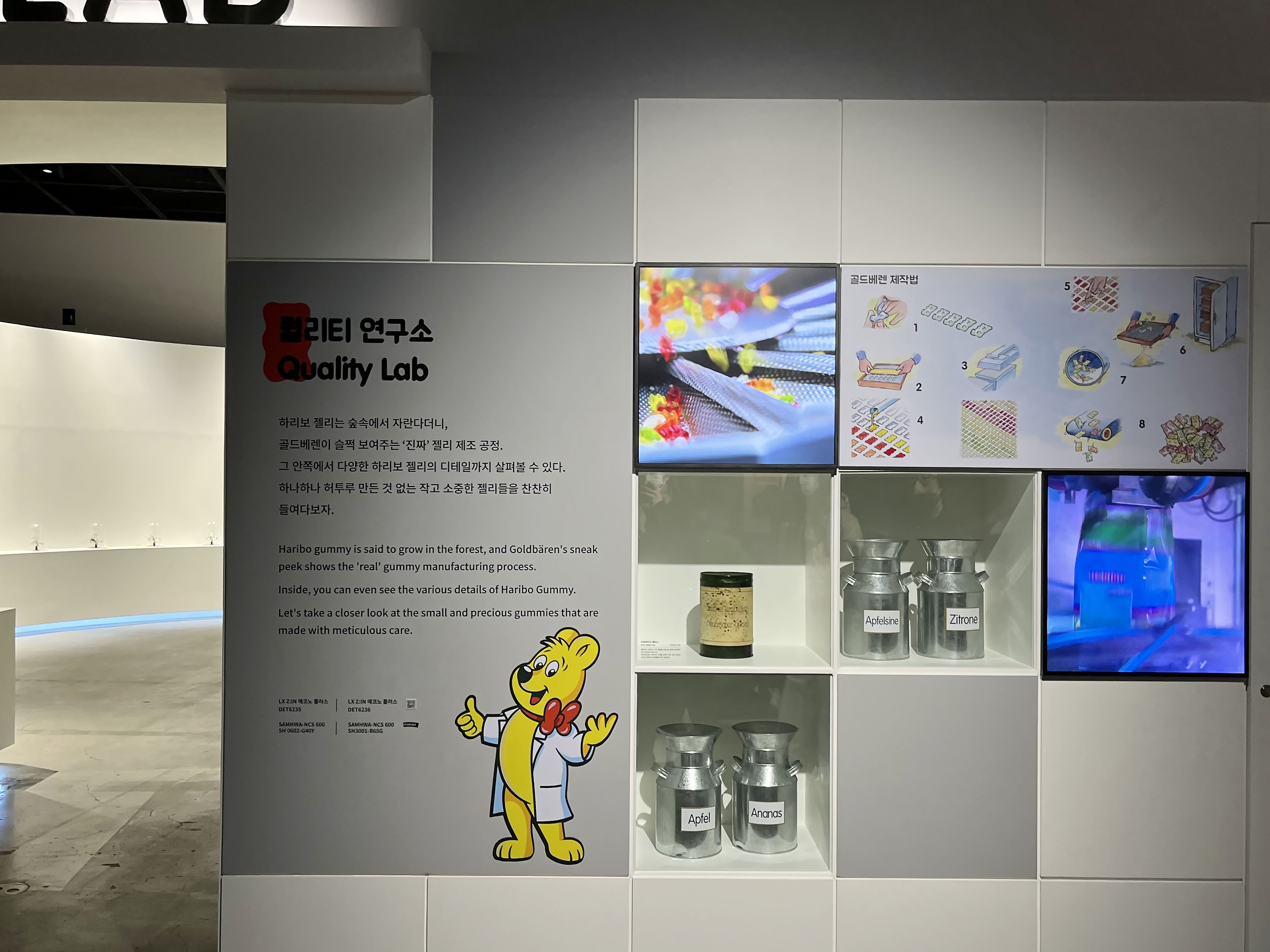 야생젤리보호구역에서 하리보는 숲속에서 자란다고 해놓고, 은근슬쩍 보여주는 진짜 하리보 ‘젤리’의 제조 공정이 전시된 공간입니다. 작고 소중한 젤리들을 하나하나 허투루 만들지 않는 디테일을 살펴볼 수 있어요.