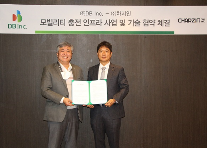 DB Inc.는 전기차 충전플랫폼 기업 차지인과 ‘모빌리티 충전 인프라 사업 및 기술협약’을 통해 국내외 전기차 충전서비스 관련 사업의 성공적 정착, 응용영역 확대, 매출 증대를 위해 상호협력하기로 했다.