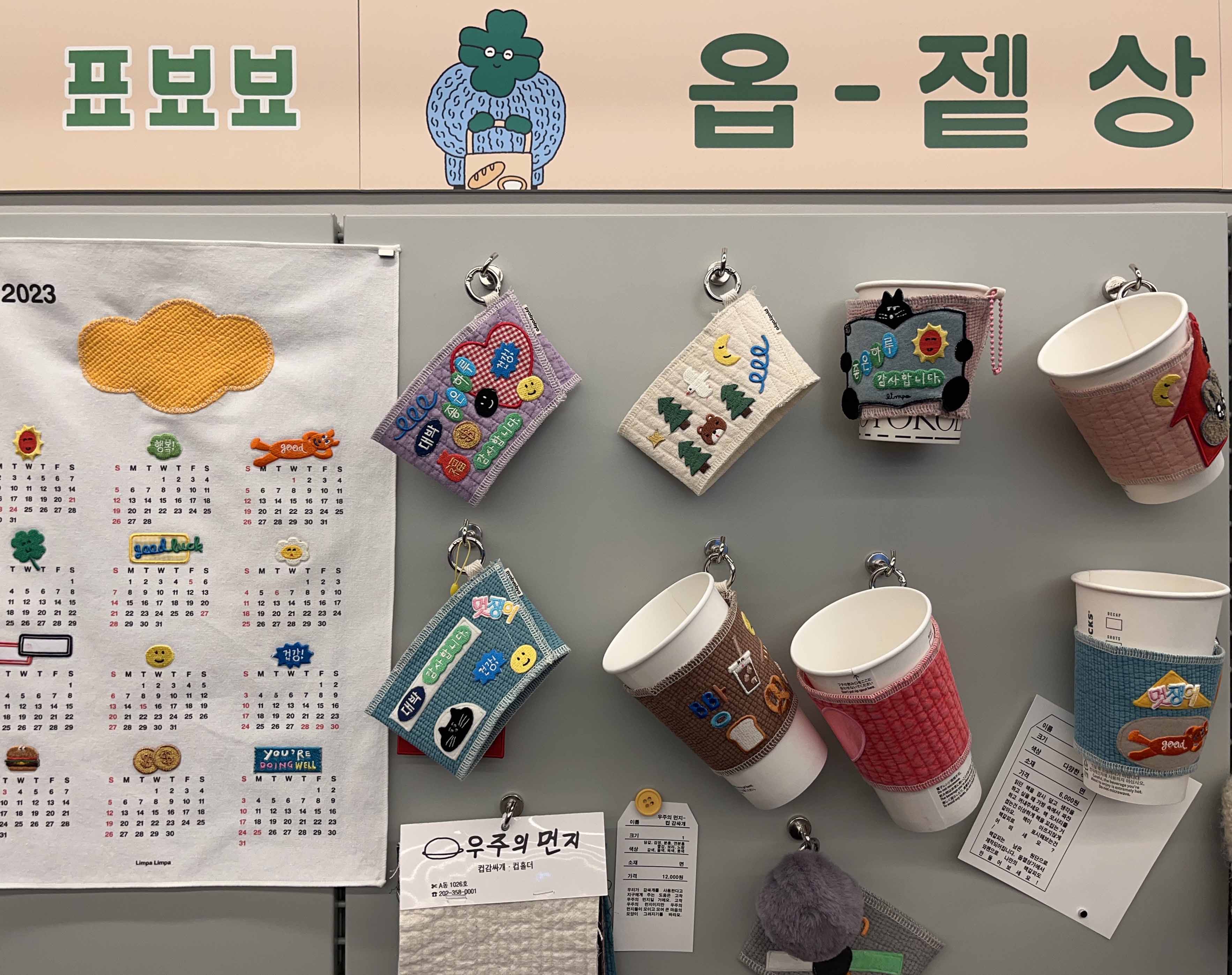 굳이 계절을 타는 아이템이 아니더라도, 표뵤뵤 작가님의 컵홀더와 아기자기한 에코백, 작은 가방과 파우치, 키링 등 면 소재로 된 제품들도 함께 판매 중인데요. 특히 요즘 플라스틱 컵보다는 유리컵과 텀블러를 쓰는 분들이 늘어나고 있으니, 이번에 마음에 쏙 드는 디자인의 컵홀더를 만드는 것도 의미 있는 DIY 작품이 될 수 있을 것 같습니다.