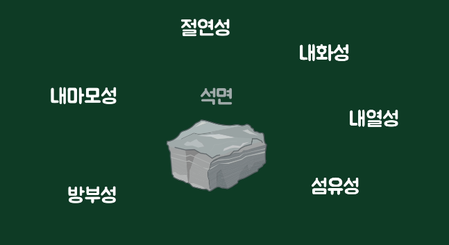 여기까지 주제에 관한 내용은 끝났습니다. 추가로 앞서 후술하겠다고 한 내용을 알아보려고 하는데, 예전에는 석면텍스를 많이 사용했어요. 석면은 돌임에도 솜처럼 가볍고 부드러운 물질이라고 해서 붙여진 이름으로 자연에 존재하는 광물입니다.