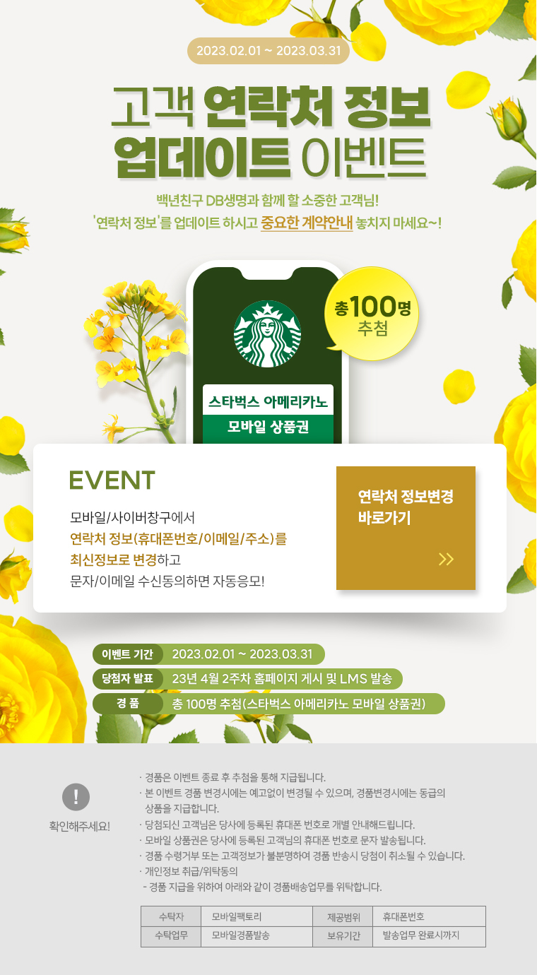 DB생명, 고객 연락처 정보 업데이트 이벤트