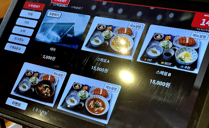 자리마다 미니 키오스크가 있어 빠르게 주문하고 결제할 수 있었습니다. 많이 주문하시는 스페셜 세트(우동/소바 + 돈까스 + 계란밥)는 모두 15,000원으로 구성되어 있었고, 우동/소바 정식 메뉴와 냉/온소바, 김치가츠나베, 가츠돈 등의 단품 메뉴로 메뉴 구성이 다양했어요. 저는 우동 전문점인 만큼 잇쇼우 우동(9,000원), 텐붓가케 우동(12,000원)을 주문했습니다!