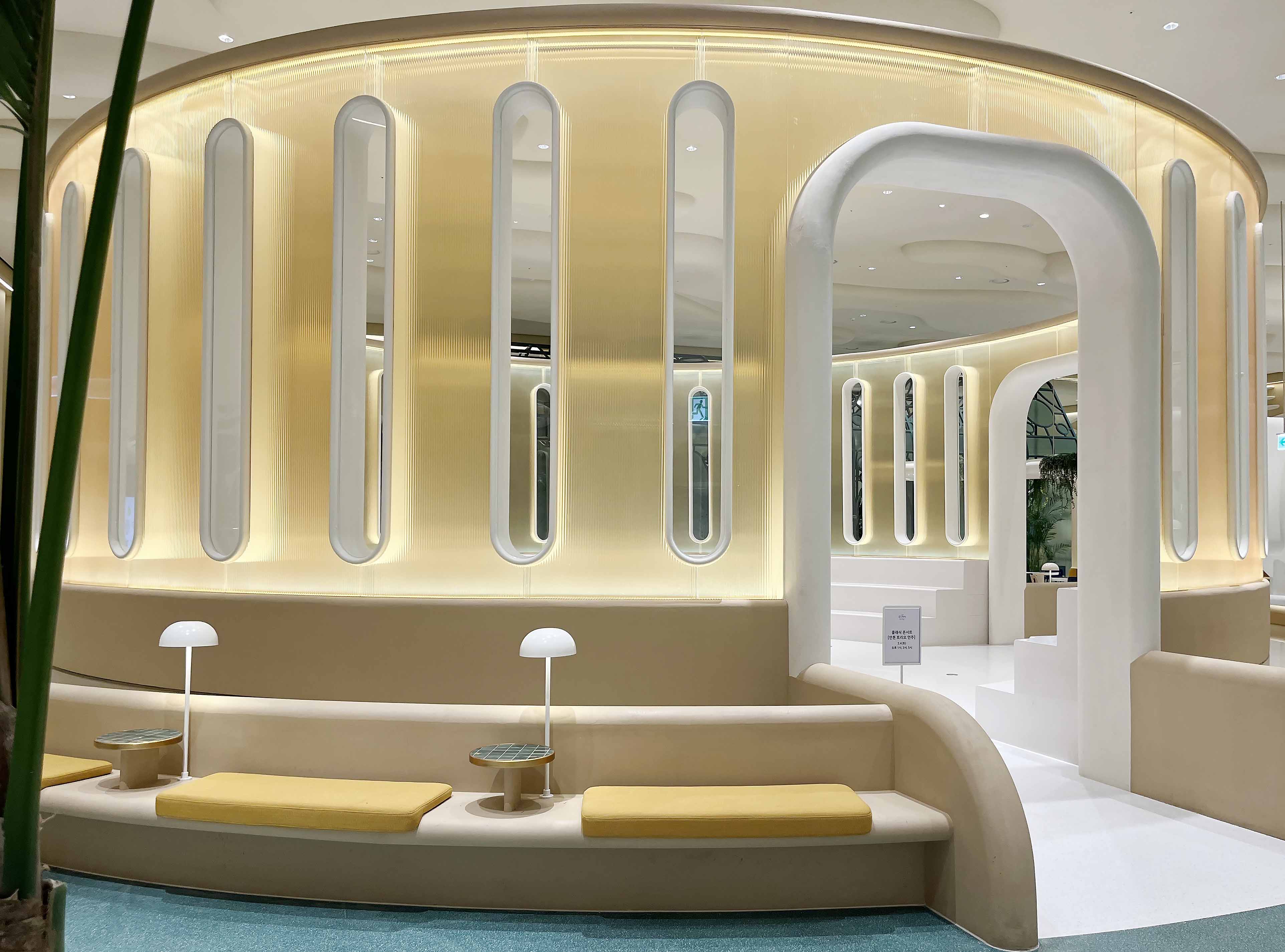 더현대 대구는 업계 최초로 9층 전체를 복합문화예술광장으로 꾸민 것으로도 유명세를 탔는데요. 세계적인 아티스트이자 산업디자이너인 ‘하이메 아욘’이 디자인한 카페 ‘워킹컵’과 실내 광장 ‘콜로세움, 그리고 거대한 조각상들을 설치한 실외 조각 공원 ‘게이츠 가든’등을 만나볼 수 있었습니다.