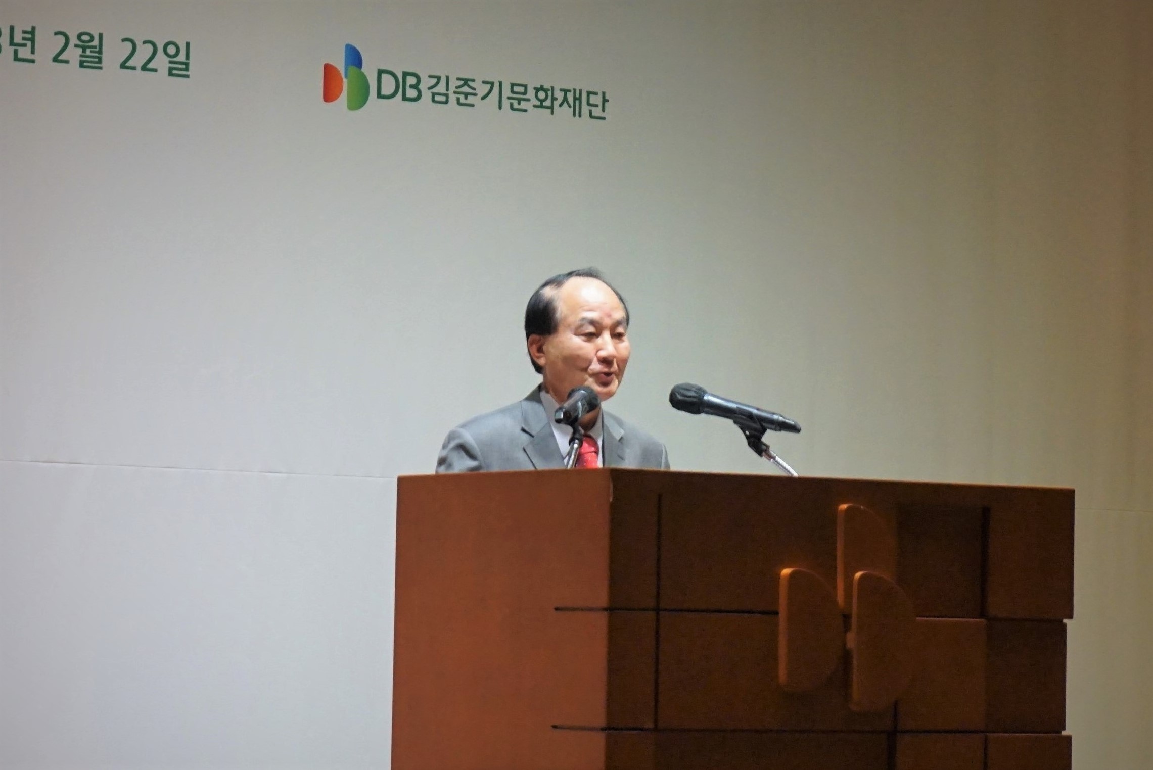 다음으로 인사 말씀과 장학증서 수여가 진행되었습니다. DB우수인재장학생으로 선발된 학생들을 축하하기 위해 참석한 DB김준기문화재단 김동성 사장님께서 앞으로의 성장을 응원하는 격려의 말씀을 전해주셨습니다.