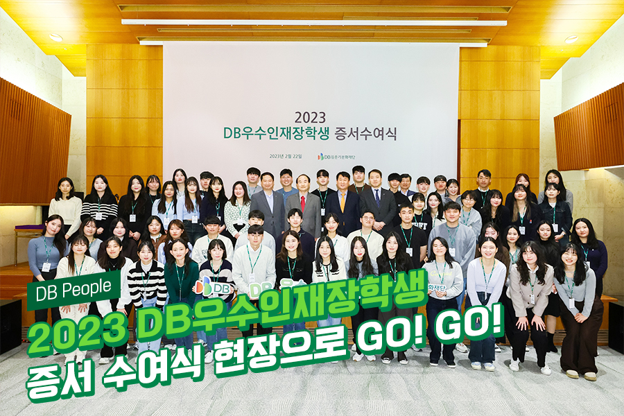 2023년 2월 22일 서울 강남구 대치동에 위치한 DB금융센터에서 “2023 DB우수인재장학생” 증서수여식이 열렸습니다. 이번 DB우수인재장학생으로 선정된 학생들은 장학생 봉사단 ‘동하리 9기’로 1년간 활동하게 되는데요, 설레는 첫 공식행사 현장을 담아보았습니다!