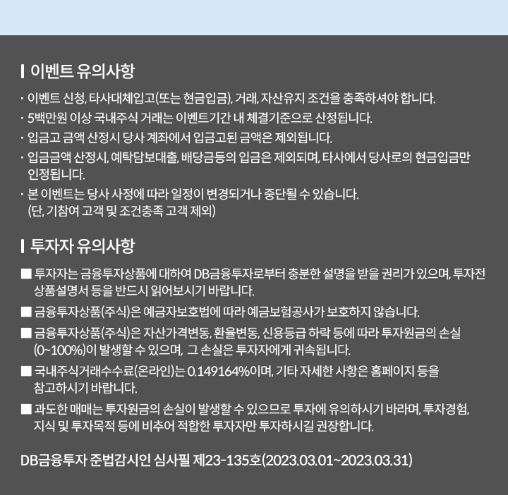 | DB금융투자, 해외주식 소수점매매 신청 이벤트 (0) | 2023.03.03 |