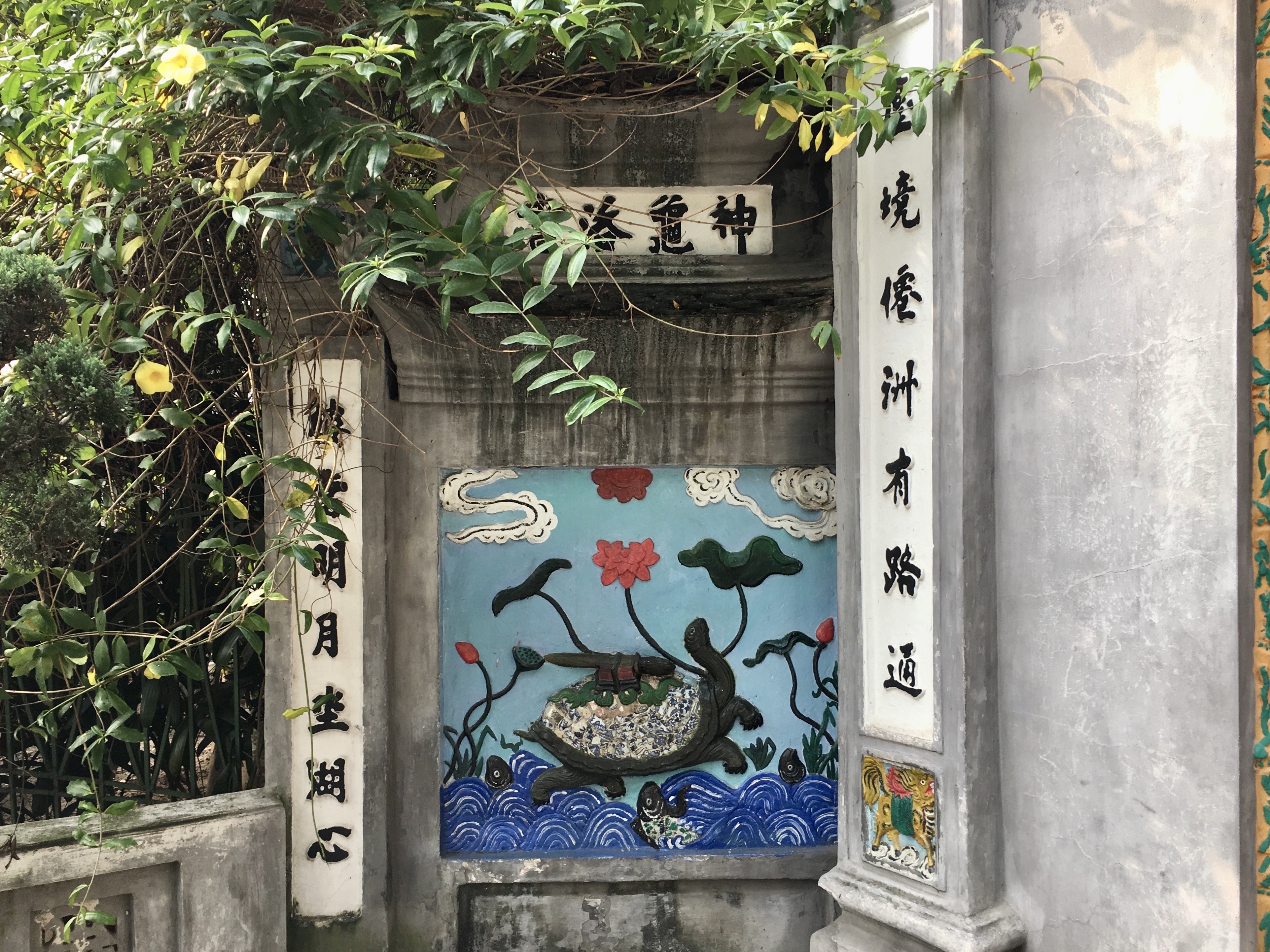 사당 안에는 1968년에 잡힌 2미터 크기의 거대한 거북도 박제돼 있는데, 유독 거북이 많이 서식하는 호안끼엠에는 대대로 거북과 관련된 전설이 내려온답니다.