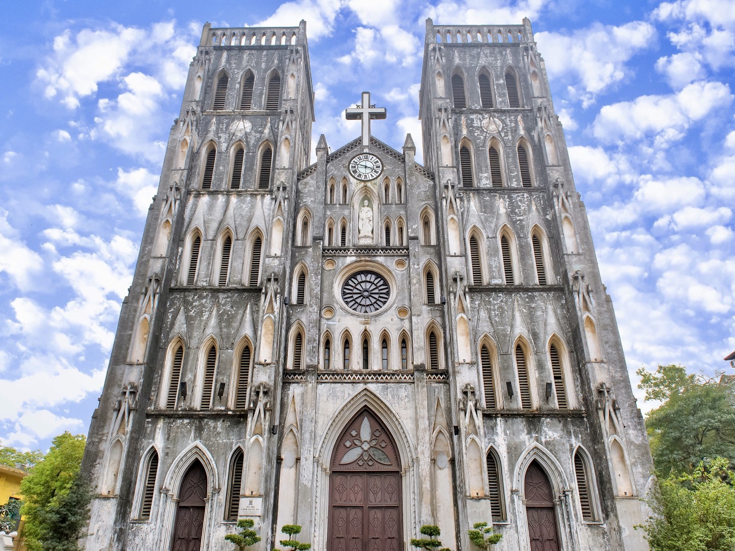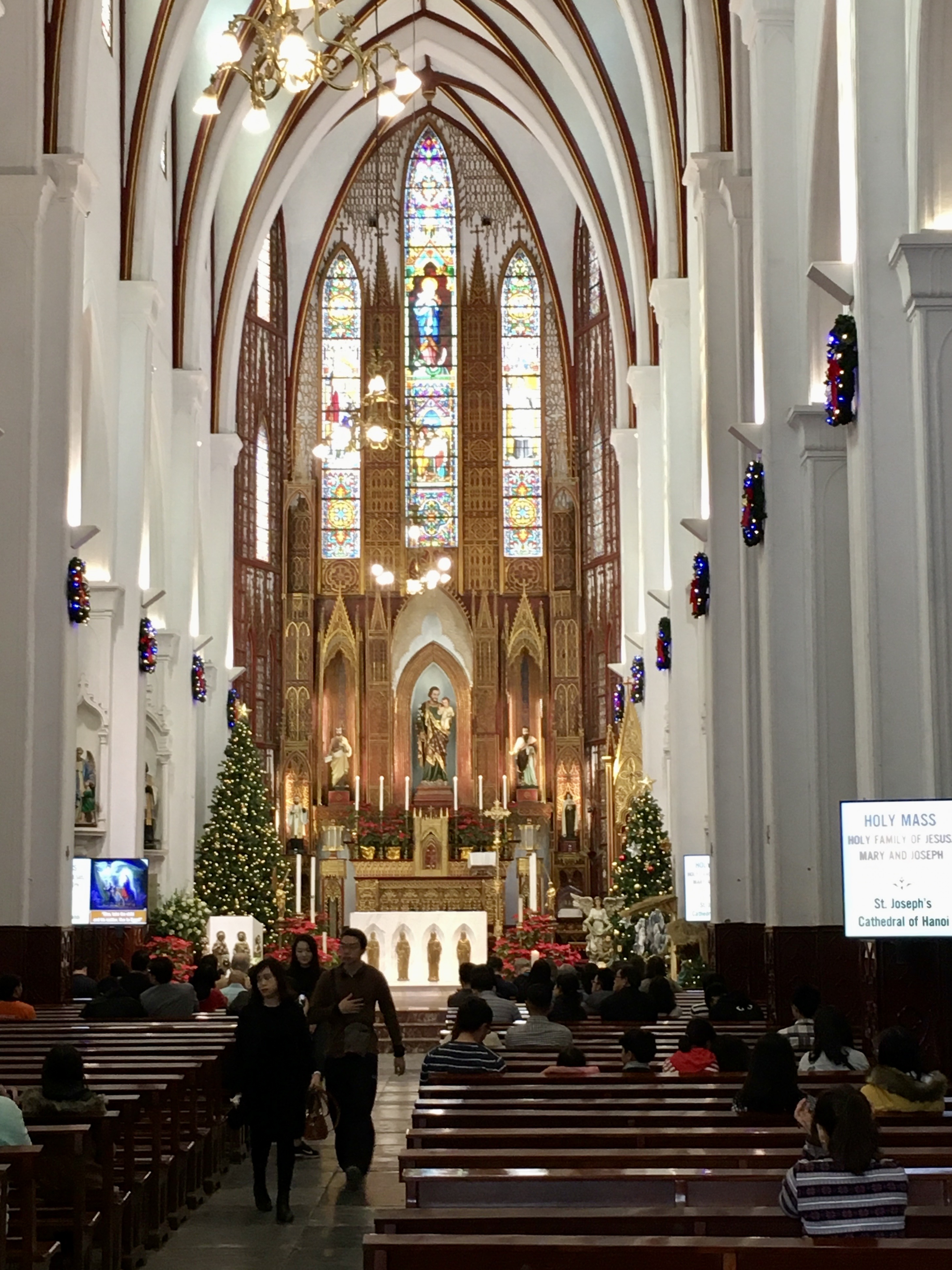 호안끼엠 호수 변을 돌아 호수 서쪽으로 가면 노트르담 드 파리를 모방해 고딕 복고 양식을 채택한 호안끼엠 지구의 냐쭝 거리가 나옵니다. 그 가운데 성 요셉 대성당이 웅장한 모습을 드러내죠.