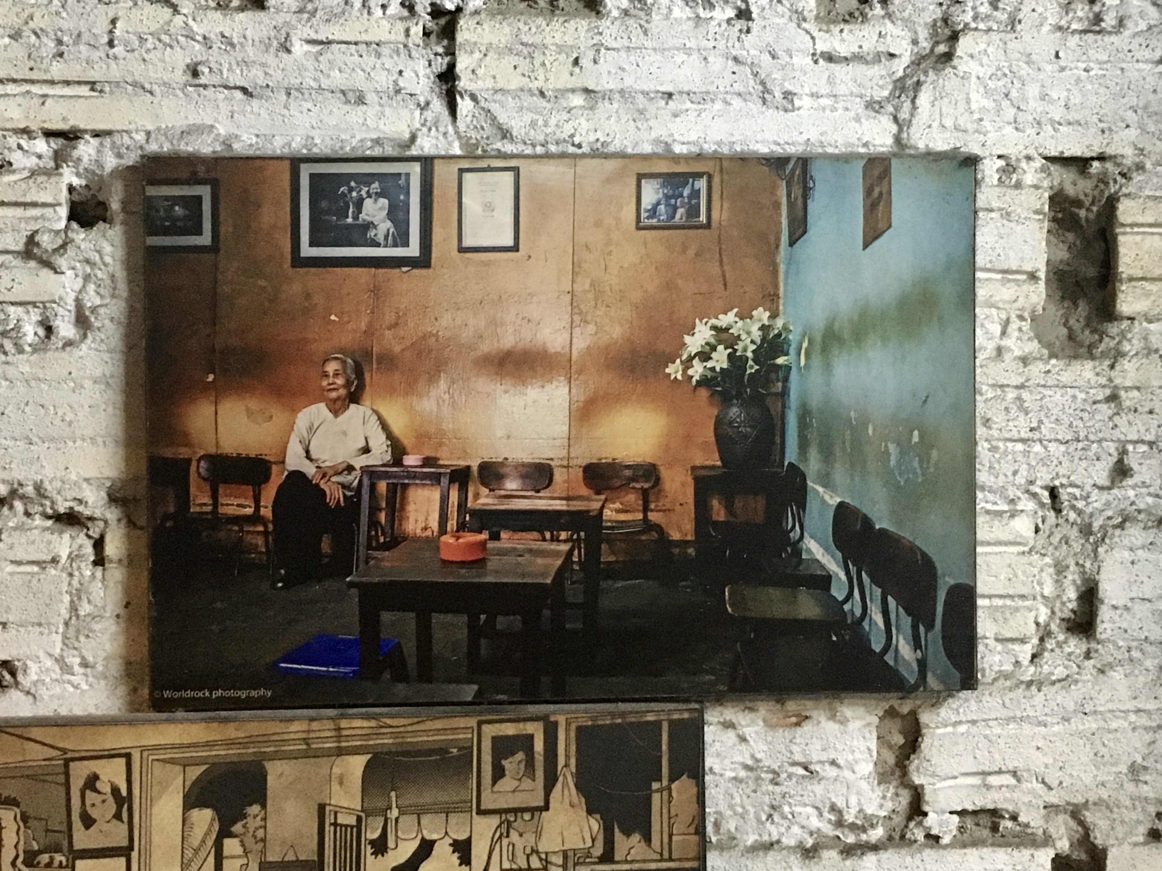 흡족해하는 저의 얼굴을 보고 탐은 흐뭇해하며 '카페 딩(Cafe Đinh)'은 1946년에 처음 문을 열었다고 알려주었어요. 그가 가리키는 벽을 둘러보니 카페를 연 할머니의 옛 사진이 걸려 있고, 그 사진 속에는 다시 할머니의 젊은 날 모습을 담은 사진이 담겨 있었어요.