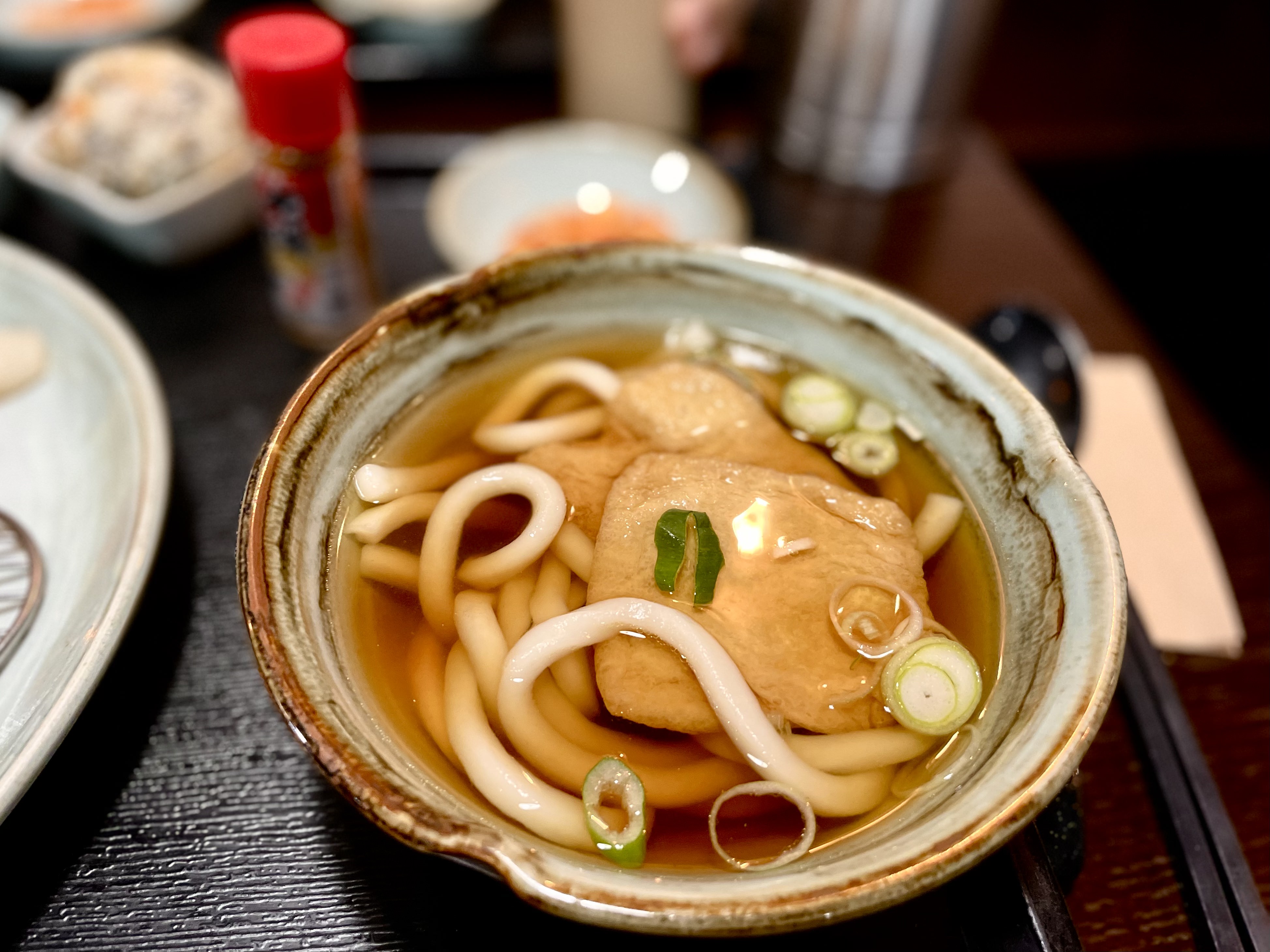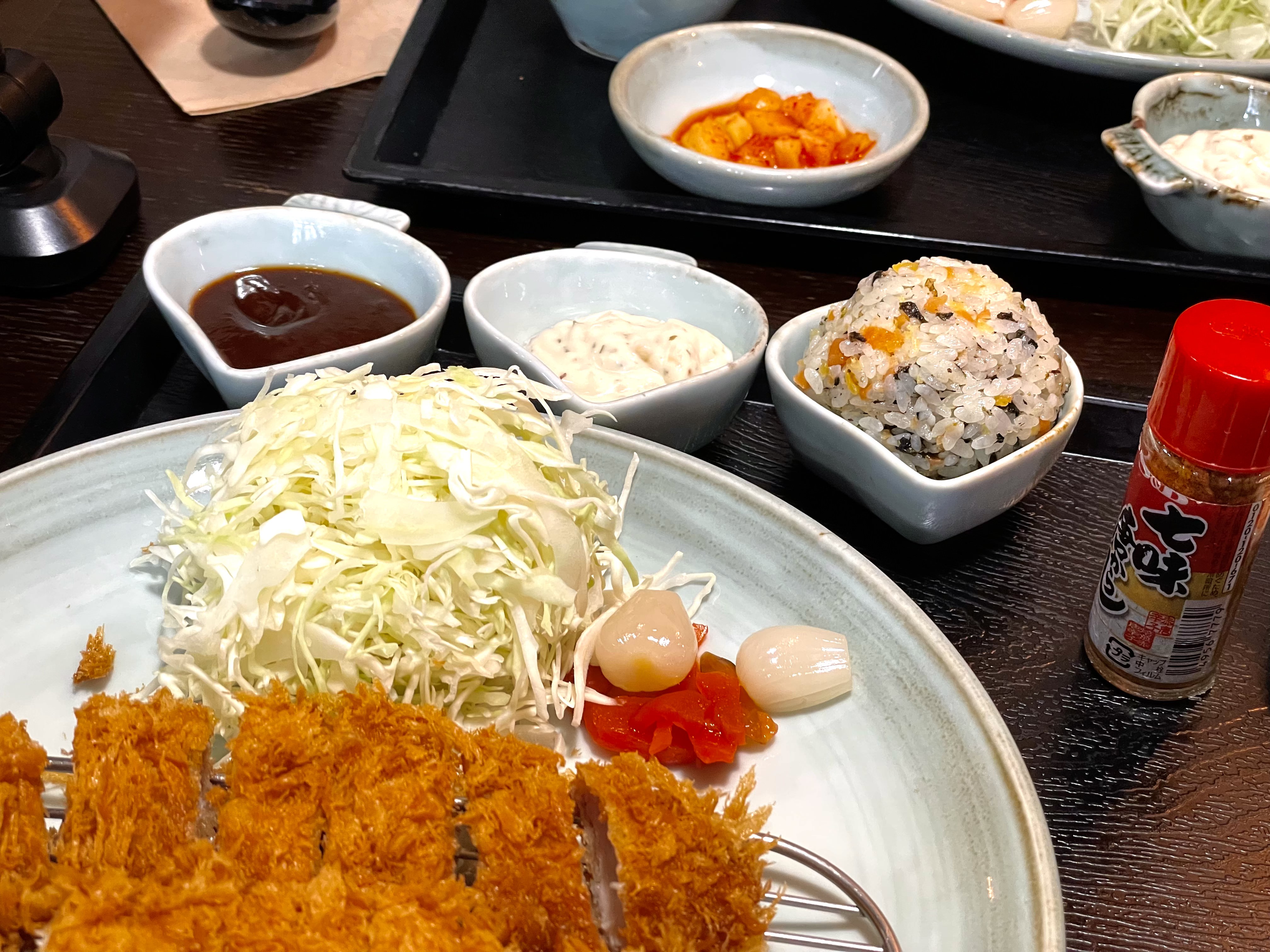 함께 나오는 기쯔네 우동(유부 우동)은 호불호 없이 맛있는 쫄깃한 우동이었습니다. 시치미를 뿌려서 얼큰함을 추가할 수도 있었어요. 우동 국물을 품은 따뜻한 유부와 바삭한 돈까스의 조화가 아주 좋았답니다. 댓짱정식은 돈까스, 생선까스, 우동에 주먹밥과 샐러드까지 포함되어 있는 알찬 구성이어서 댓짱돈까스의 여러 가지 메뉴를 배불리 먹을 수 있습니다. 메뉴 선택이 고민되신다면 고민하지 마시고 댓짱 정식을 선택하셔도 좋을 것 같습니다!