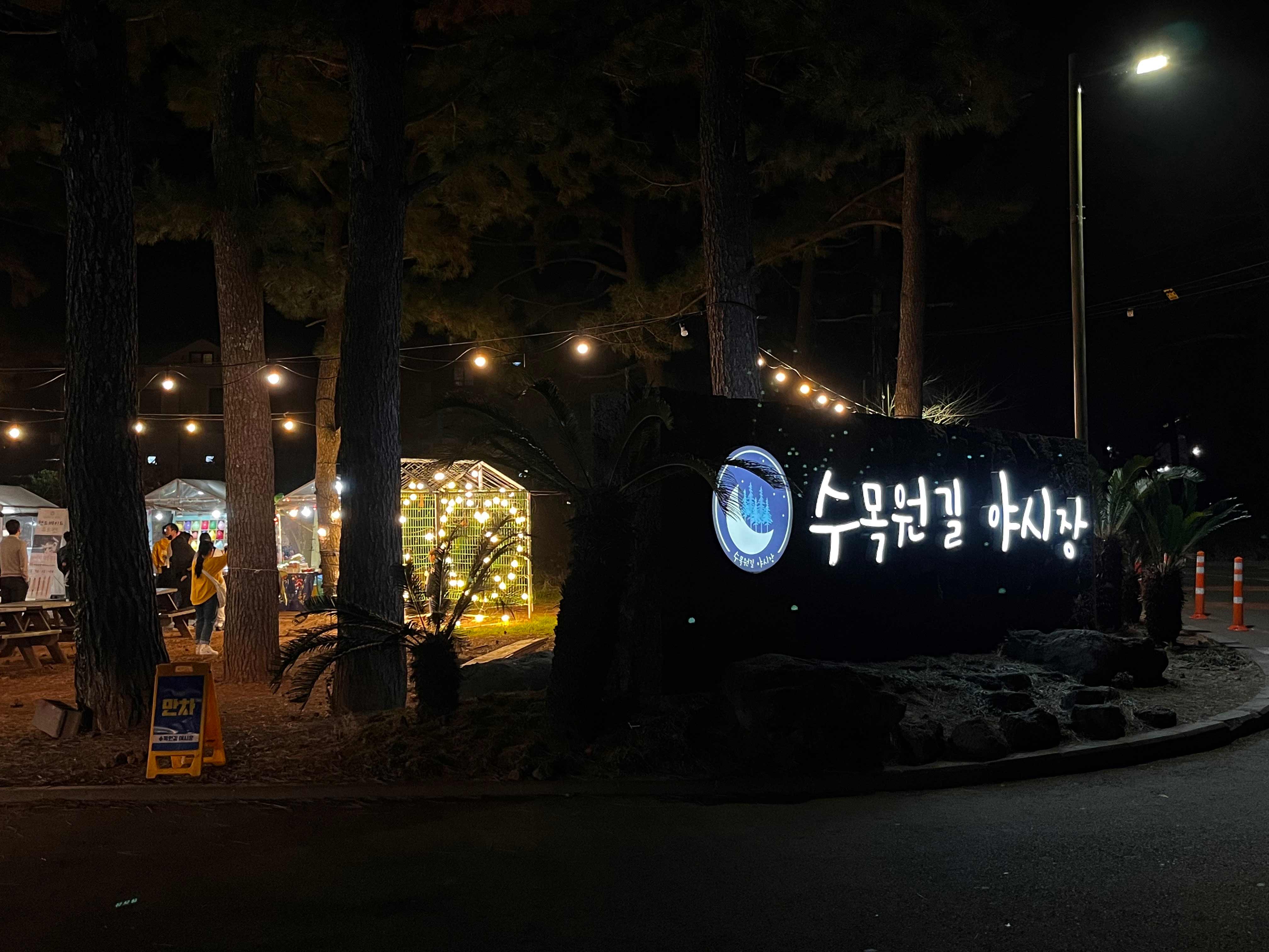 앞서 제주의 꽃 구경과 볼거리를 소개해 드렸는데요. 사실 제주에 와서 먹거리를 빼놓을 수는 없겠죠? 제주도에 방문하셨다면 저녁에 야시장 하나쯤 꼭 들르고 싶은 건 모두 비슷할 것 같습니다. 원래 올레시장이나 제주 동쪽의 야시장을 주로 찾았는데, 이번에는 새롭게 발견한 수목원길 야시장을 소개해 드리려고 해요. 새우튀김, 덮밥, 스테이크 등 다양한 푸드트럭 먹거리가 가득했고, 비비탄 사격과 같은 게임 존 그리고 제주의 다양한 기념품들을 판매하고 있었습니다.