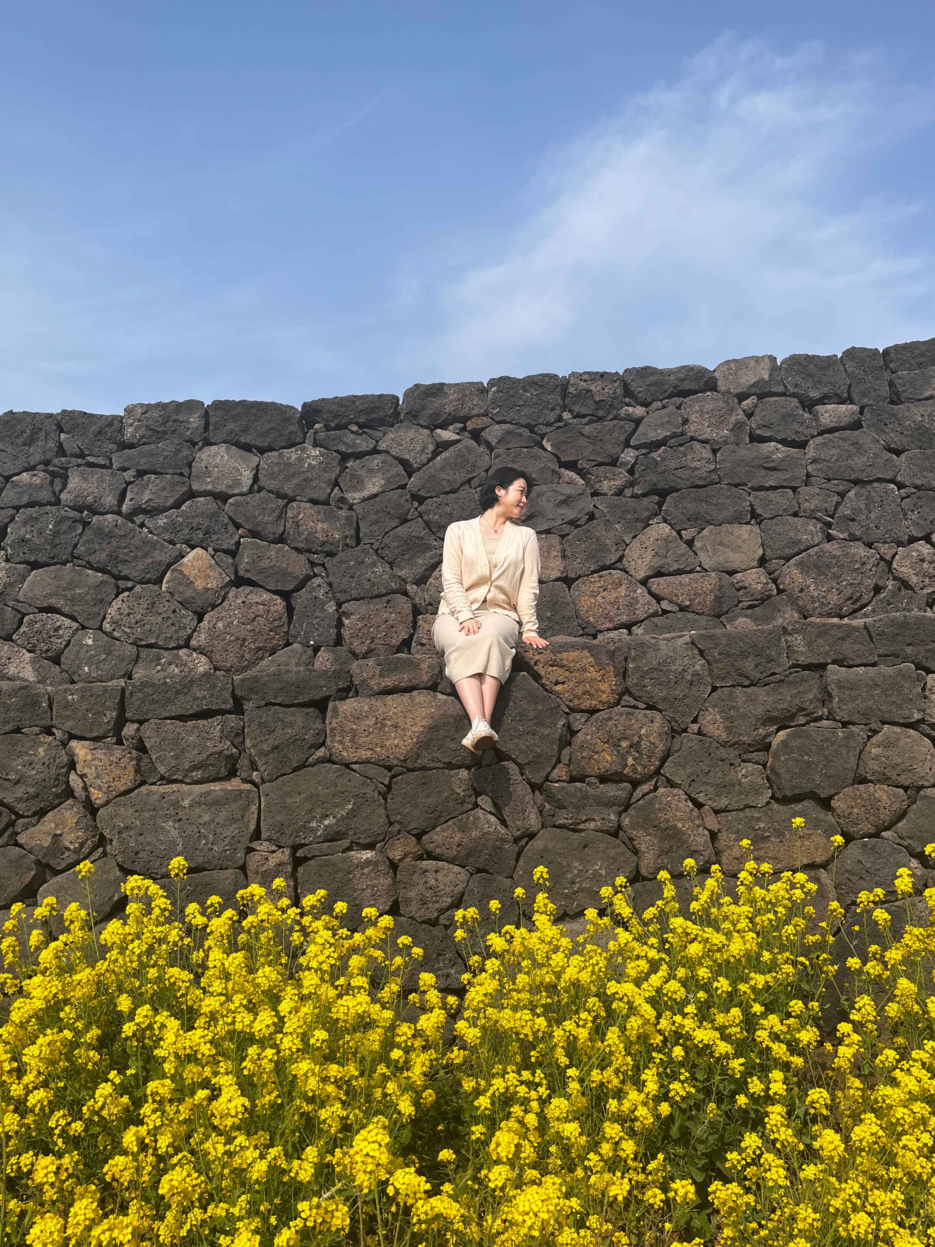 별방진은 제주도 내 9개 진성 중 하나로, 우도 부근에 빈번히 출몰하는 왜구의 침입을 막기 위해 설치된 진성입니다. 현재, 약 65%의 별방진 둘레를 복원해 두었다고 해요. 성곽의 안쪽으로 가득 피어 있는 유채꽃 덕분에 뒤로는 성벽을, 앞으로는 유채꽃이 가득한 곳에서 사진을 남길 수 있습니다. 제주도에는 이맘때면 유채꽃이 만발하기 때문에 길가를 지나다 보면 흔히 유채꽃을 볼 수 있어요. 유채꽃 사이에서 찍는 것도 좋지만 이왕이면 성벽 위를 거닐거나, 앉아서 유채꽃과 함께 사진을 남긴다면 조금 더 특별한 사진이 될 것 같습니다.
