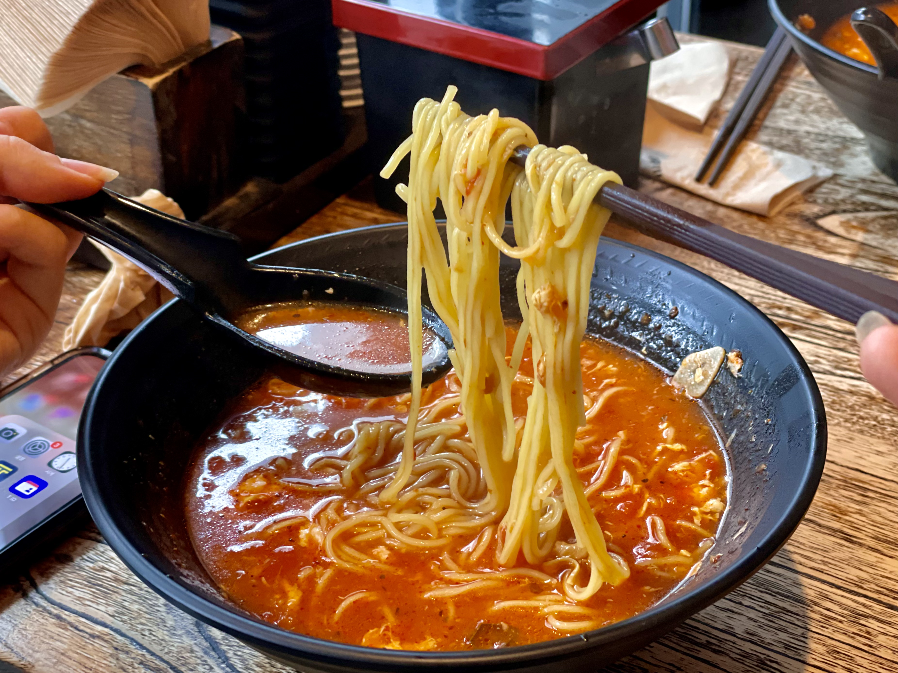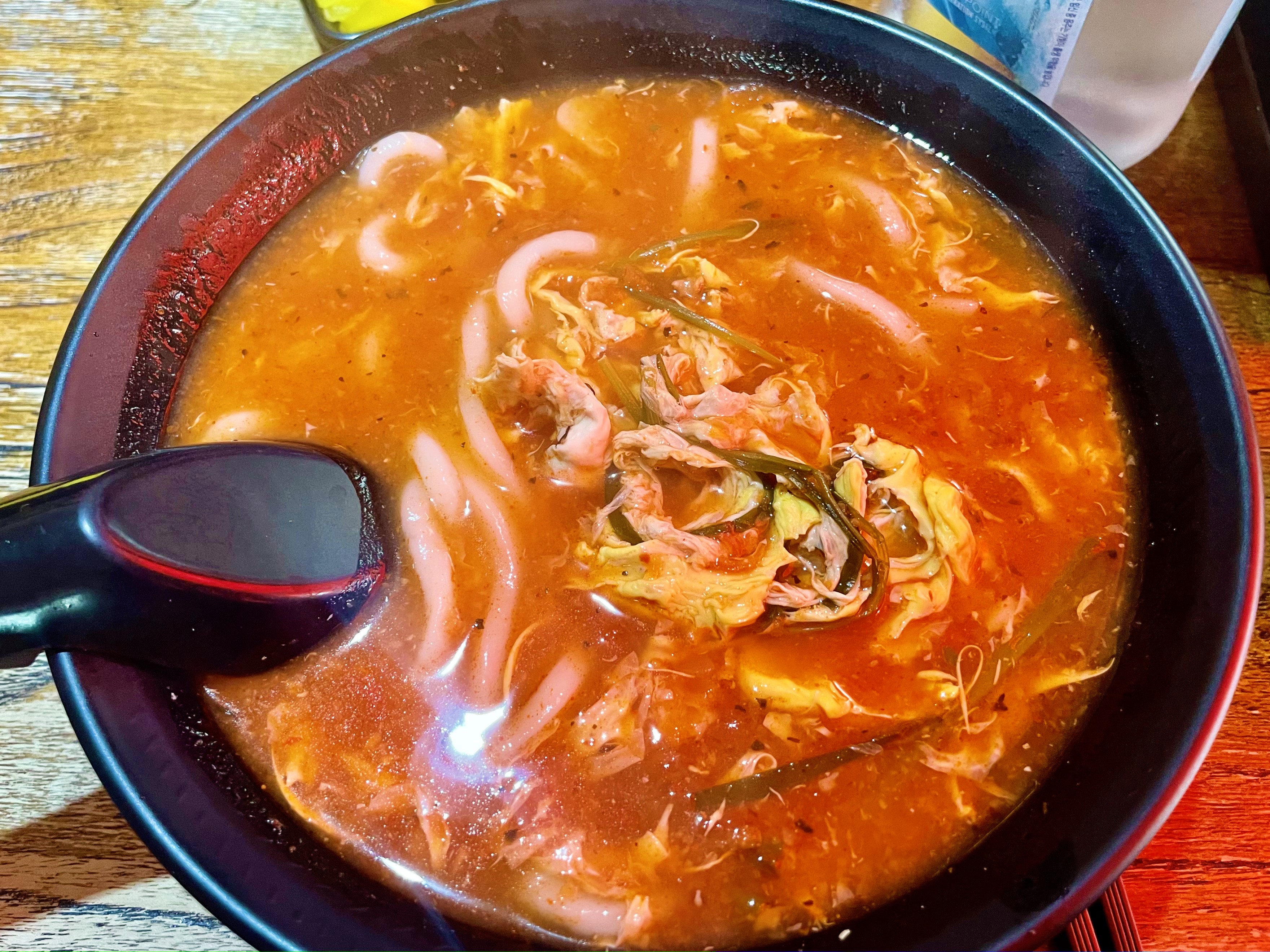 우동면을 선택해 주문한 토마토라면은 면이 훨씬 두껍고 쫄깃해 식감이 좋다는 특징이 있었습니다. 생면보다는 국물이 면에 덜 배어 있어서 매콤새콤한 토마토라면을 덜 자극적이게 즐기고 싶으신 분들께 추천 드립니다. 단일 메뉴이지만 각자의 취향대로 다른 매력의 토마토라면을 즐길 수 있어 더 맛있게 느껴졌답니다.