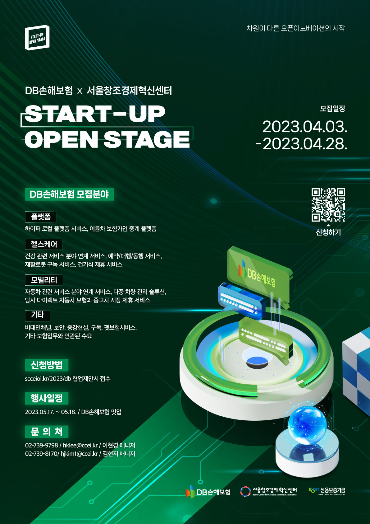 DB손해보험, 서울창조경제혁신센터 '2023, DB손해보험x서울창조경제혁신센터 오픈 스테이지' 참여 스타트업 모집