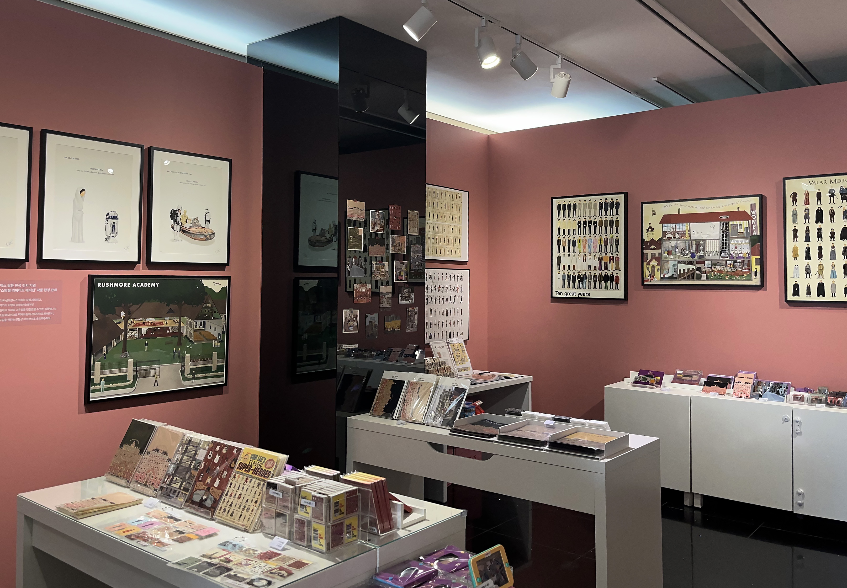 전시에서는 웨스 앤더슨 감독의 영화이자 맥스 달튼을 유명하게 만든 작품인 <그랜드 부다페스트 호텔>과 최신작 <웨스 앤더슨 컬렉션 북 : 프렌치 디스패치>. 그리고 70-90년대를 풍미했던 <스타워즈>, <쥬라기공원> 과 한국 팬들을 위한 봉준호 감독의 <괴물>, <옥자>, <기생충> 등이 준비되어 있습니다.