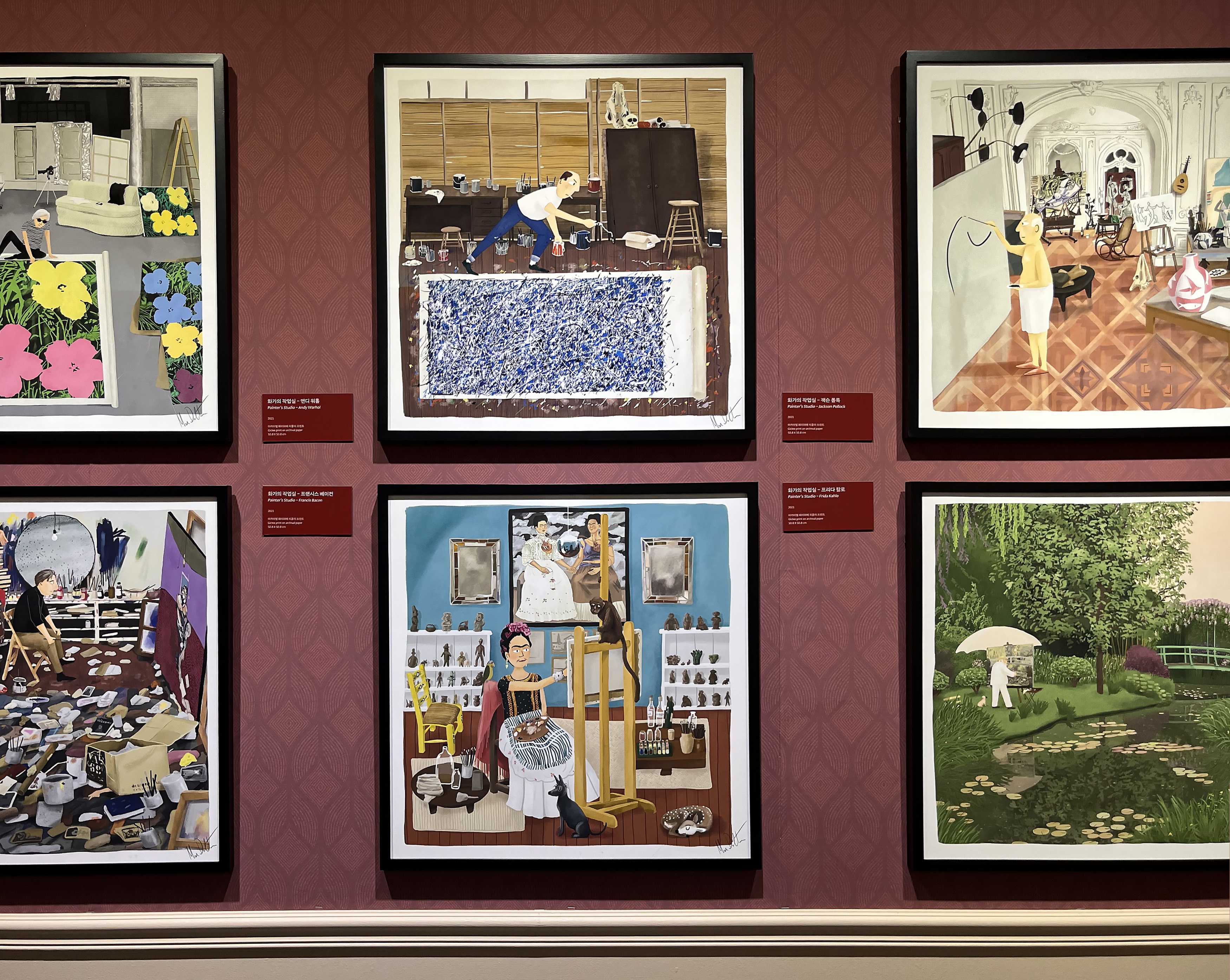 특히 <화가의 작업실> 시리즈에서는 미술 사의 유명한 거장. 피카소, 모네, 프리다칼로 등의 작업실을 상상해 그려내어 예술 세계에 대한 그의 존경과 사랑을 느낄 수 있습니다. 오래된 레코드 가게 안에 들어온 것 같기도 하고, 화가의 서재나 작업실을 탐방하는 것 같기도 한 특별한 체험을 하며 맥스 달튼이 사랑하고, 수집하며 탄생시킨 순간들을 만나보세요.