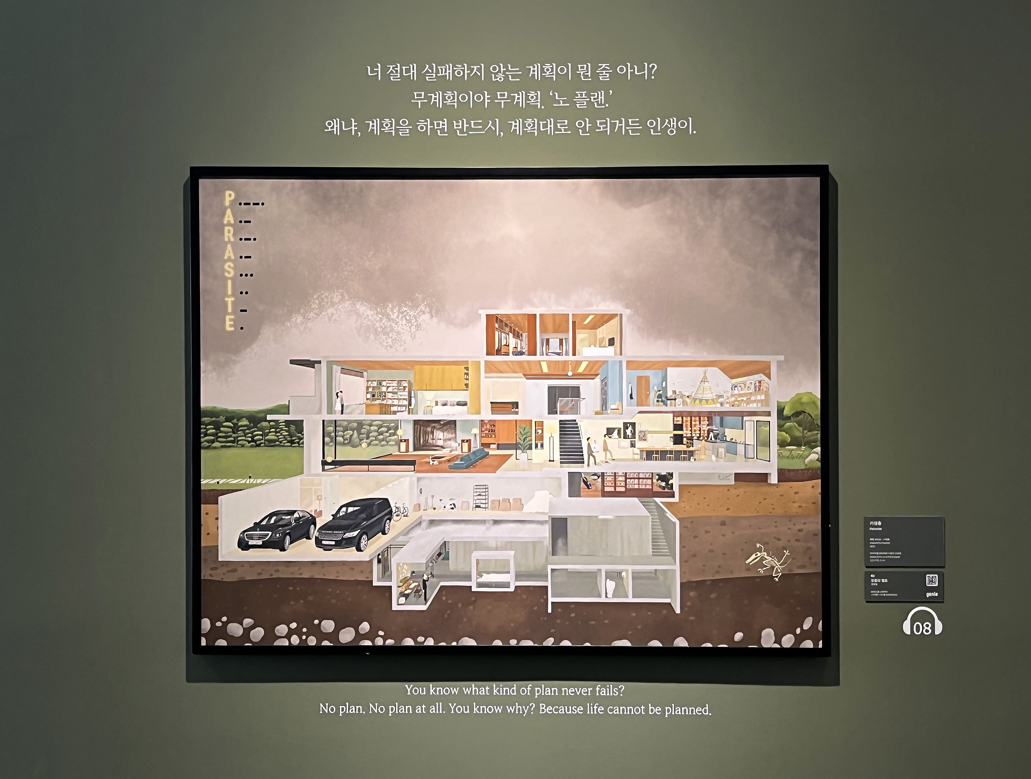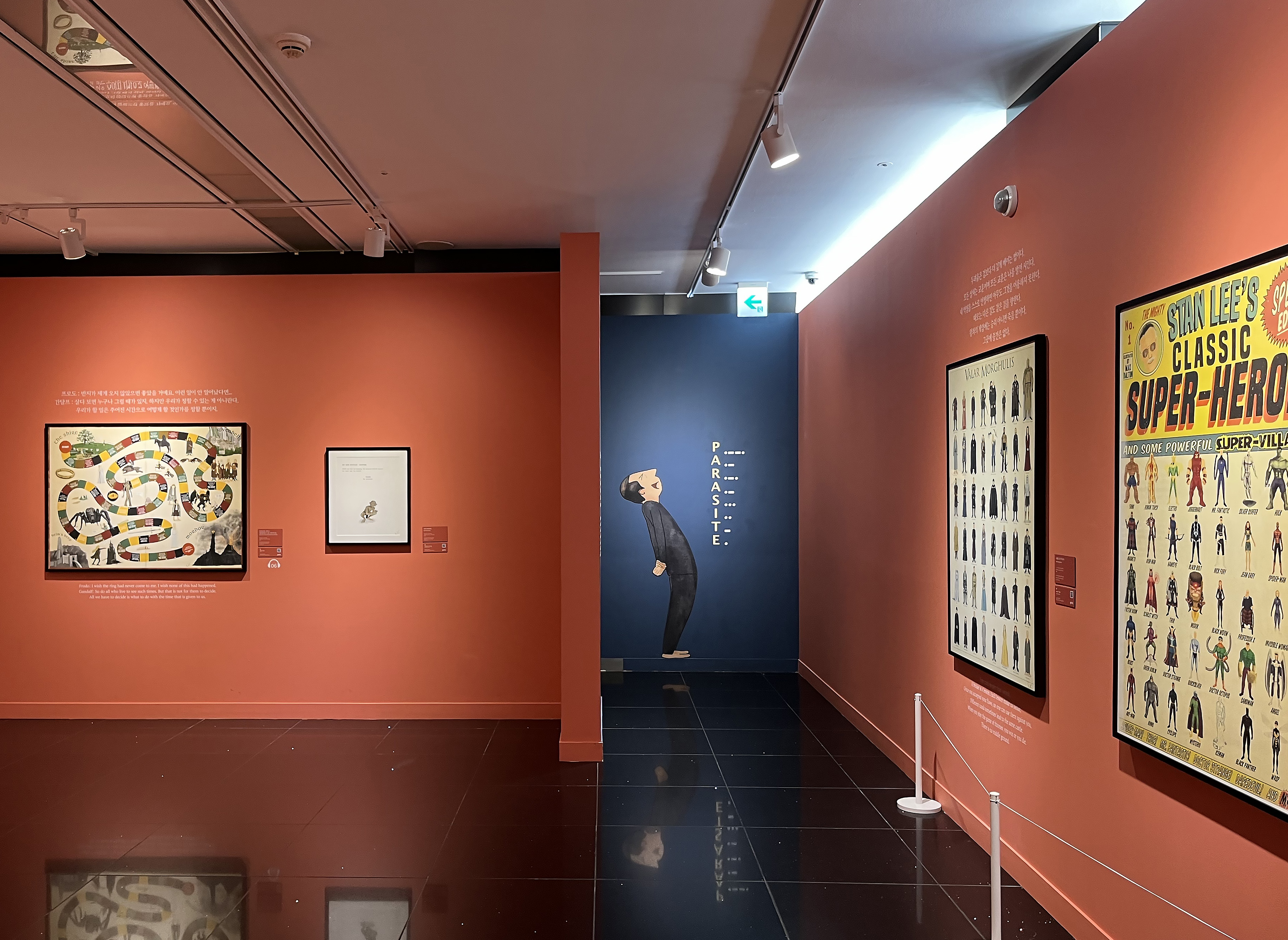 봉준호 감독 영화를 모티브로 한 작품들이 전시된 공간도 다채로웠습니다. <기생충>, <살인의 추억>, <마더>, <옥자>, <괴물> 등 이 영화를 유추할 수 있는 장면들이 오마주 된 작품들을 보며 영화 속 요소를 찾는 것도 소소한 재미였어요.