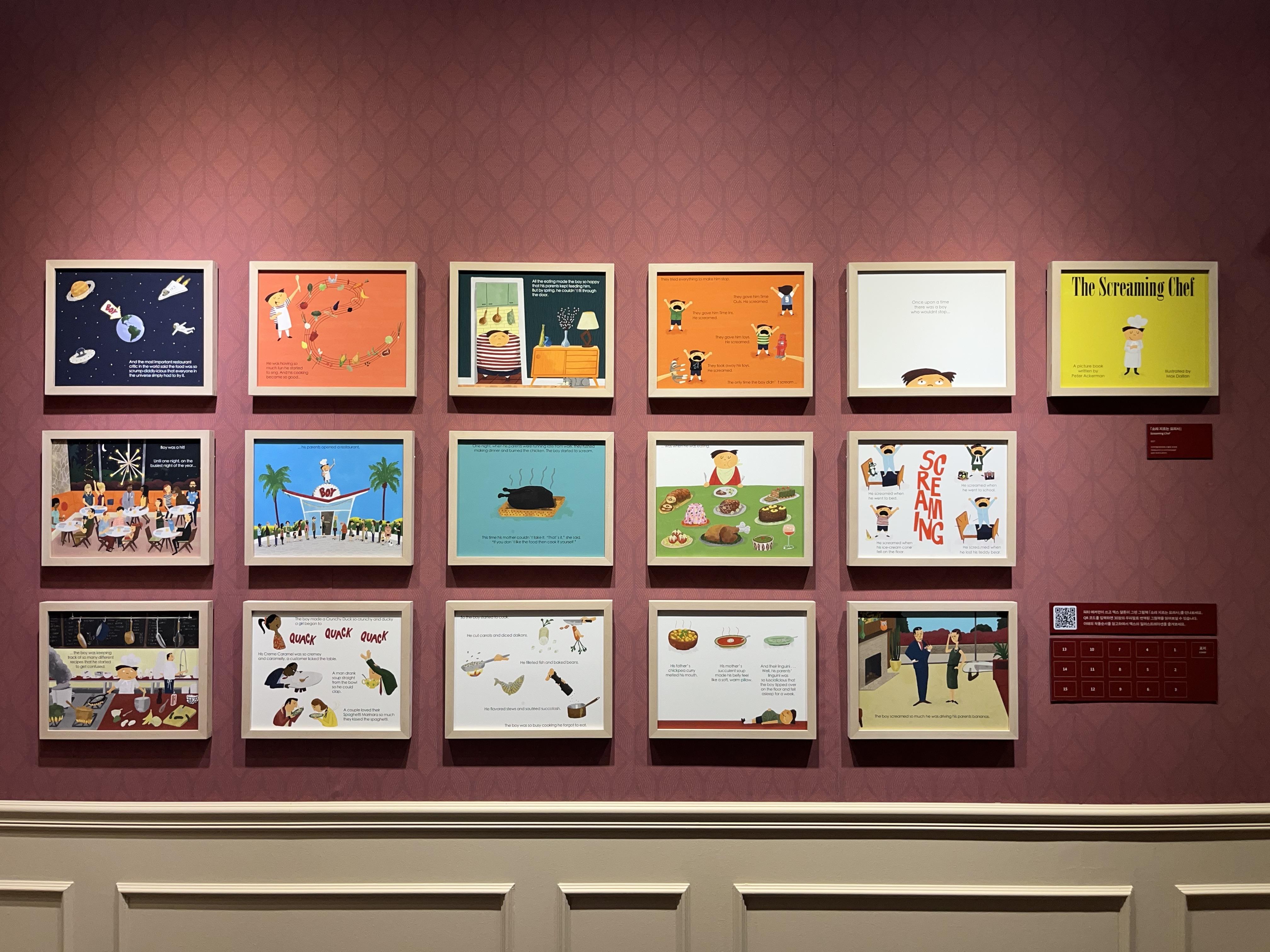 사실 개인적으로 가장 마음에 들었던 섹션은 제3막, ‘맥스의 순간들’이었는데요. 제 3막에서는 작품 세계를 형성하게 한 그의 오랜 취미와 영감이 반영된 [LP앨범 커버]와 [화가의 작업실], [그림책] 시리즈로 구성되어 있습니다. 명작을 오마주한 작품들도 매력적이지만 맥스가 사랑하고 수집하며 탄생시킨 순간들이 담겨 있는 맥스 달튼만의 이야기가 더욱 매력적으로 느껴졌어요.