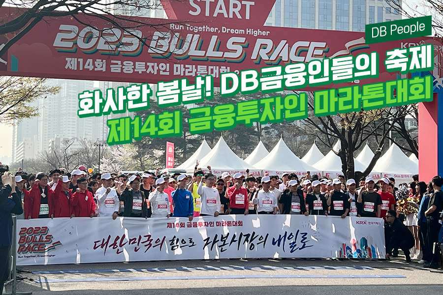 벚꽃이 활짝 핀 화사한 봄날! 대한민국 증시개장 67주년을 기념해 제14회 금융투자인 마라톤 대회가 열렸다. 증시활황을 기원하고 금융투자인이 모여 소통과 화합을 이룬 ‘2023 Bulls Race’에서 대회에 참가한 DB금융투자 임직원가족들을 만났다.