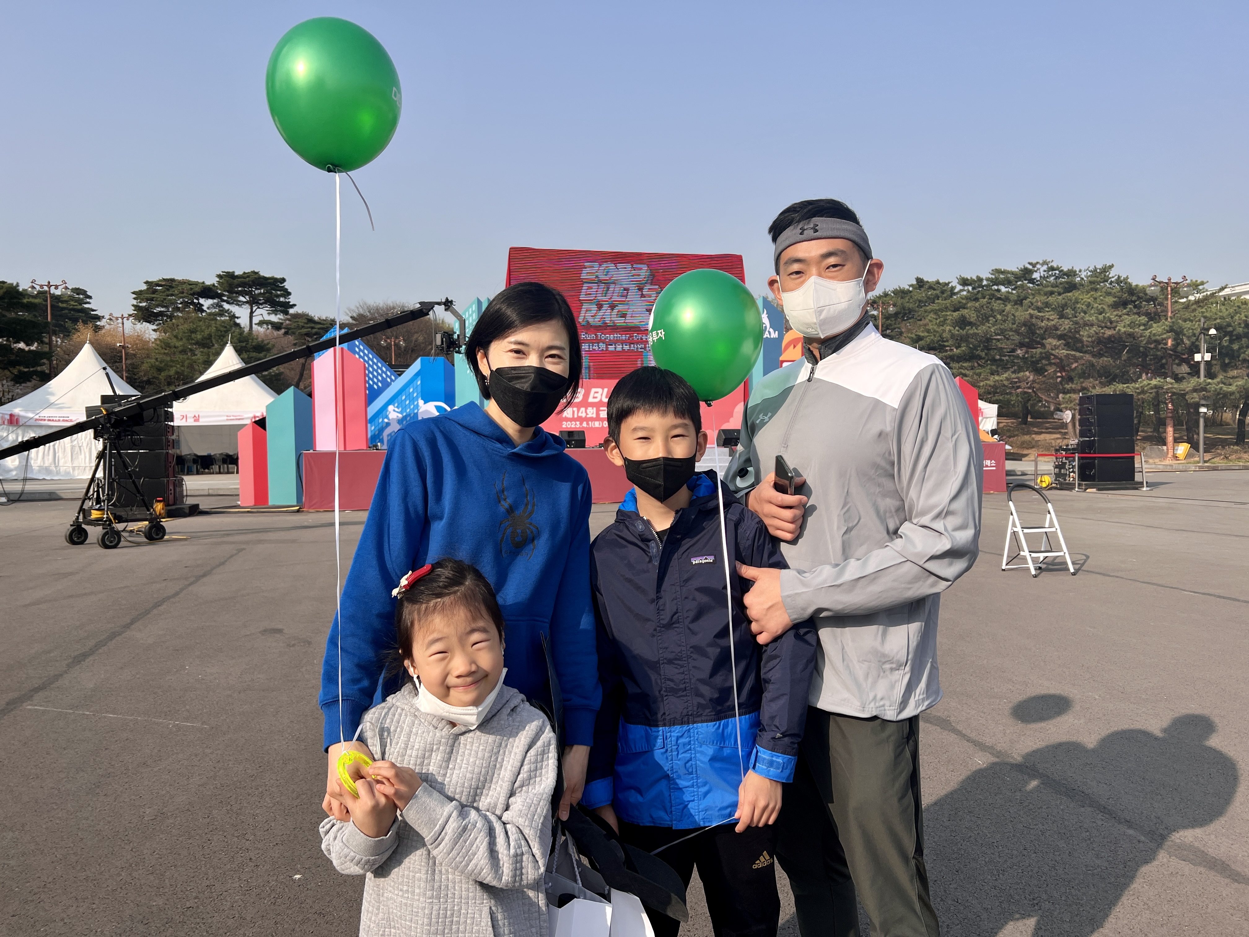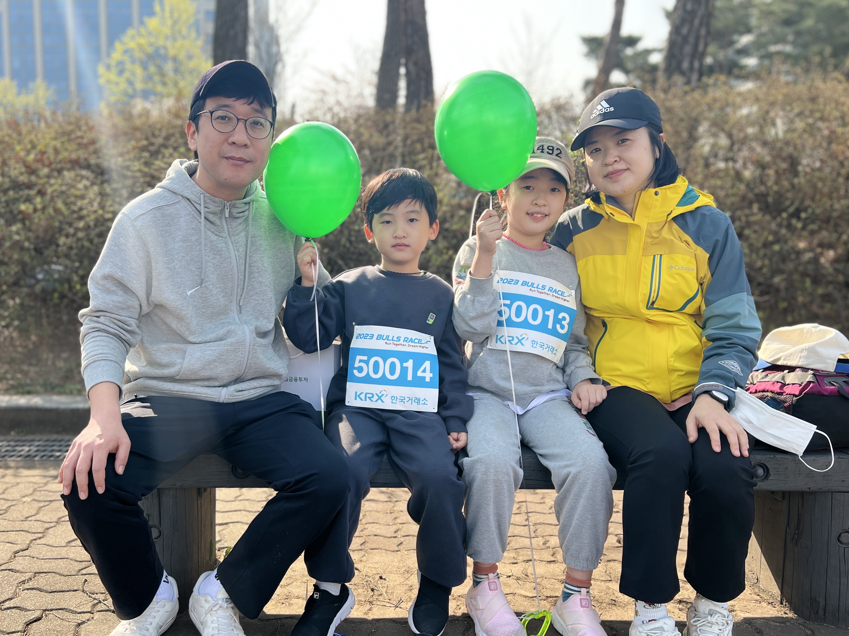 목동금융센터 신혜정 센터장 부부는 두 자녀와 함께 5km 코스에 참가했다. 오빠 4학년 조이현 학생은 “엄청 재미있을 것 같아요. 엄마 아빠랑 다같이 나와서 기뻐요. 동생도 같이 뛰는데, 꼭 완주 하겠습니다.”라고 각오를 다졌다.