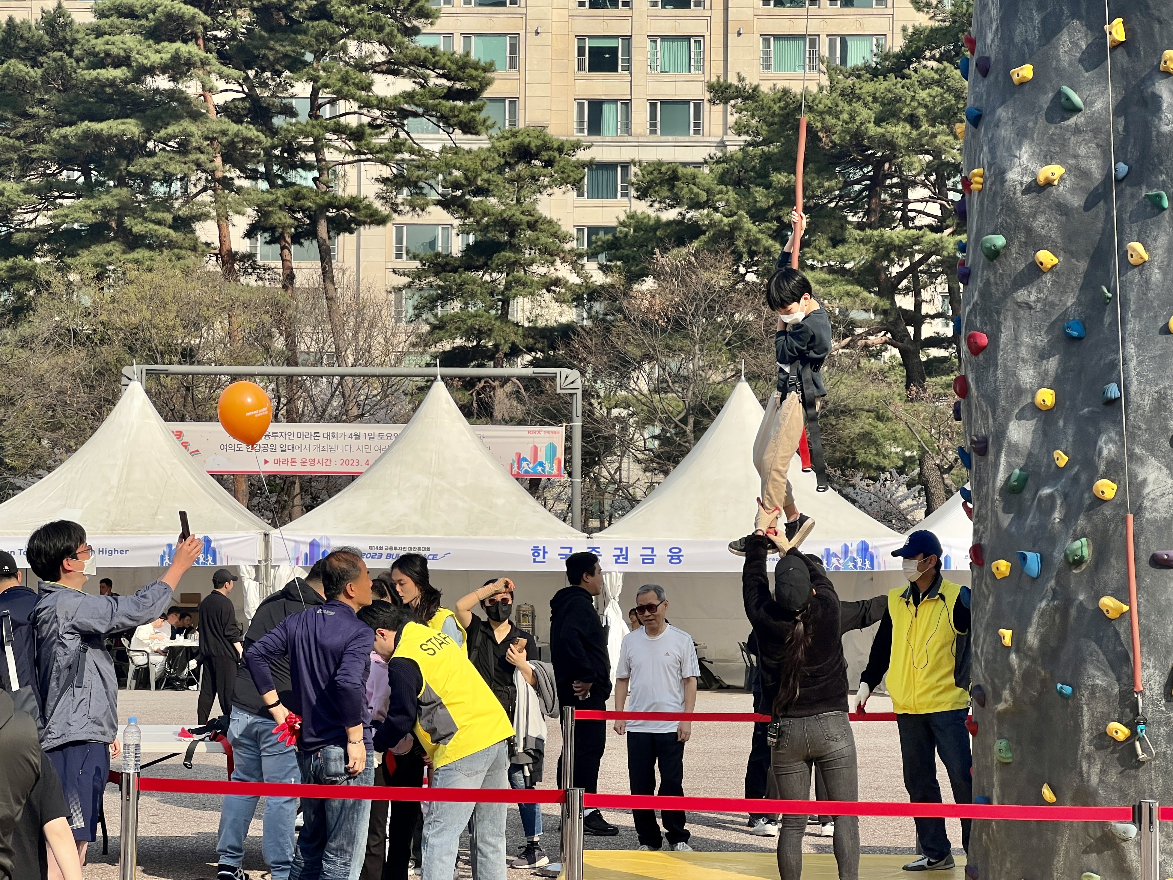 행사장을 둘러보고 있던 기업금융1팀 이정열 이사는 대회에서 10km 코스를 달리고 아내와 3학년 자녀는 5km에 도전한다. 그는 “1분기 시장이 힘들었지만 2분기와 남은 한 해에는 좋은 수익을 달성하길 바랍니다.”라며 동료와 금융투자인들을 응원했다.
