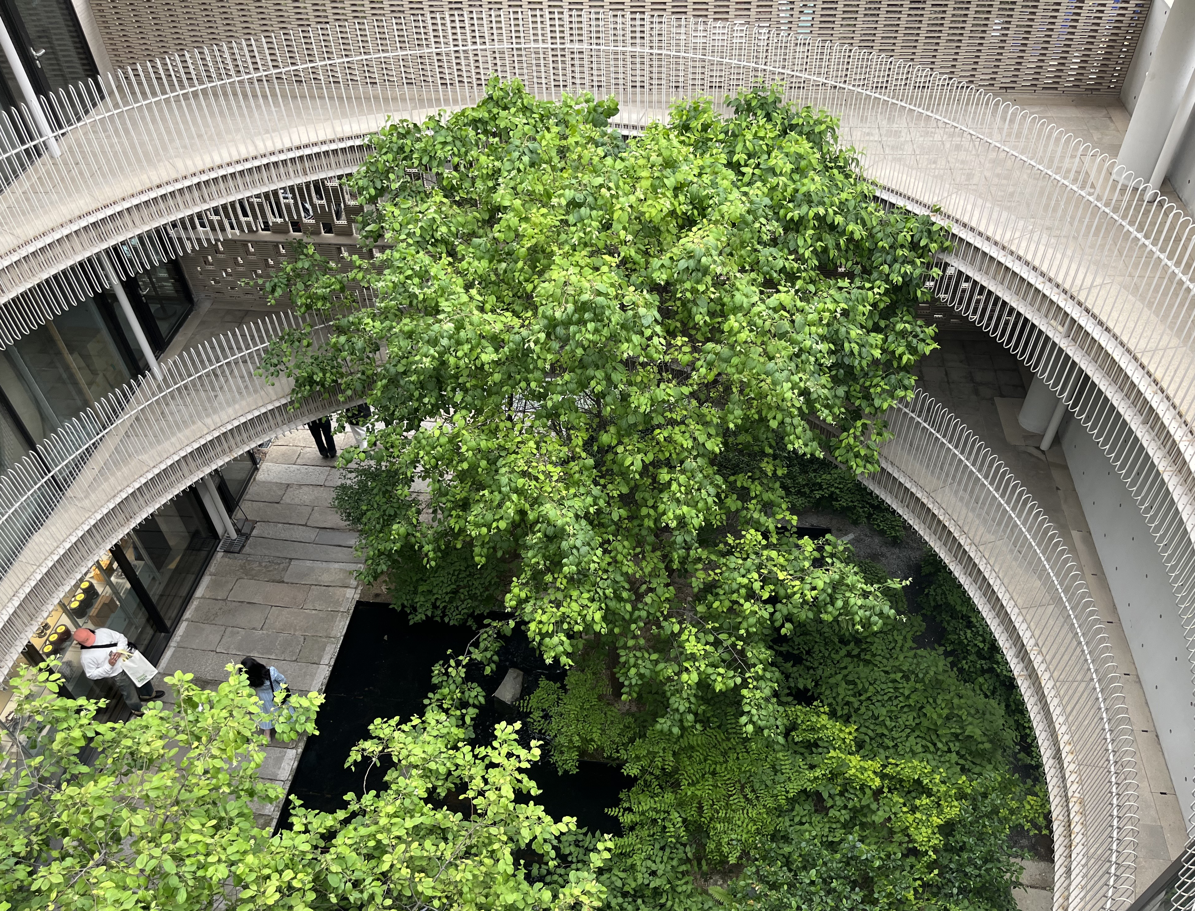 중정은 1층에서 보았을 때도 아름답지만 계단을 따라 올라가면서 건물 속에서 내다보는 것 역시 푸르름이 아름다웠고, 루프탑에서 내려다보는 중정은 도심을 벗어난 기분을 느끼게 합니다.